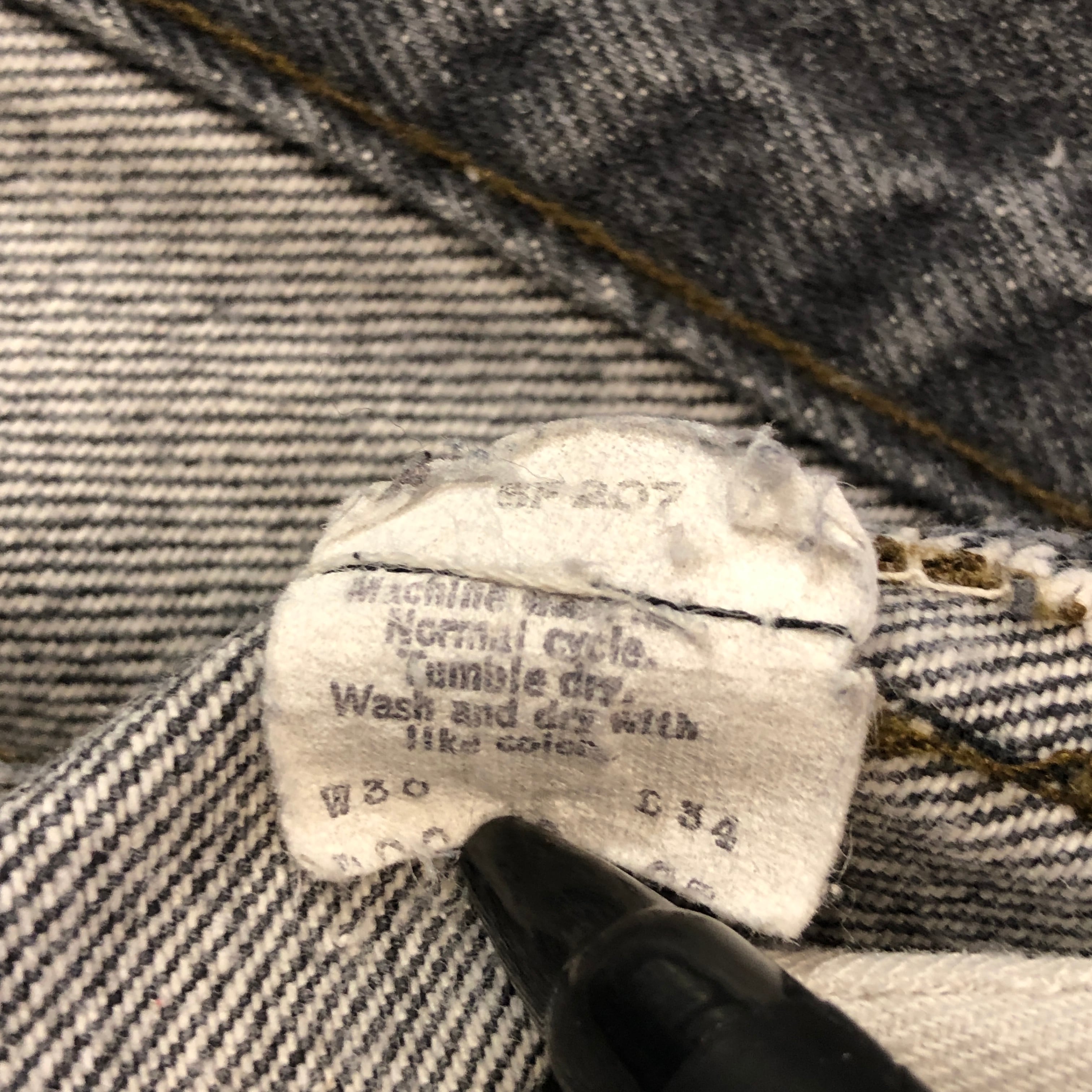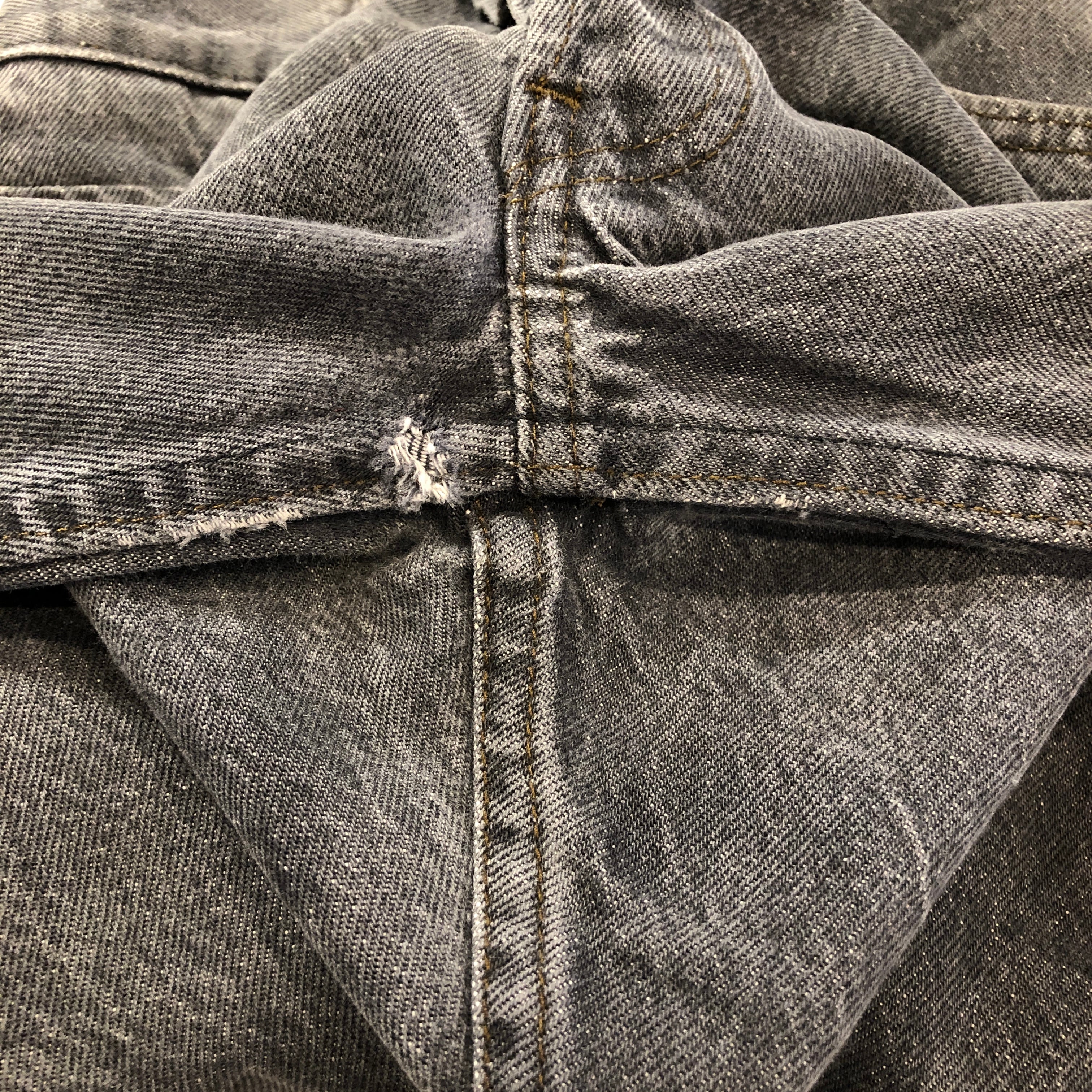 全体的な色落ちや、ダメージ、スレ、汚れ等の着用感がございますが、古着慣れされた方でしたら問題無く着用可能です。