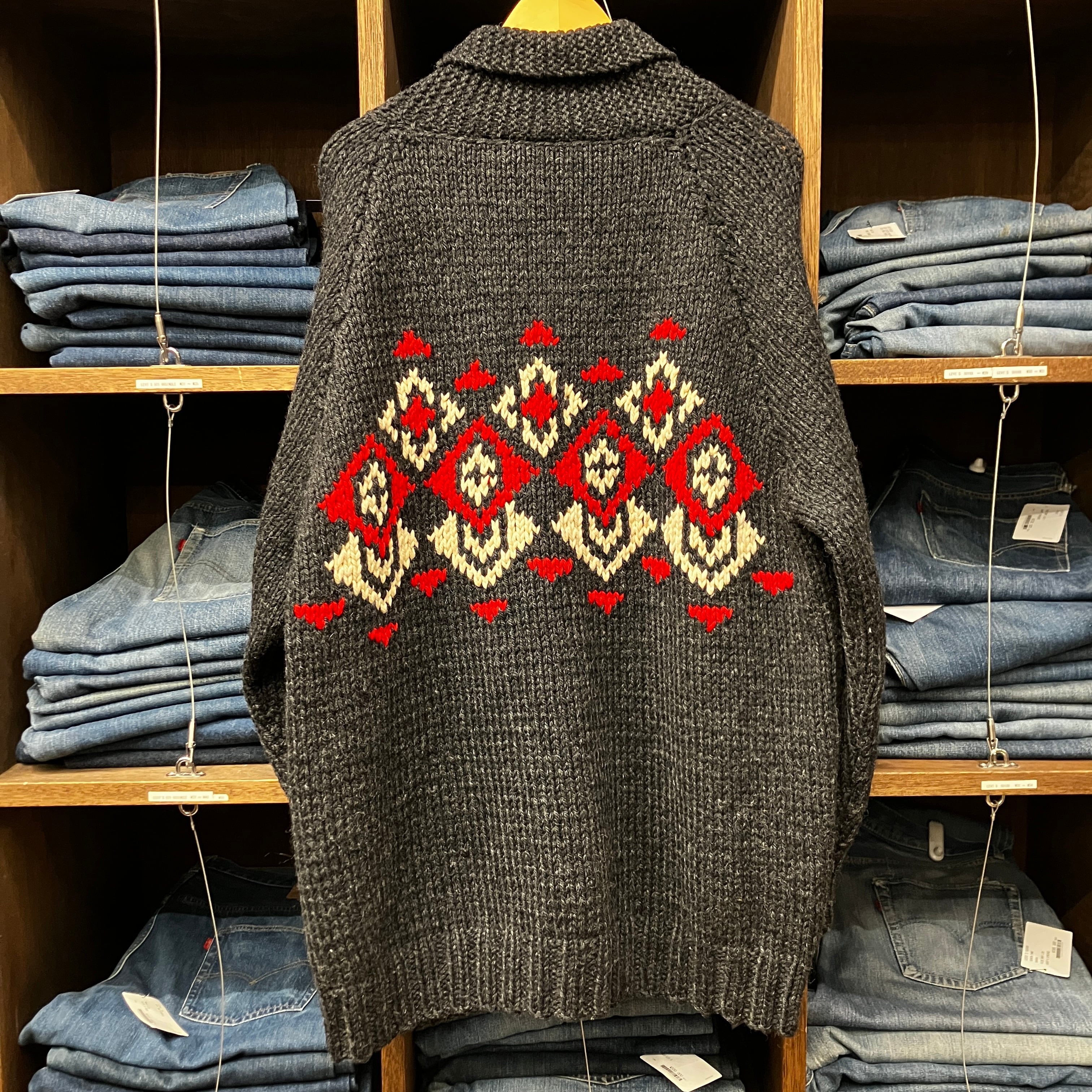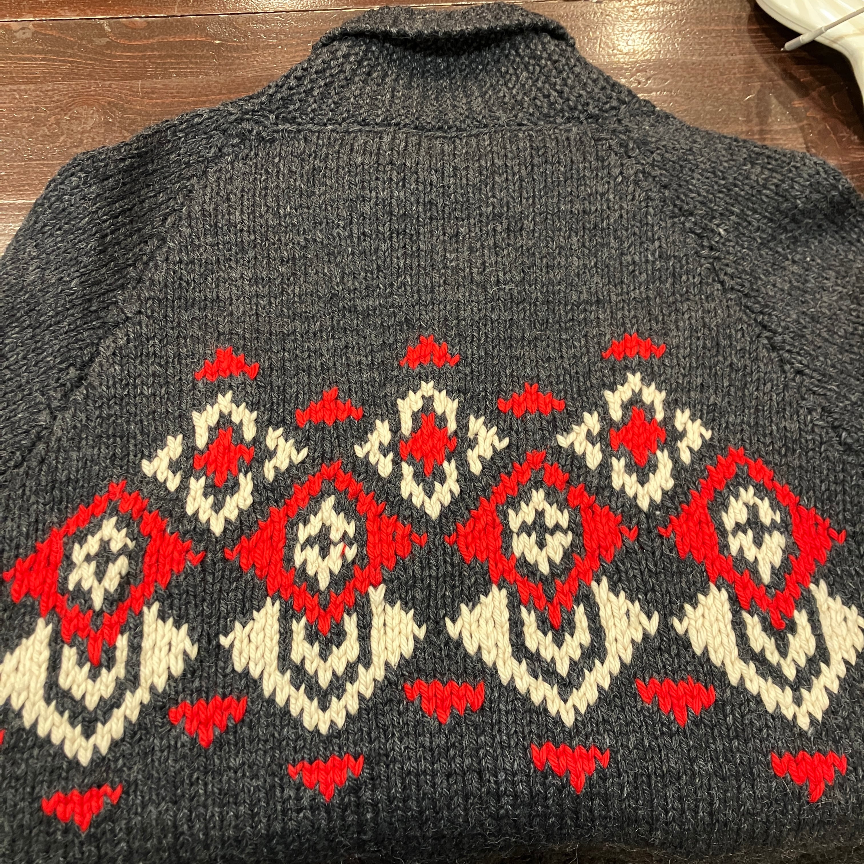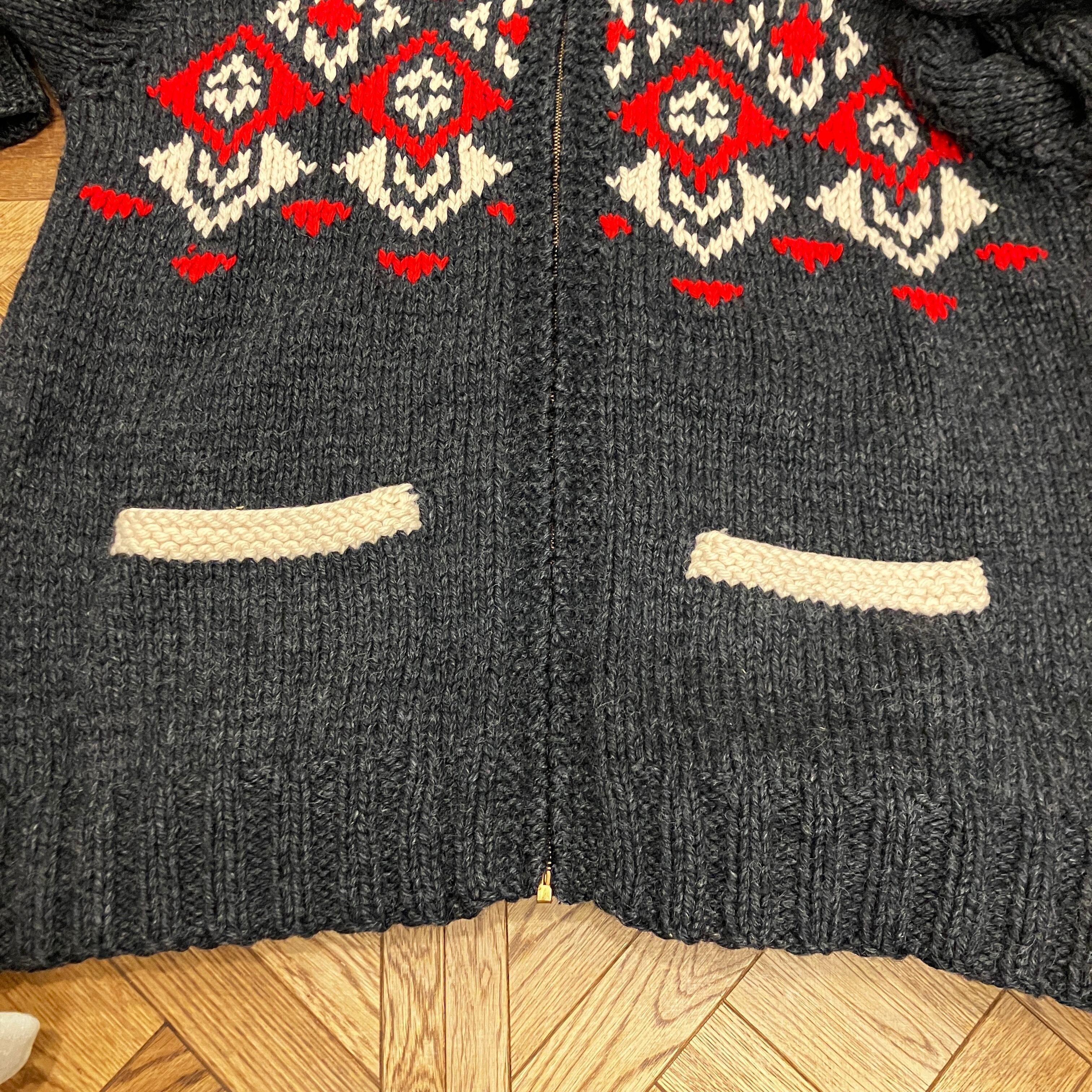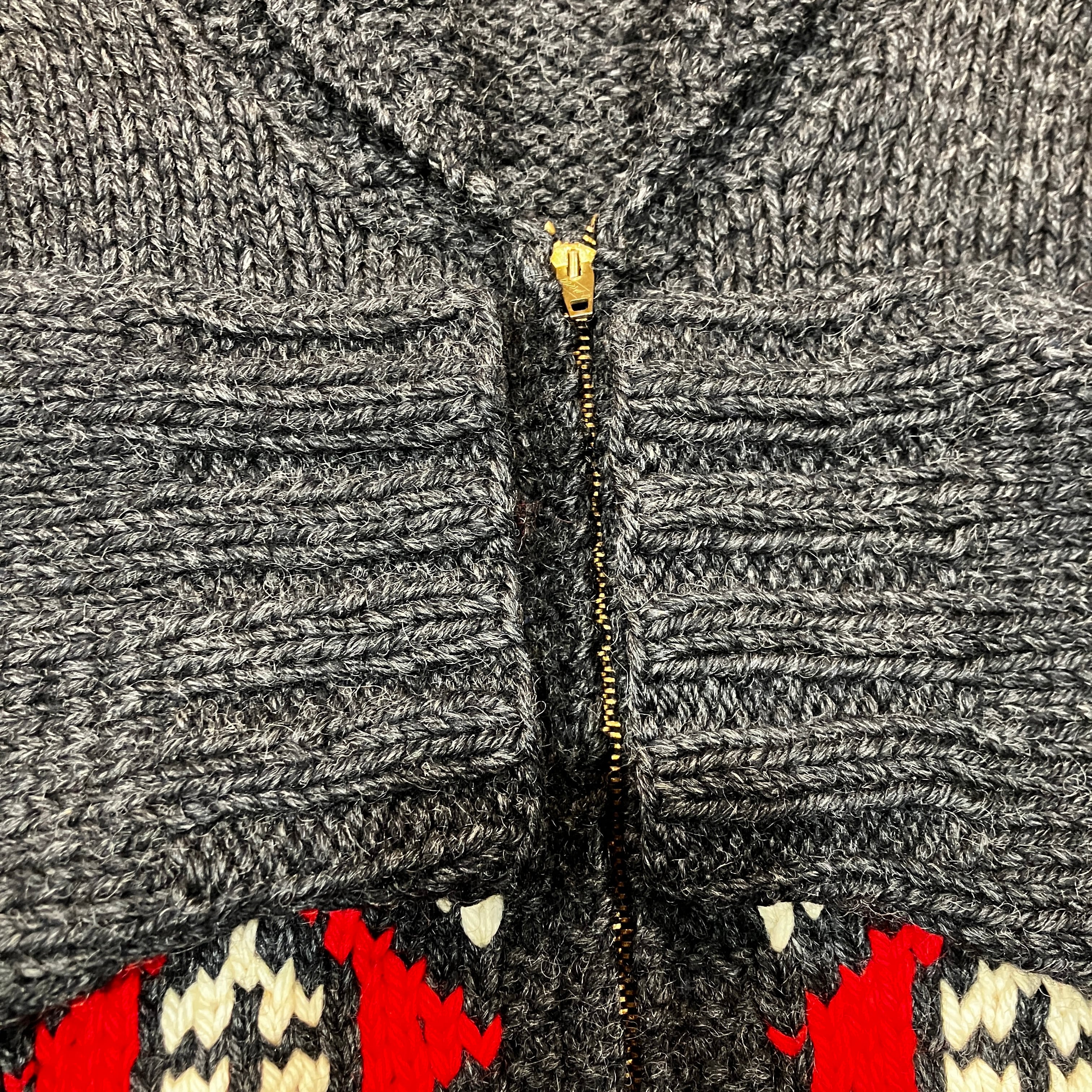 ①1960'S GRAY NORDIC COWICHAN KNIT CARDIGAN