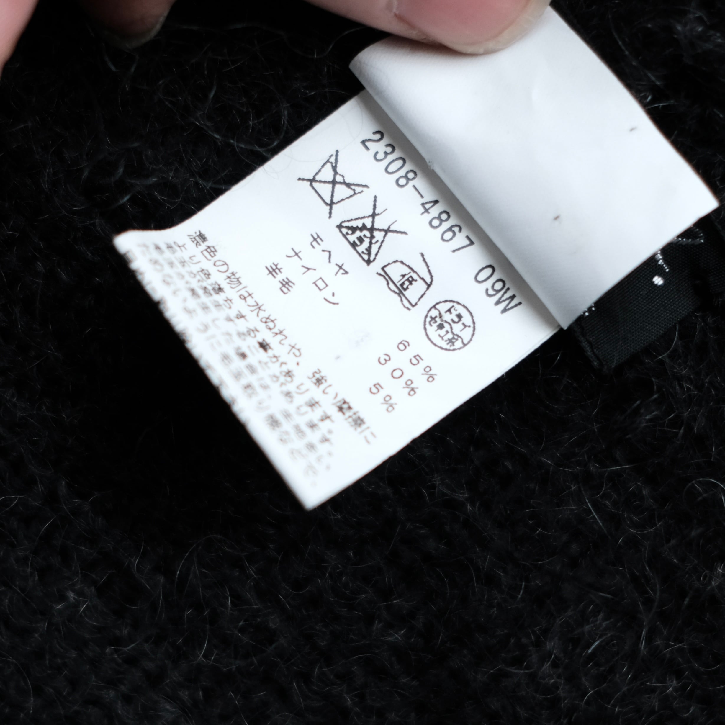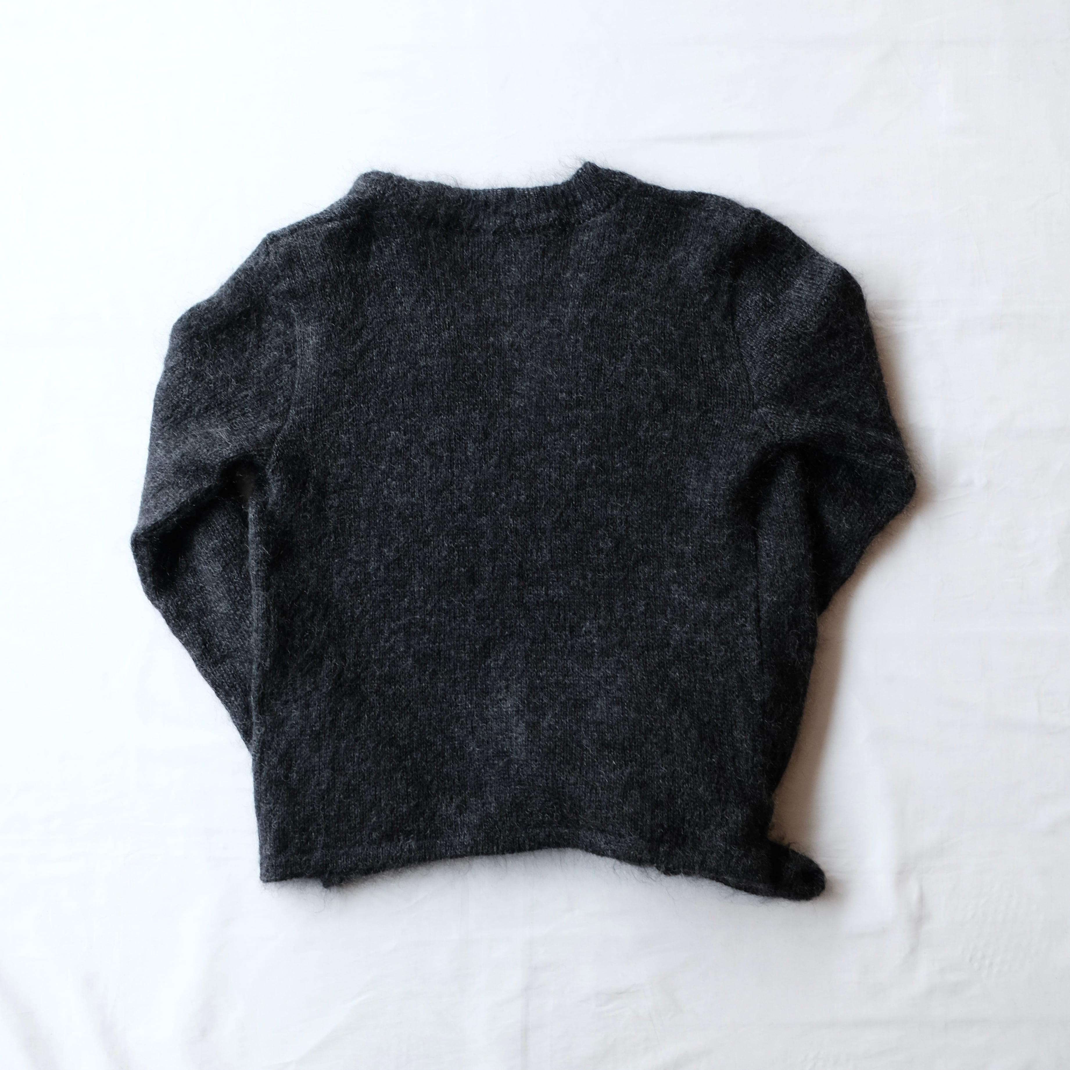モヘア多めの混紡で、ダークチャコールグレー系のカラー。