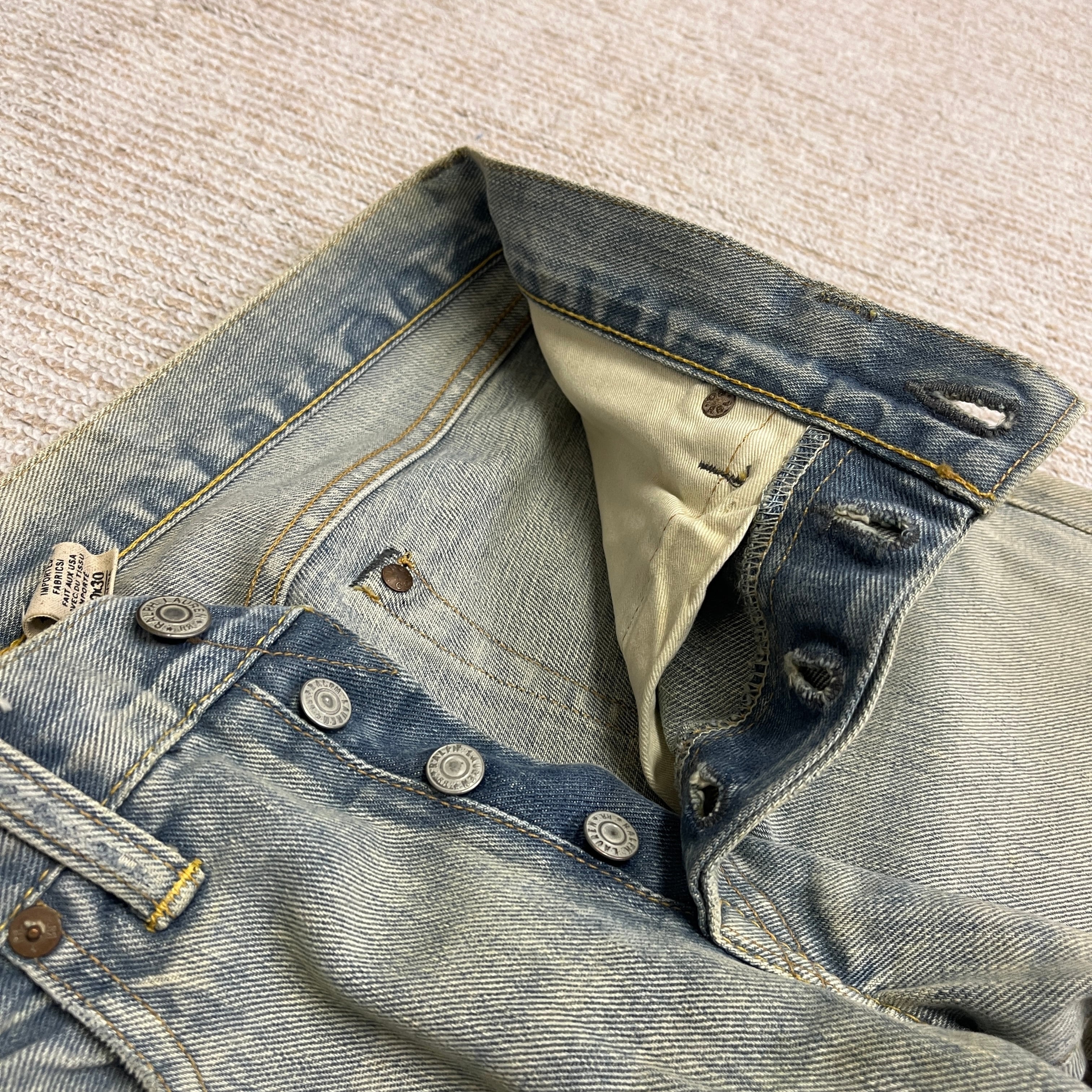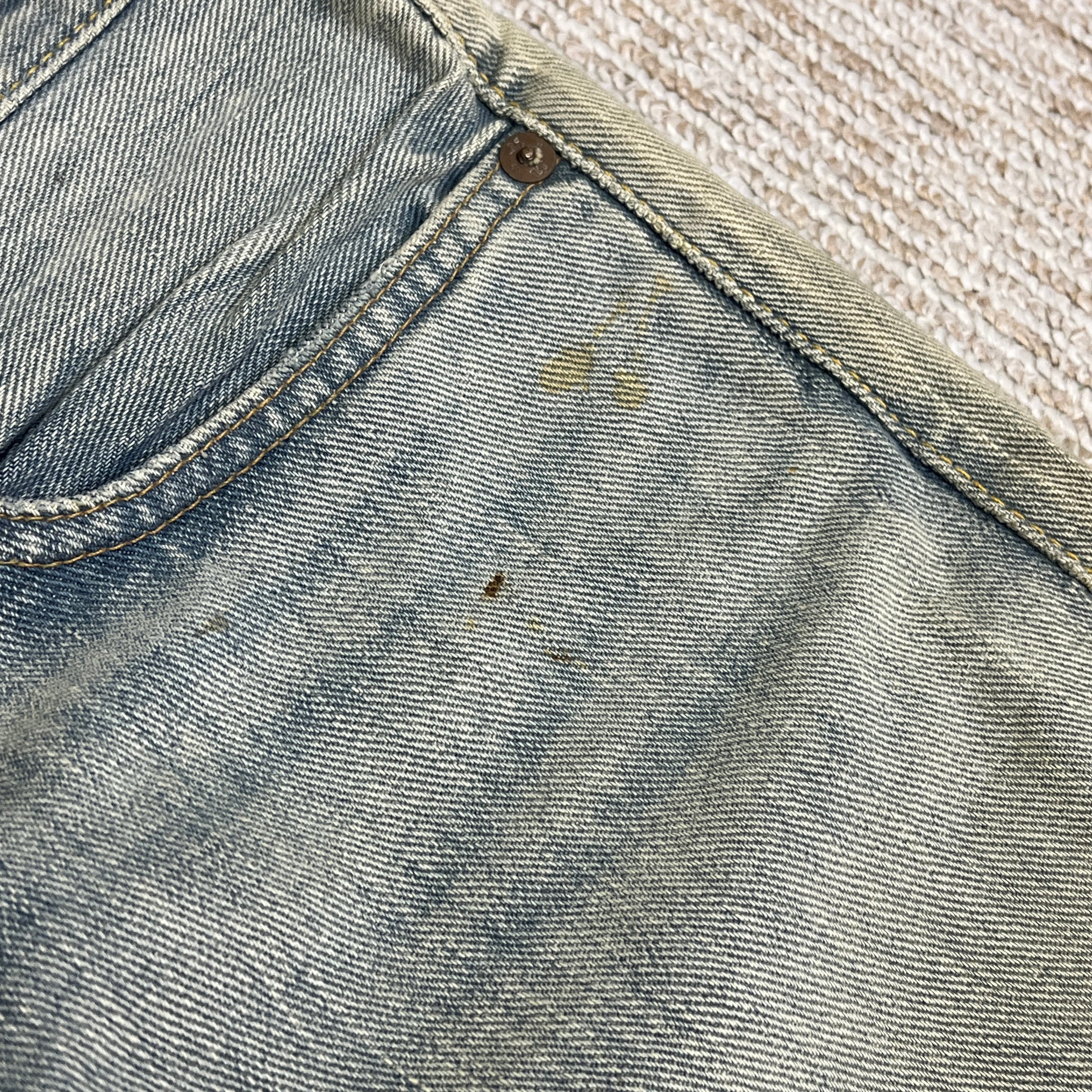 着用によるスレや色落ち、汚れがございますが他に目立つダメージ等は無く、古着慣れされた方でしたら問題無く着用していただける状態です。