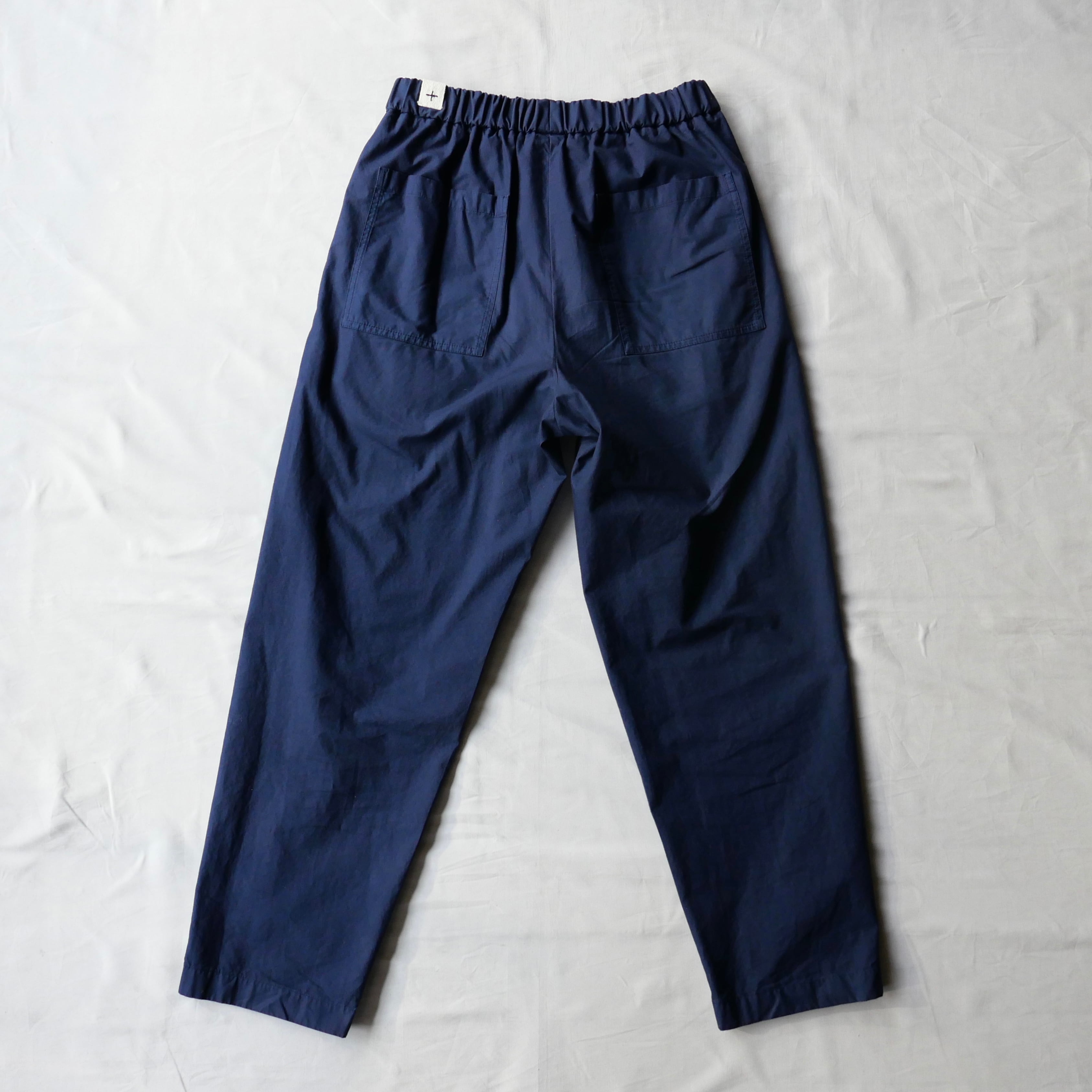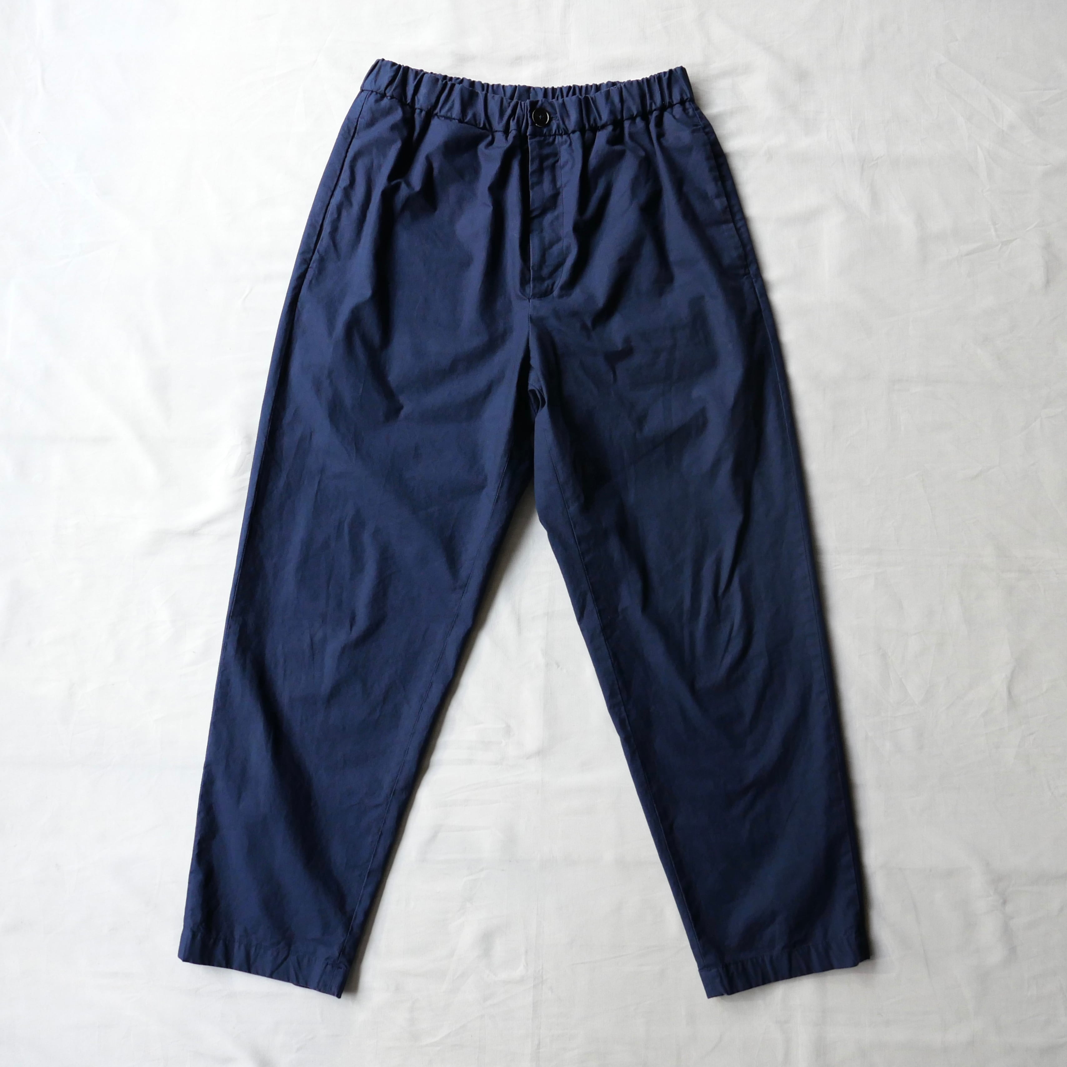 イージーな仕様でありながらもテーパードした綺麗なシルエット、ネイビーカラーも上品ですね。