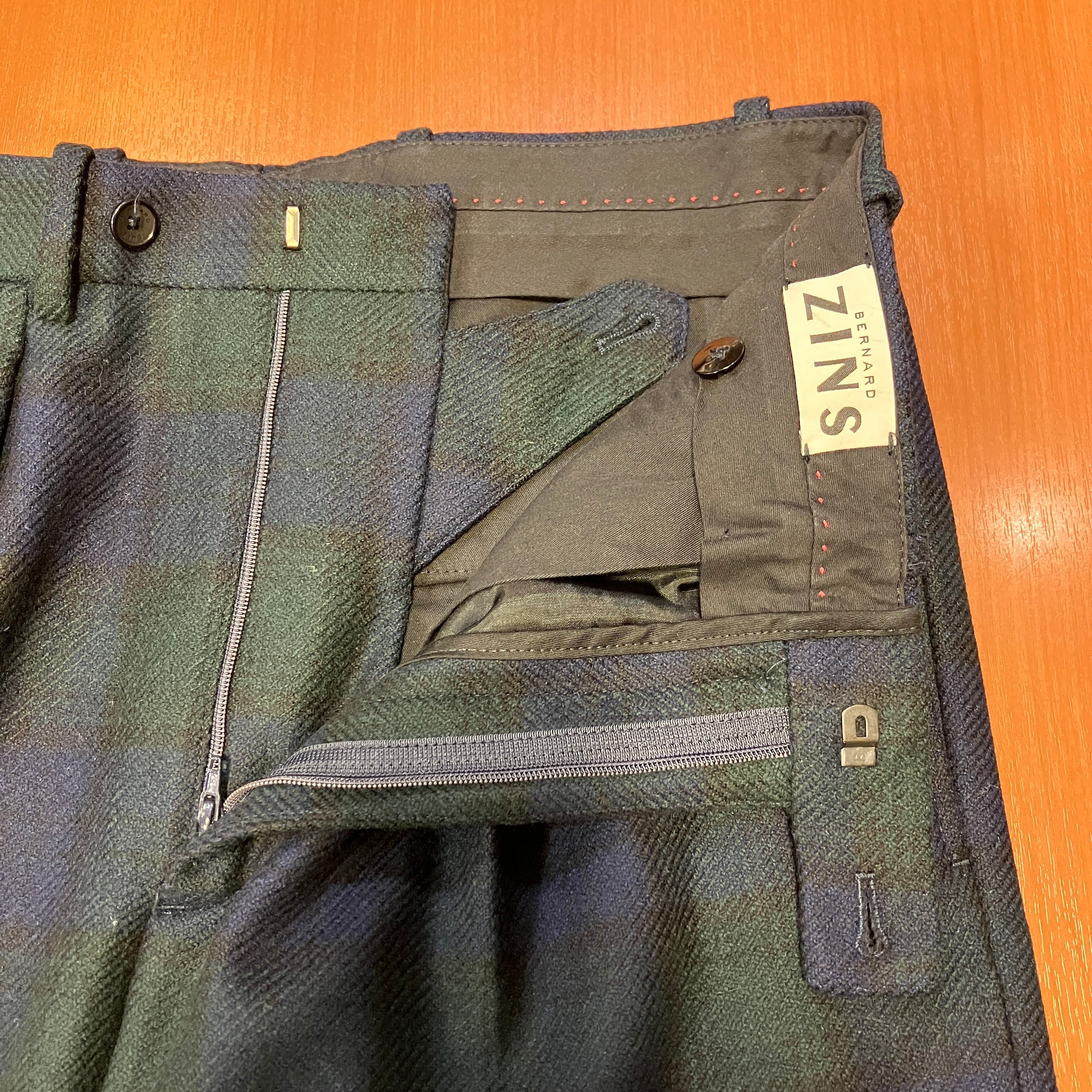 BERNARD ZINS WOOL / CASHMERE BLACKWATCH SLACKS《38》