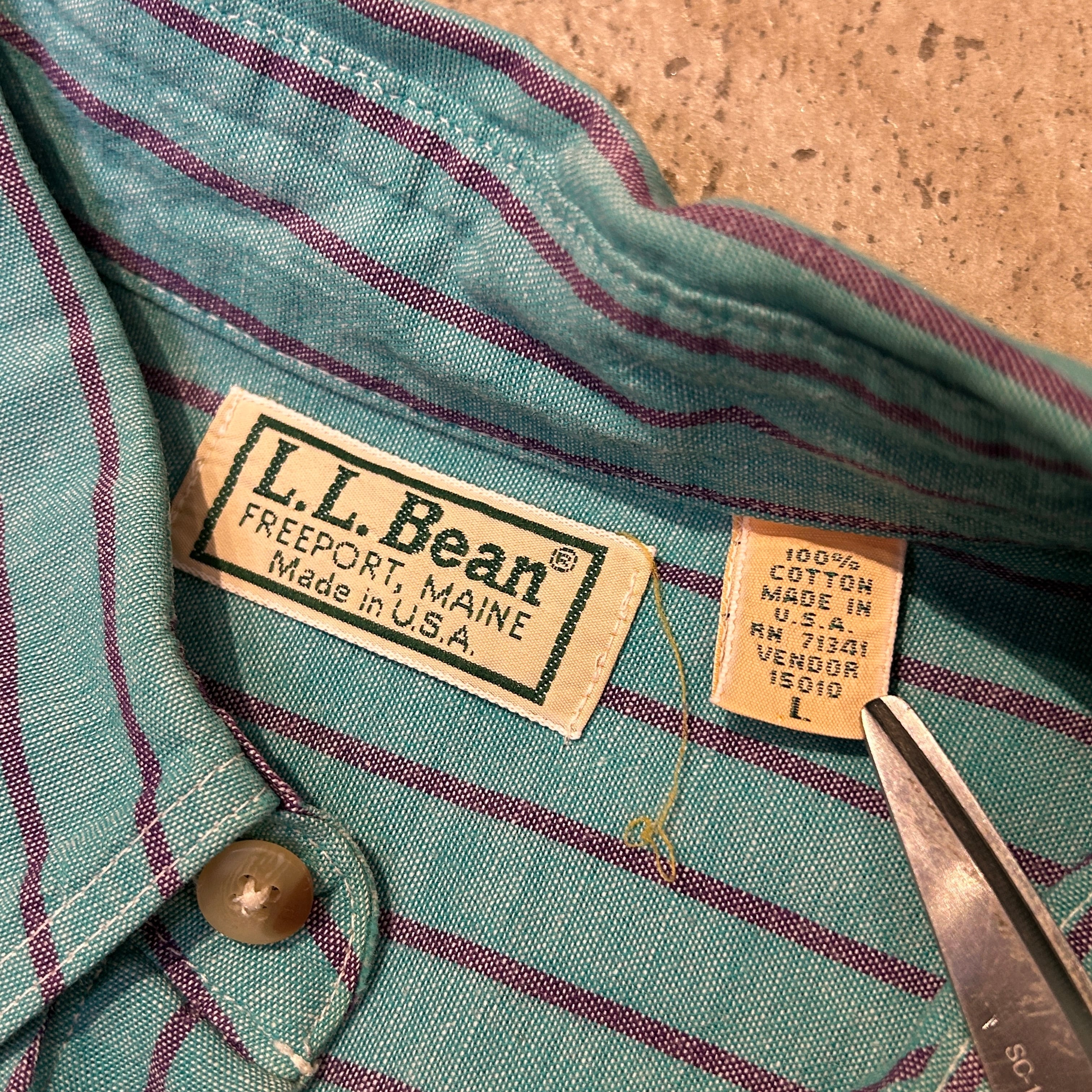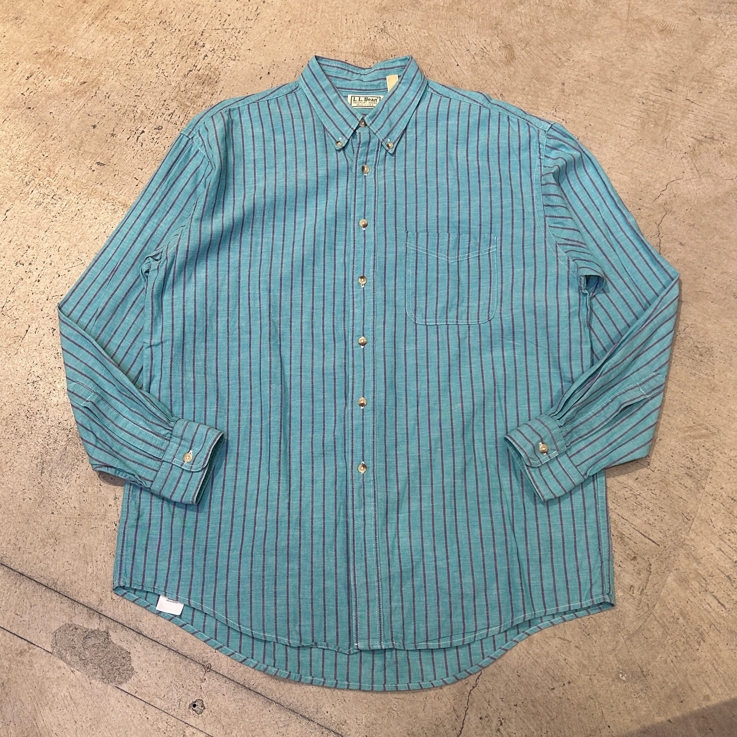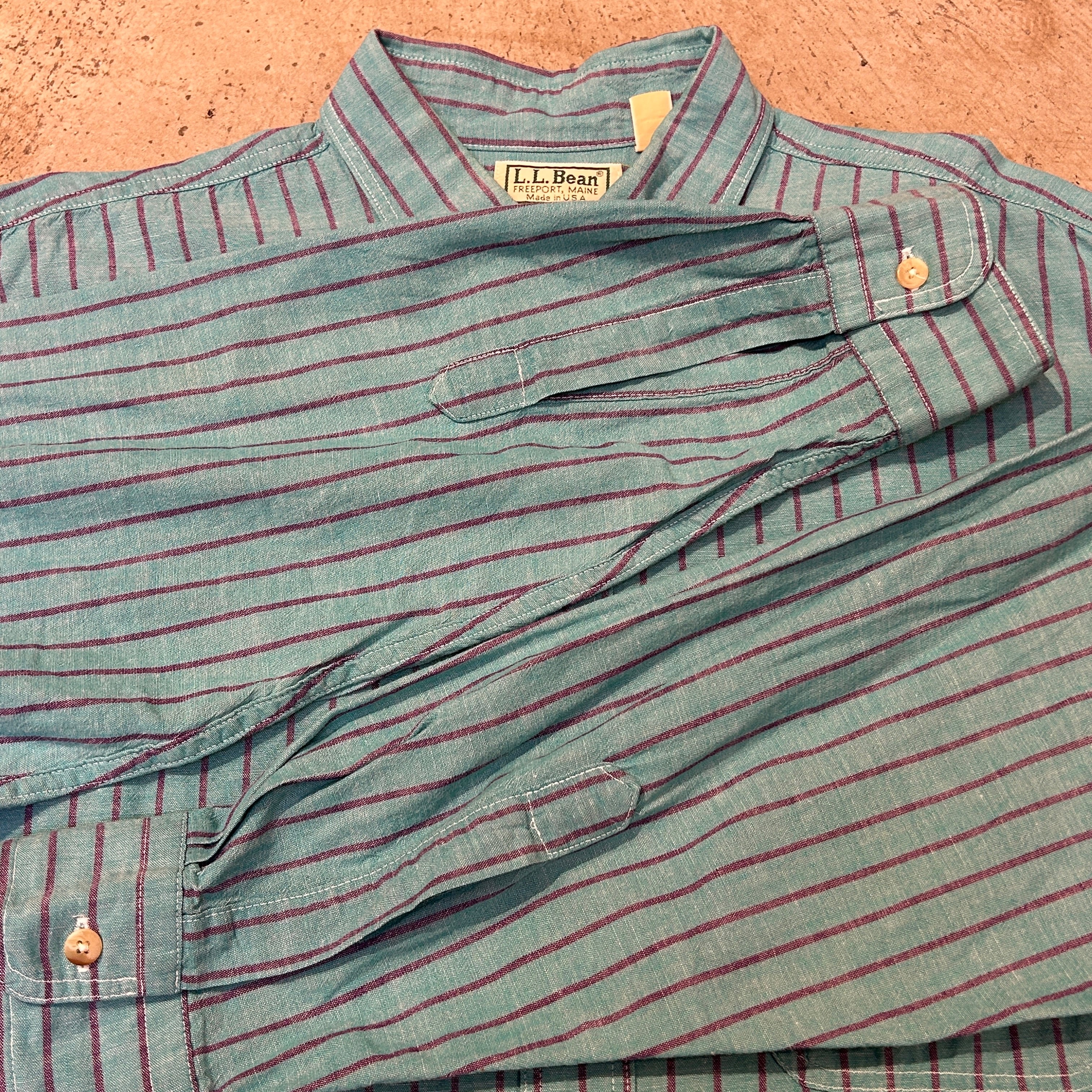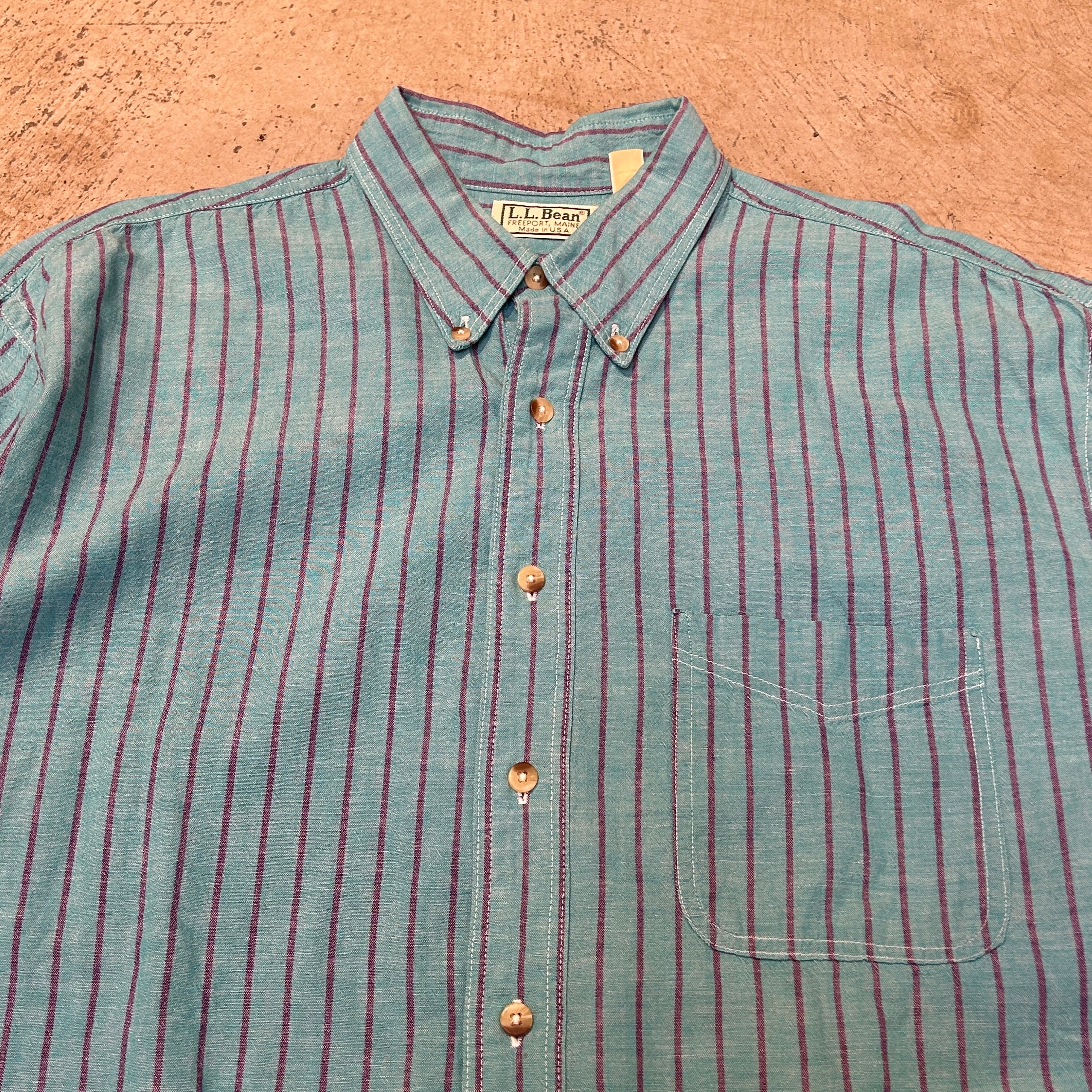 1980s LL BEAN COTTON STRIPE SHIRT MINTGREEN USA