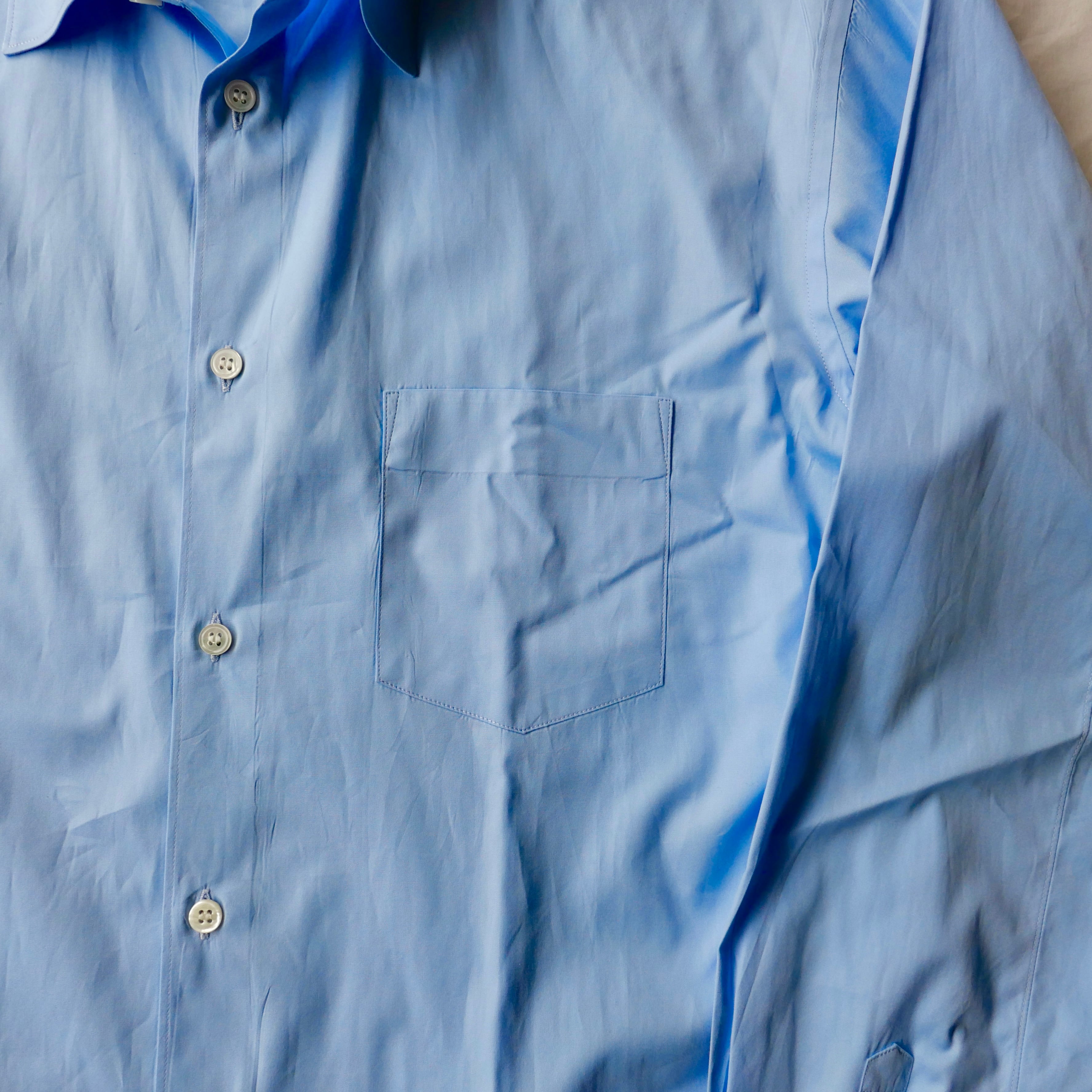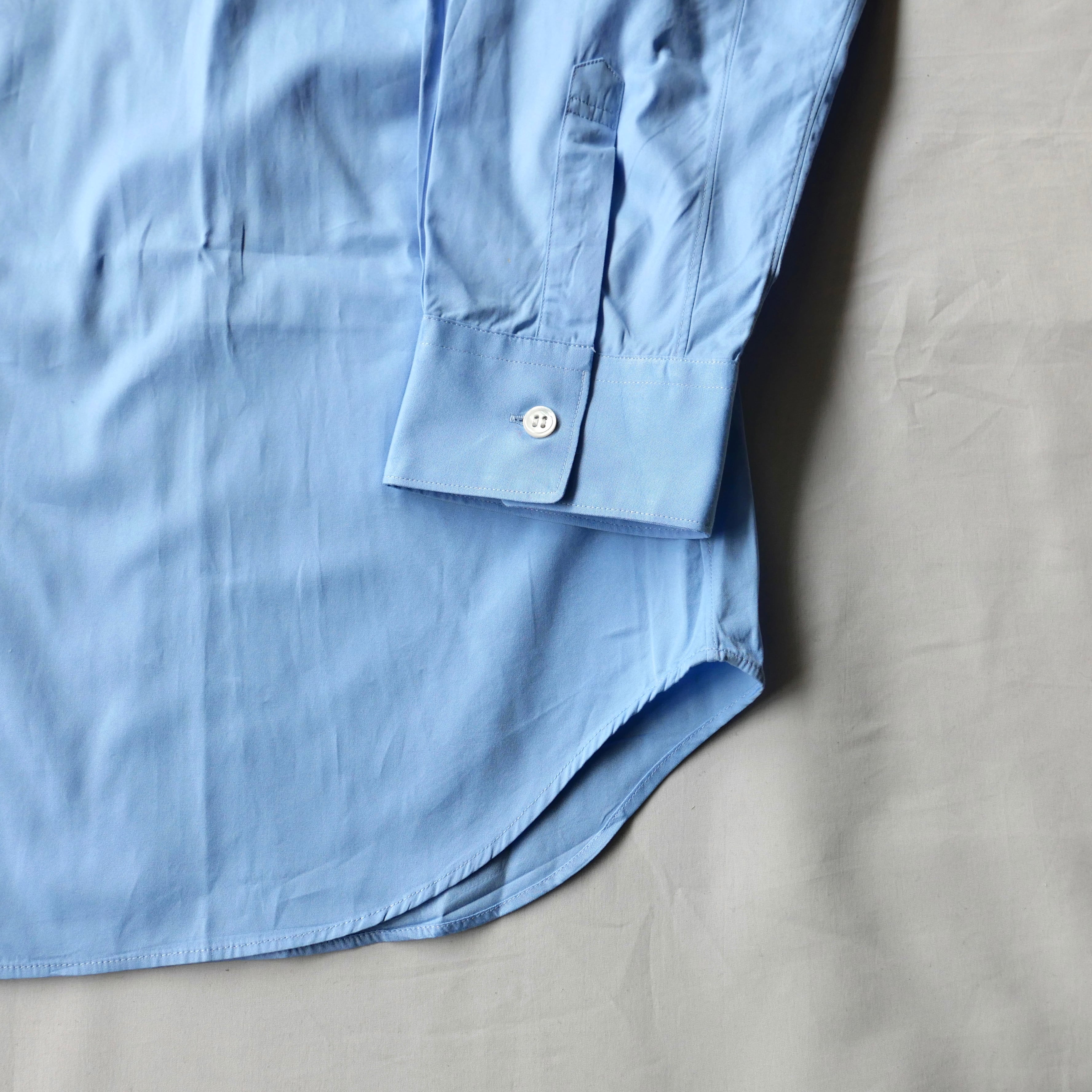 程良く小ぶりなスクエア型の襟、上質なコットンブロード生地、フランス製等拘りの詰まった一着。