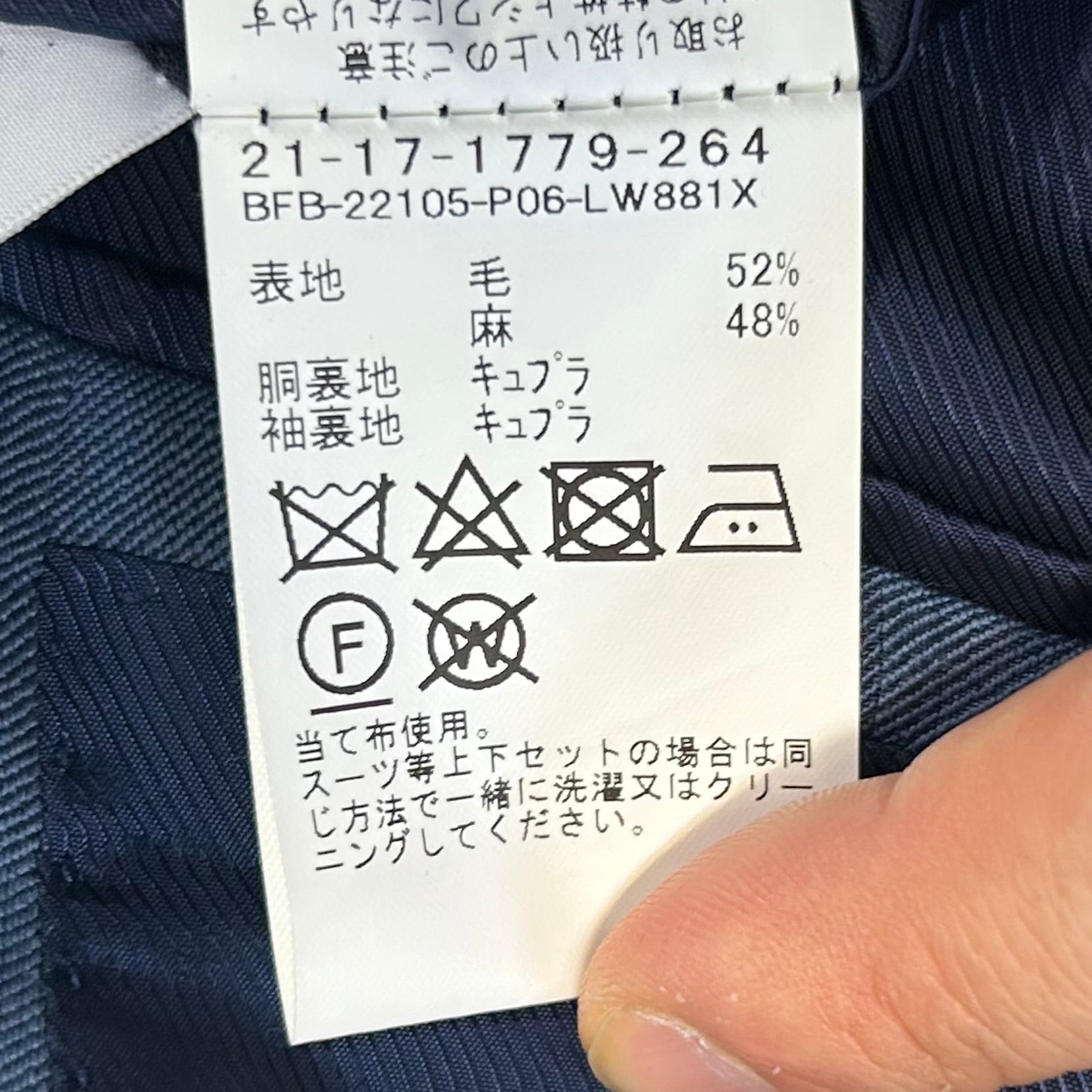 着用によるシワやリネン特有のネップが見られますが、支障をきたす程のダメージ等はございません。