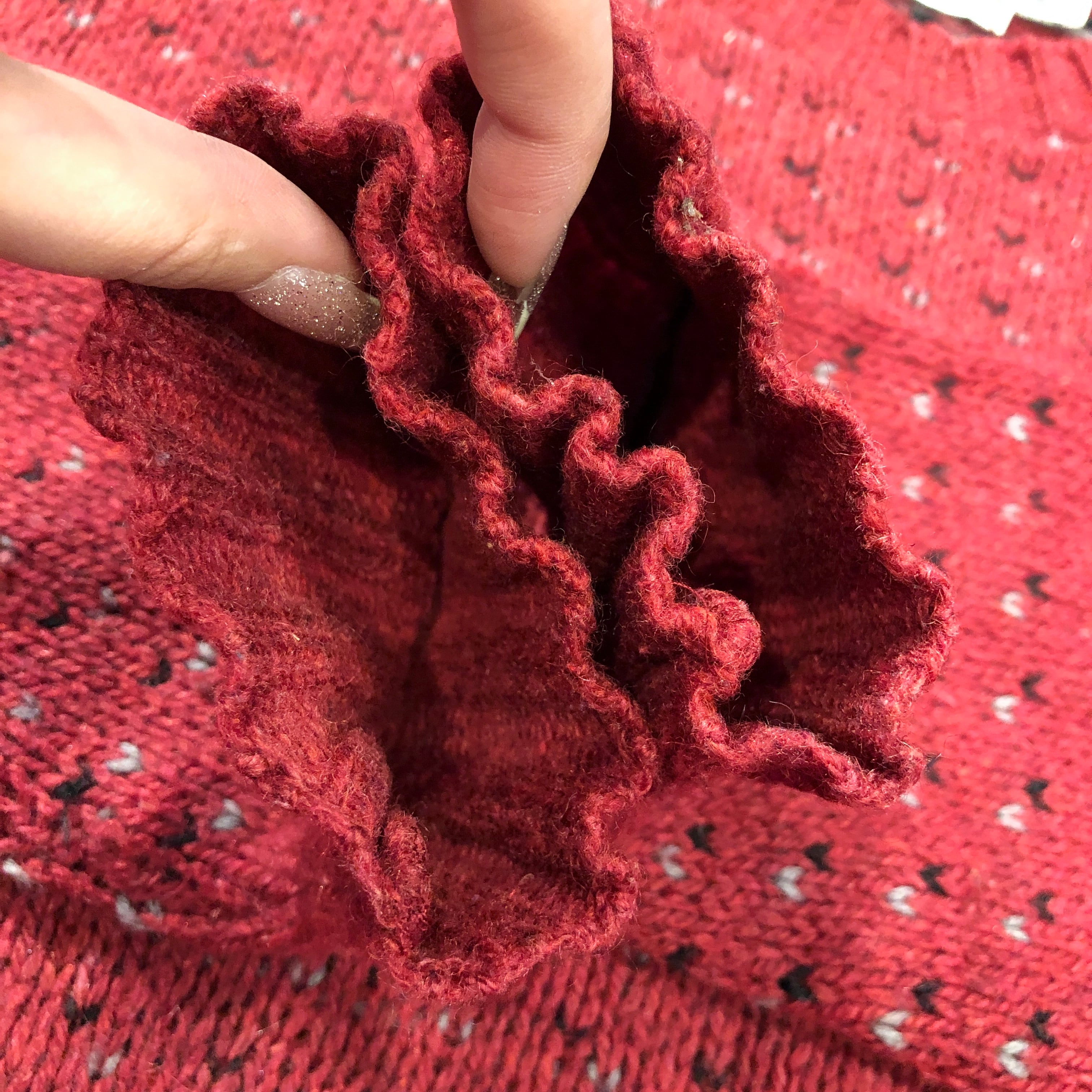 画像のように、穴や袖口に汚れがございます。