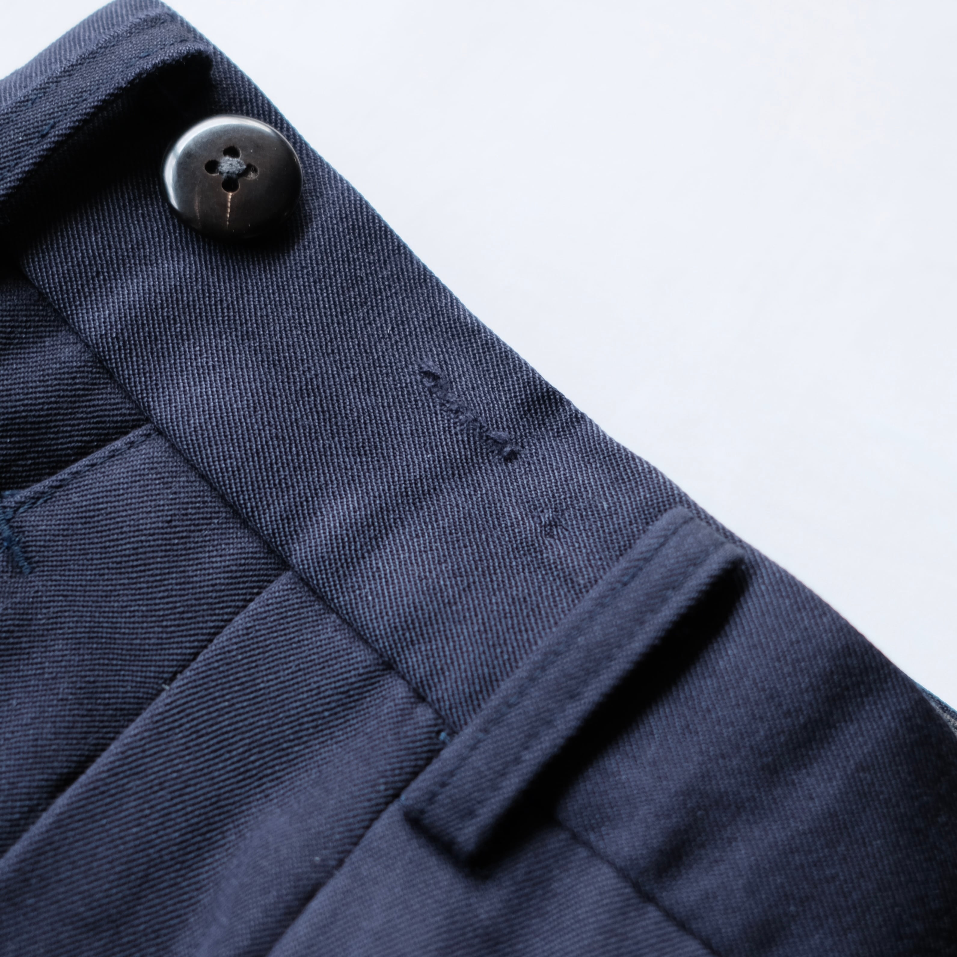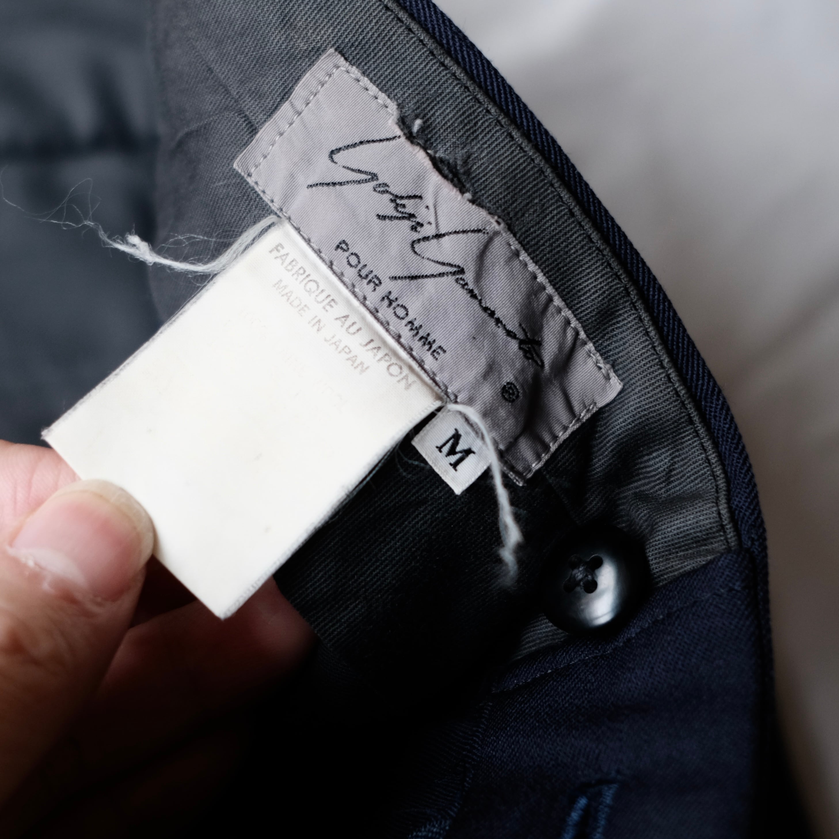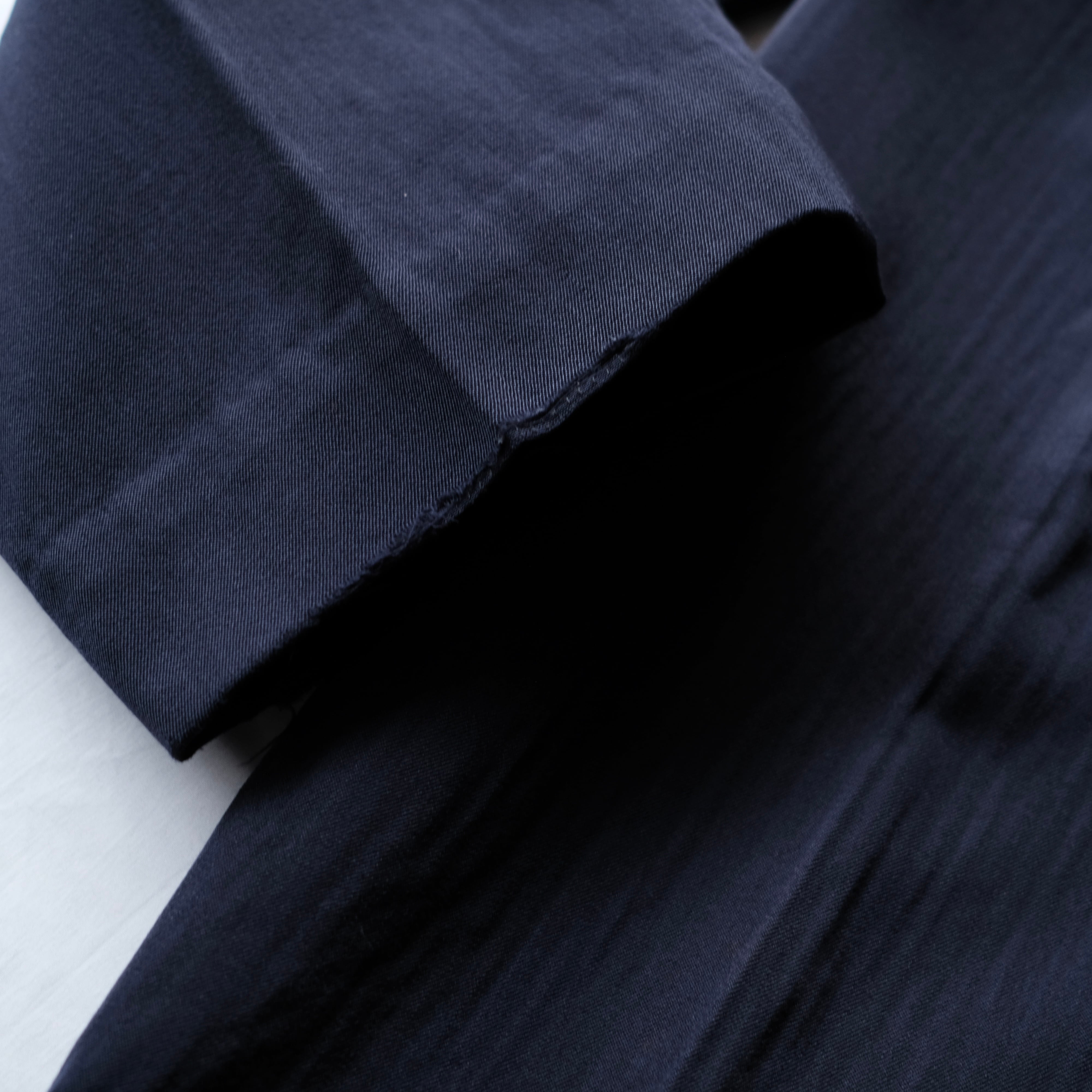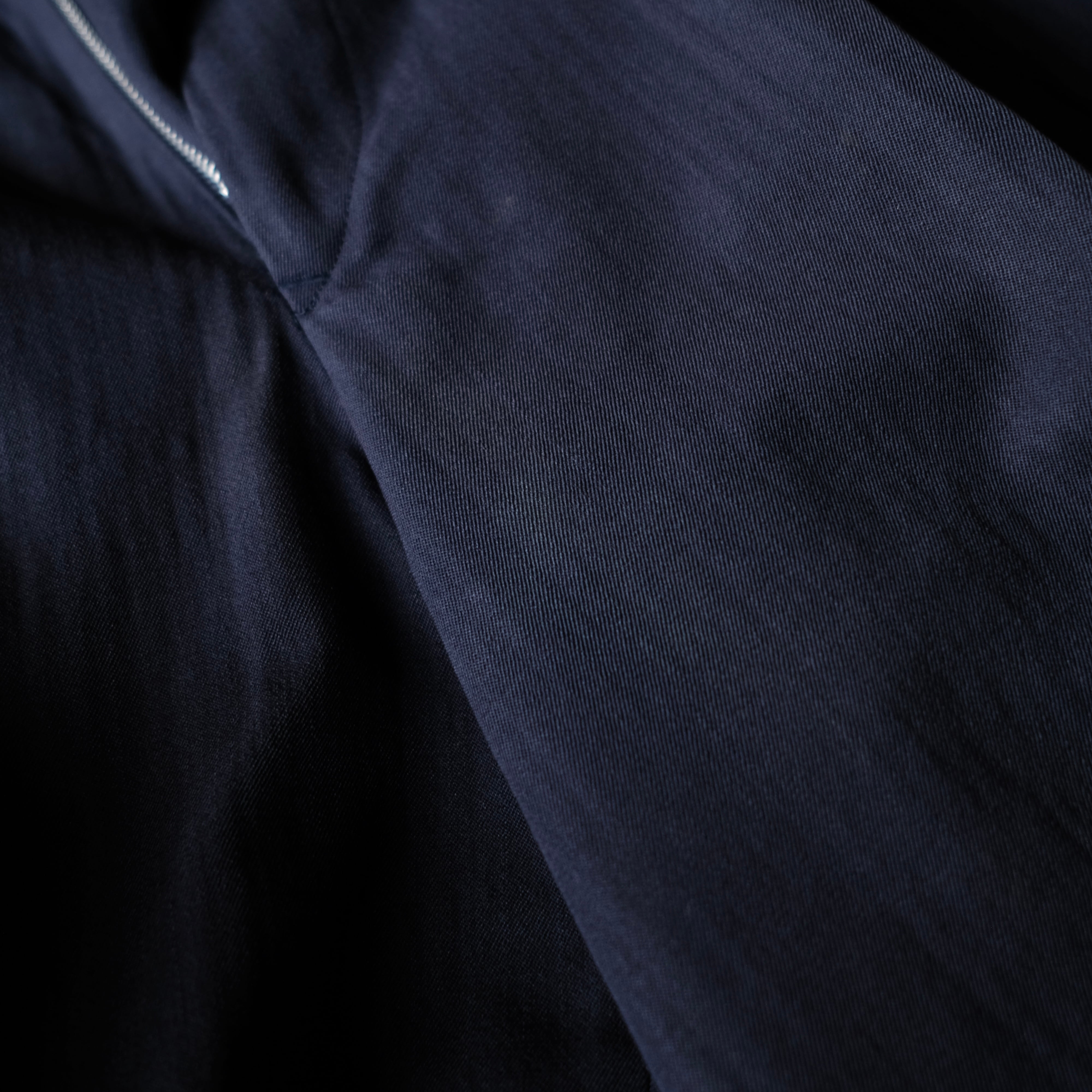 深いネイビーカラーでオーセンティックなディテールながらも、こちらのアイテムの特筆すべきはヨウジヤマモトの代名詞ウールギャバでしょう。