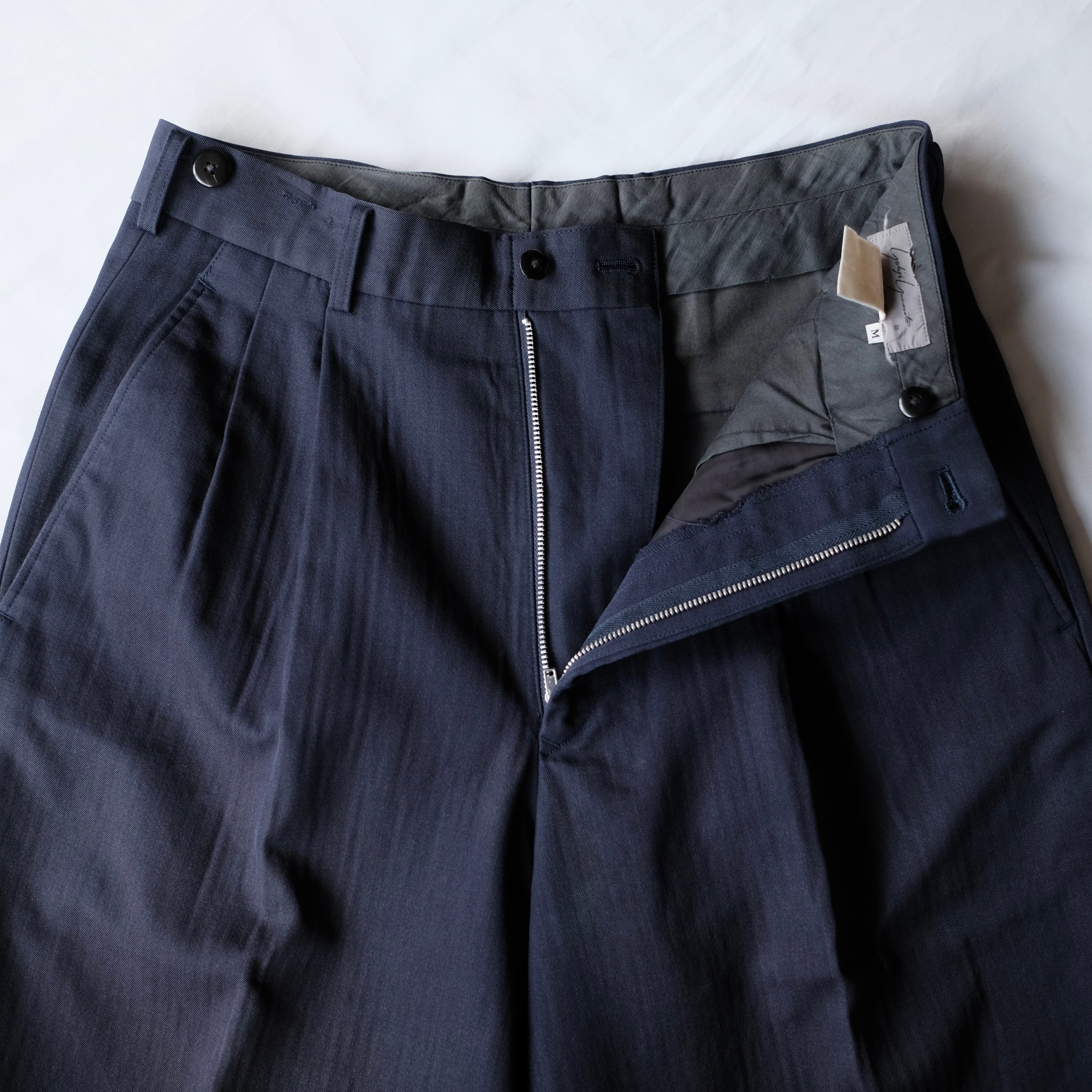 yohji yamamoto POUR HOMME NAVY WOOL GABARDINE SLACKS