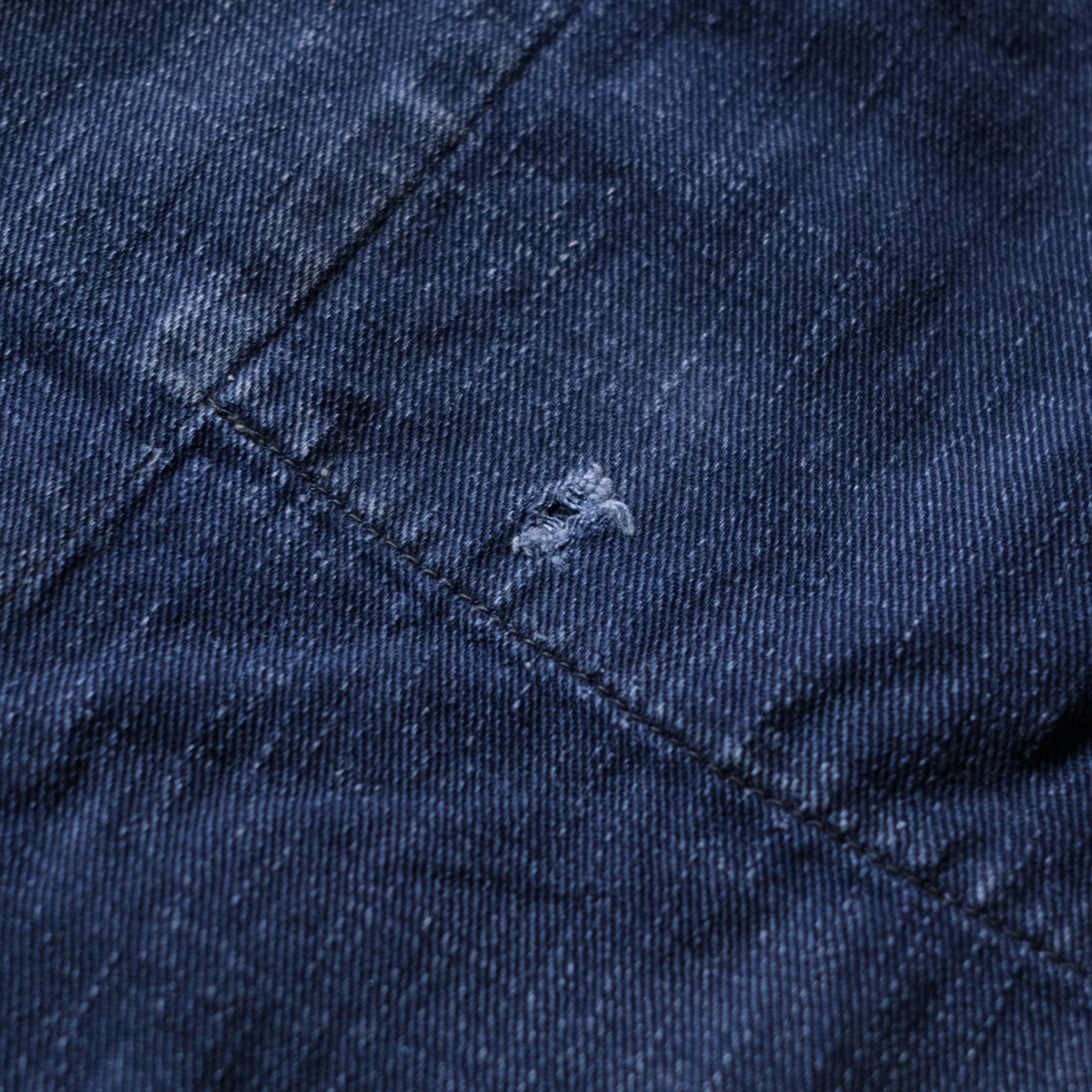 ヴィンテージデニムのように縦糸と横糸の表情がはっきりと出る色落ち。