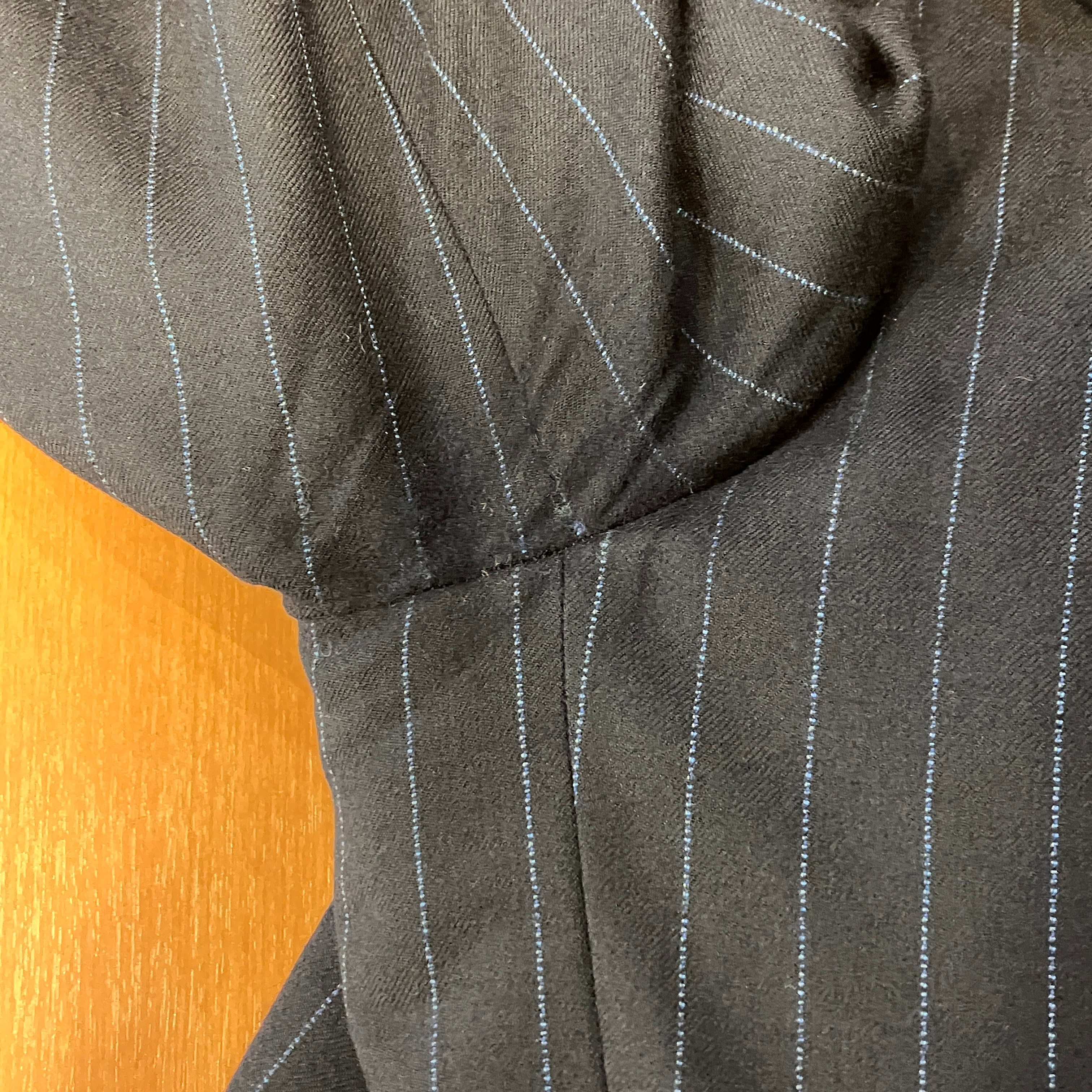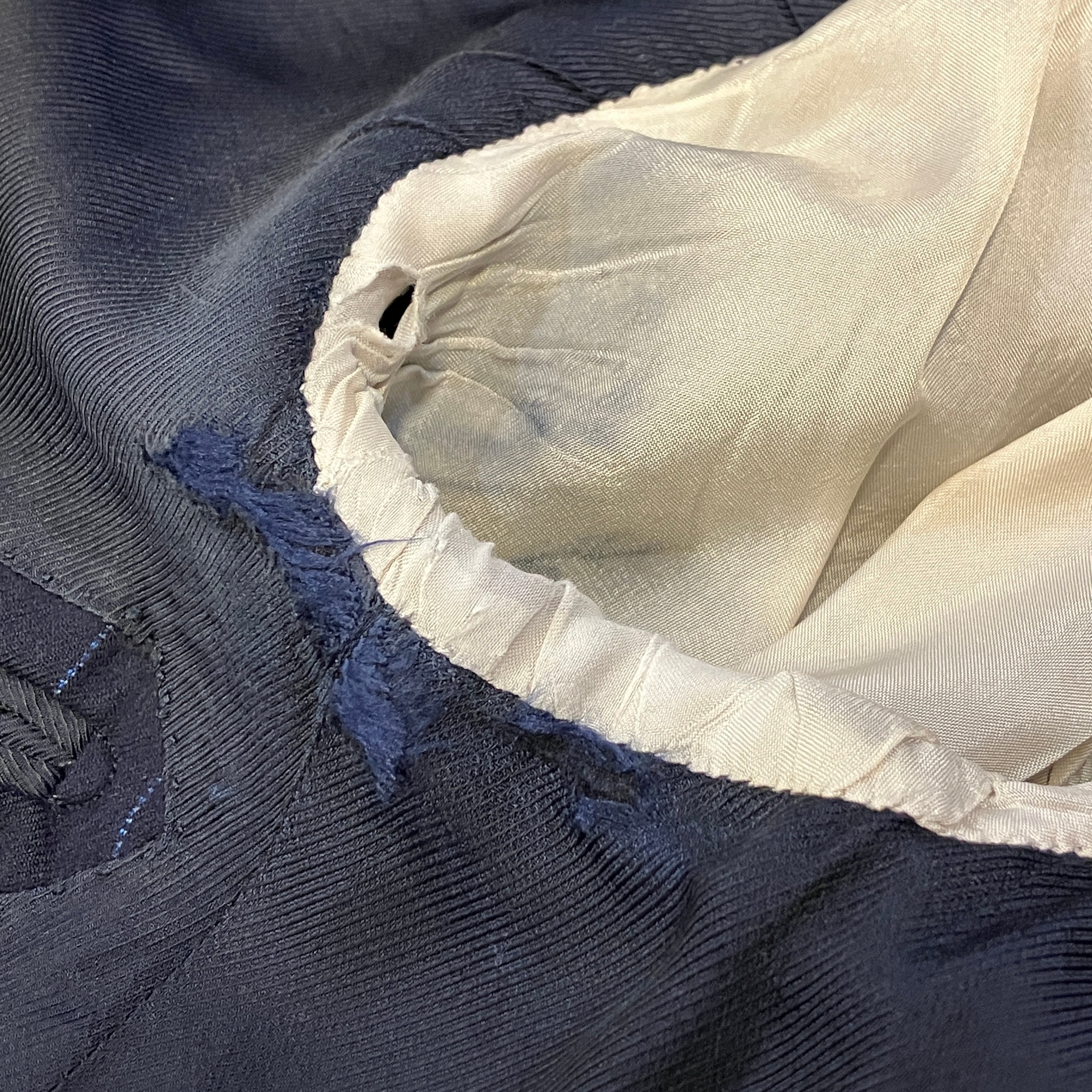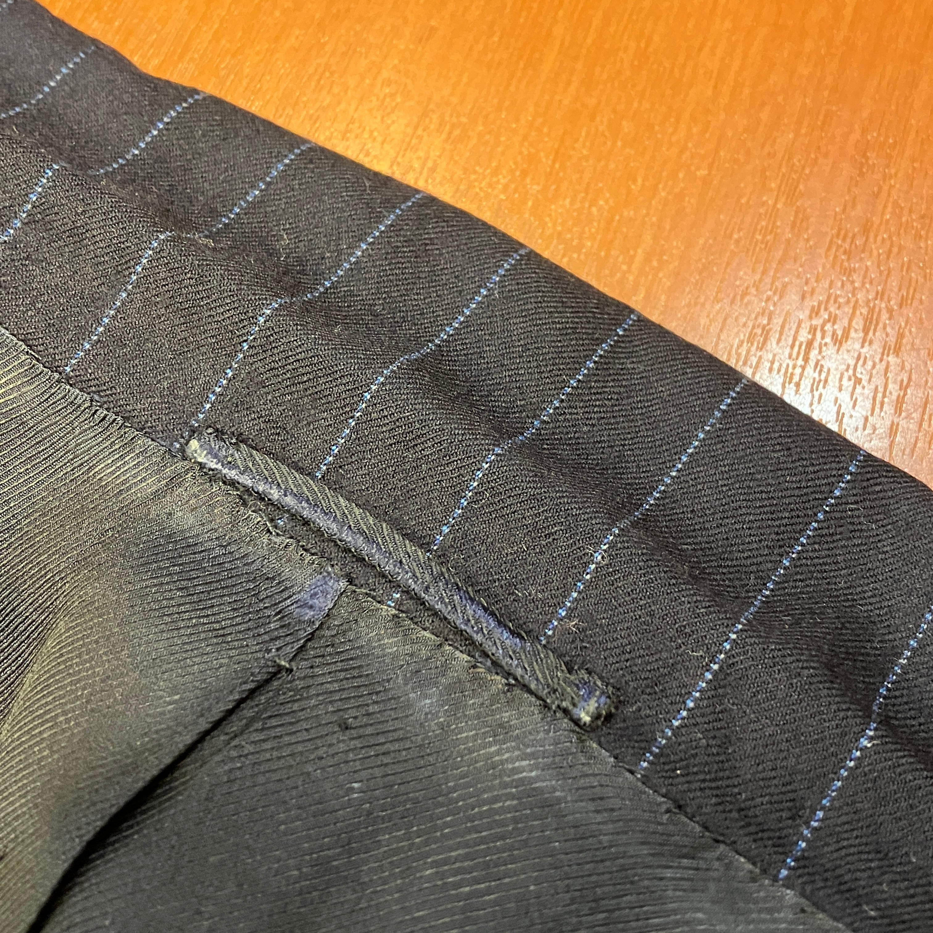ジャケット脇下にスレ、裏地にダメージがあります。