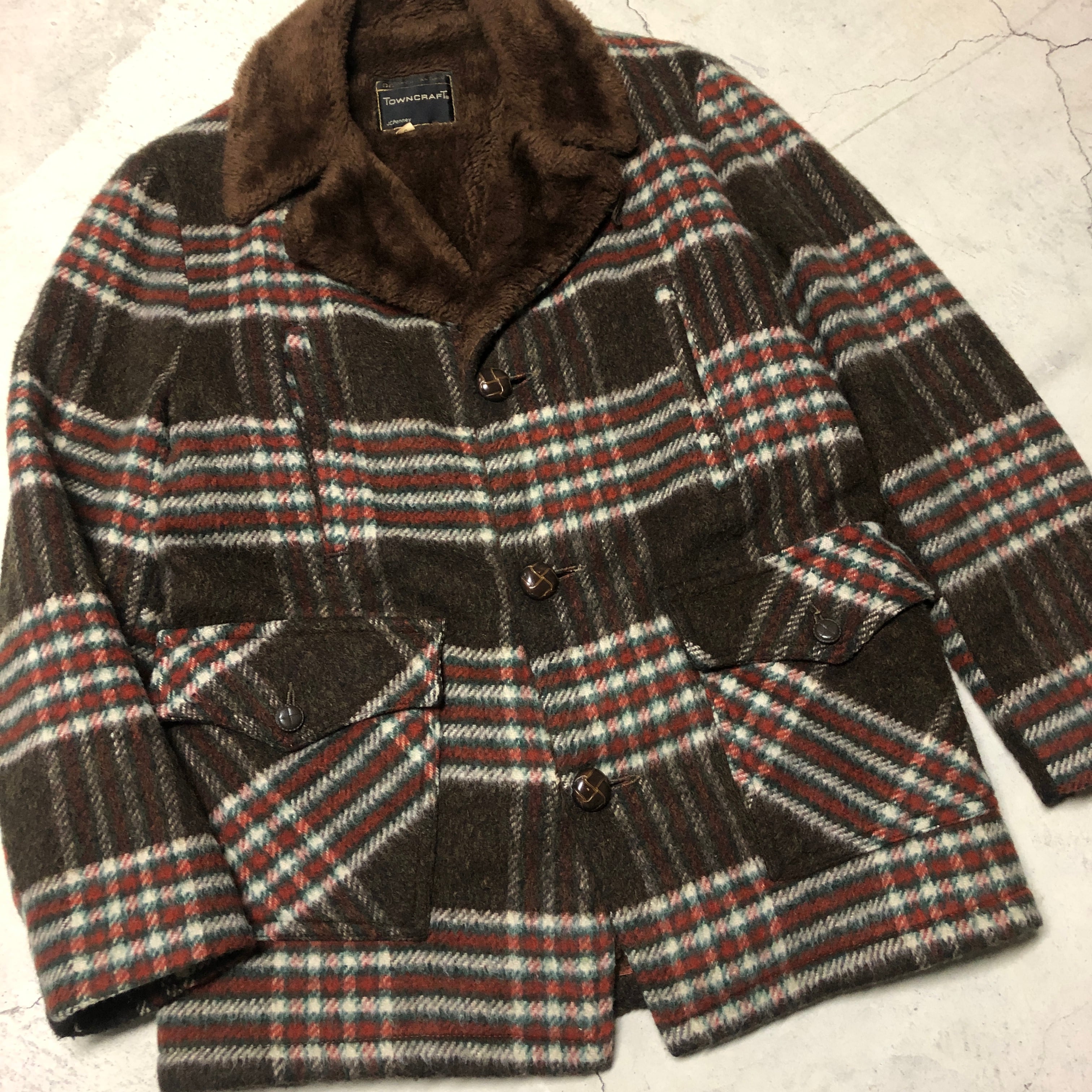 ⊕1970'S TOWN CRAFT WOOL CHECK BOA JACKET