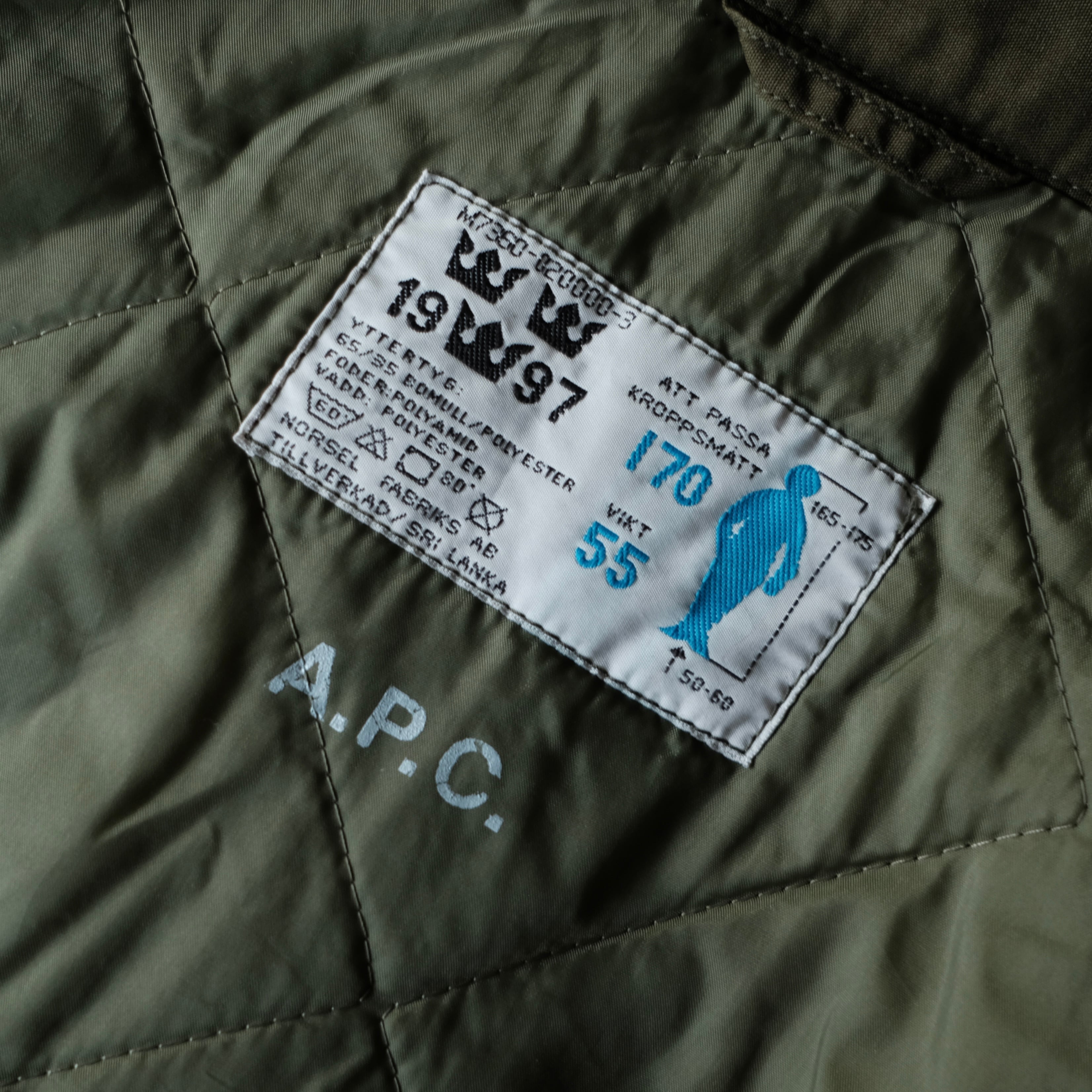 A.P.C. SurplusというプロジェクトでA.P.C.が実物のミリタリーアイテムを販売してた経歴がございますが、こちらはそのときに販売されたスウェーデン軍の銘品M-90。