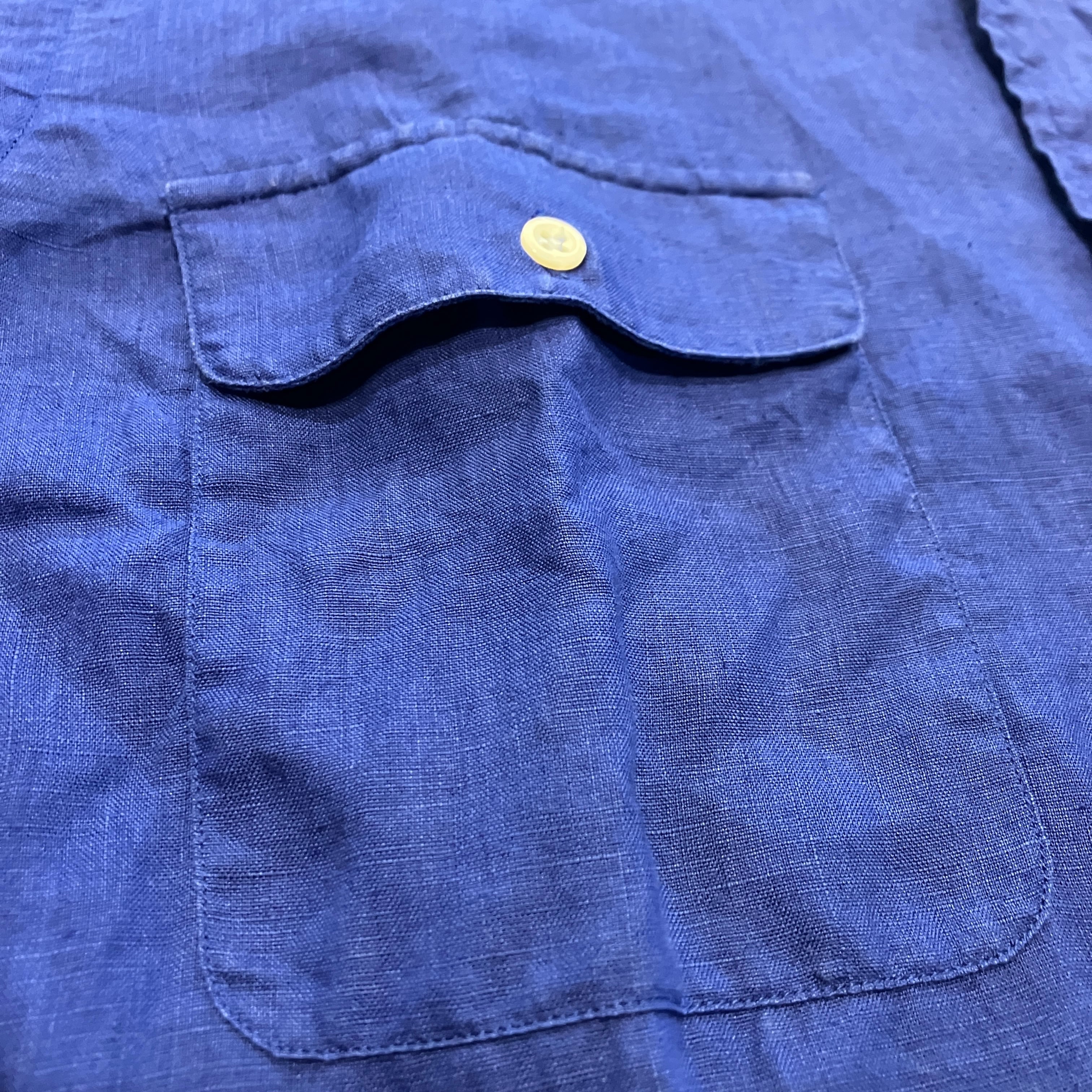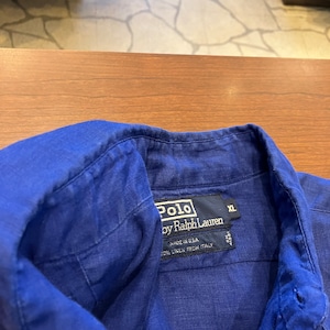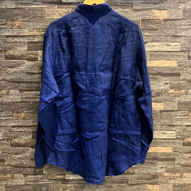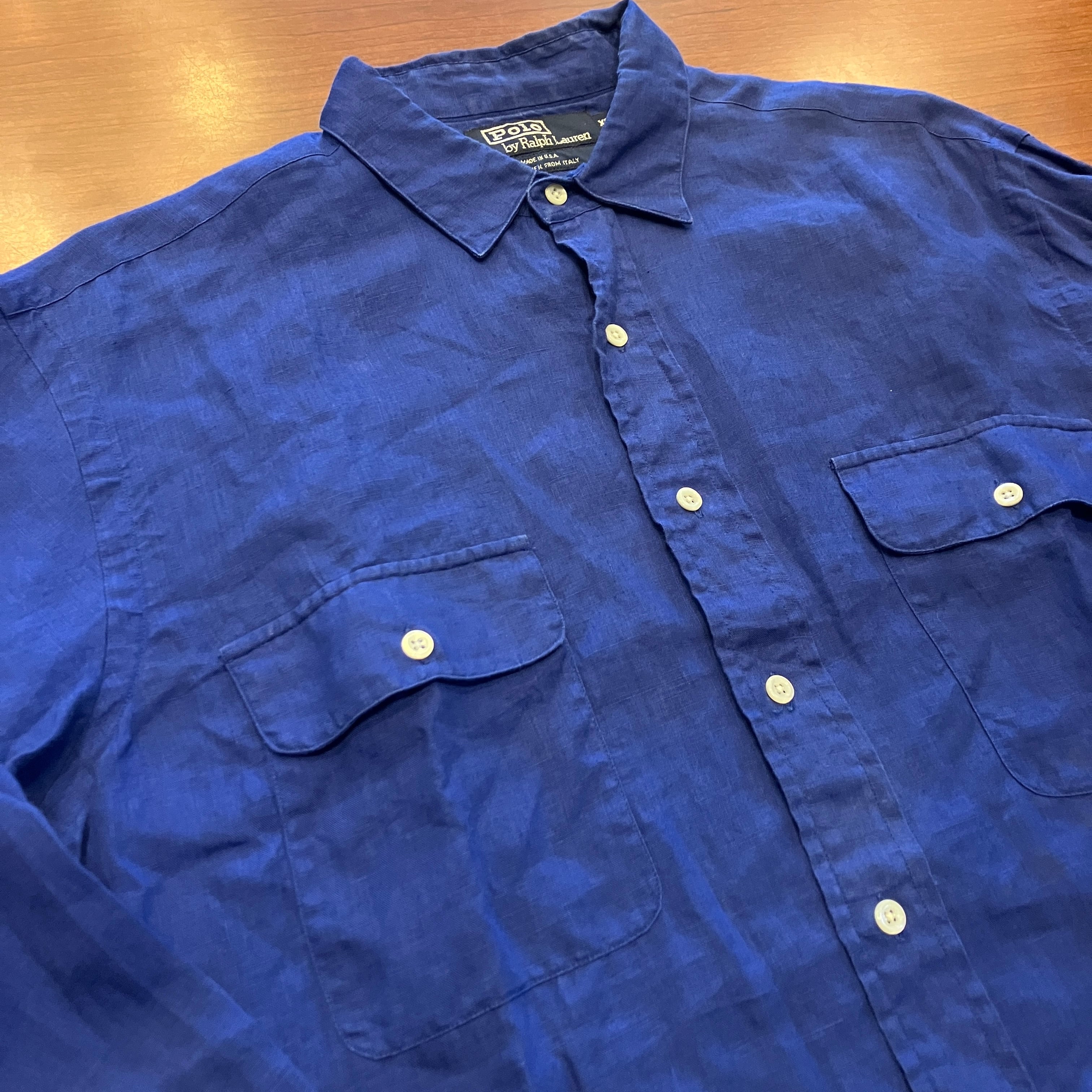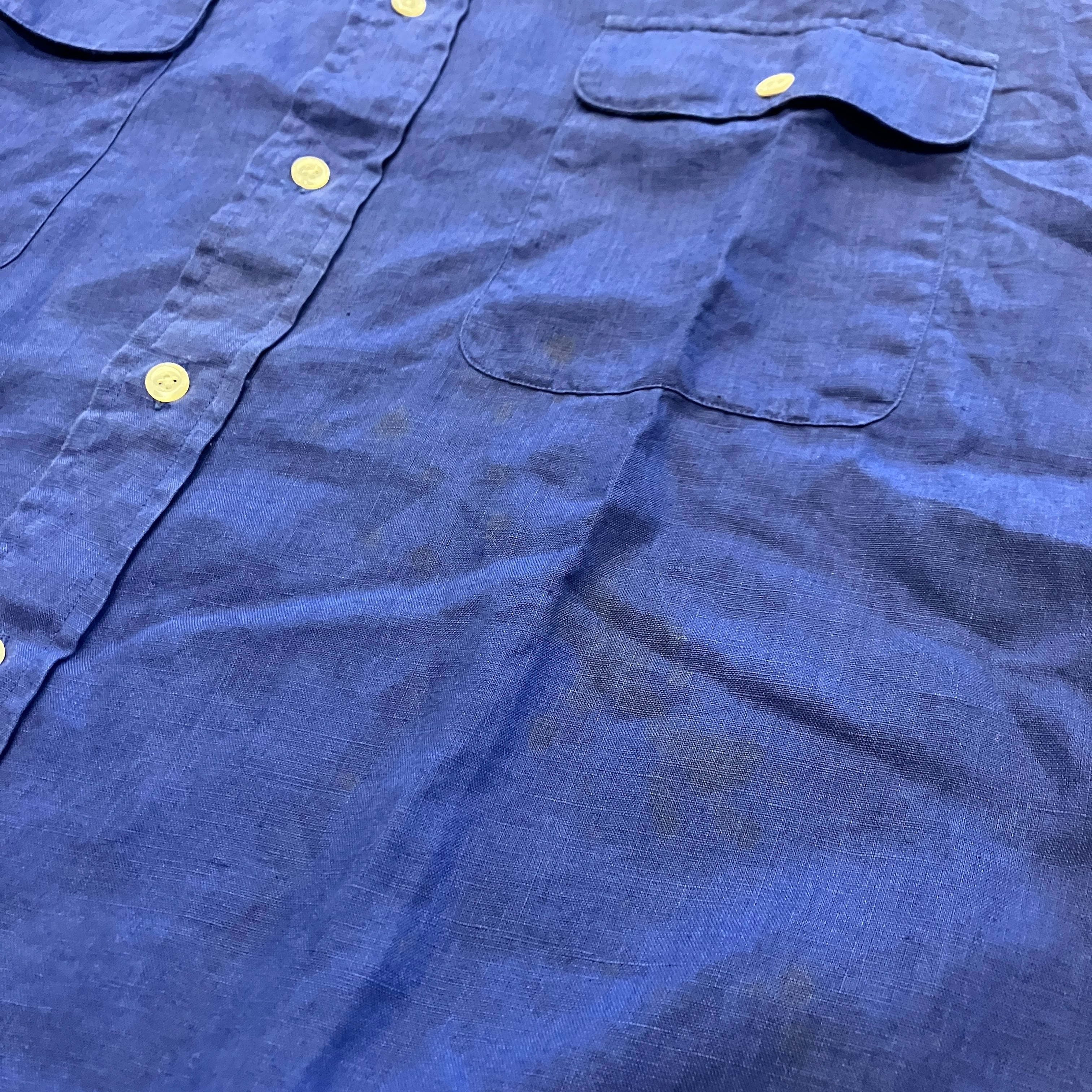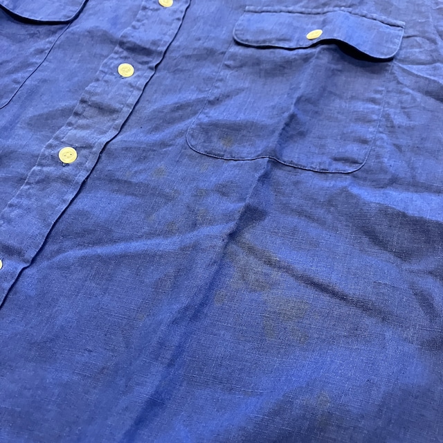 RALPH LAUREN LINEN SHIRT BLUE 1990'S OLD USA製