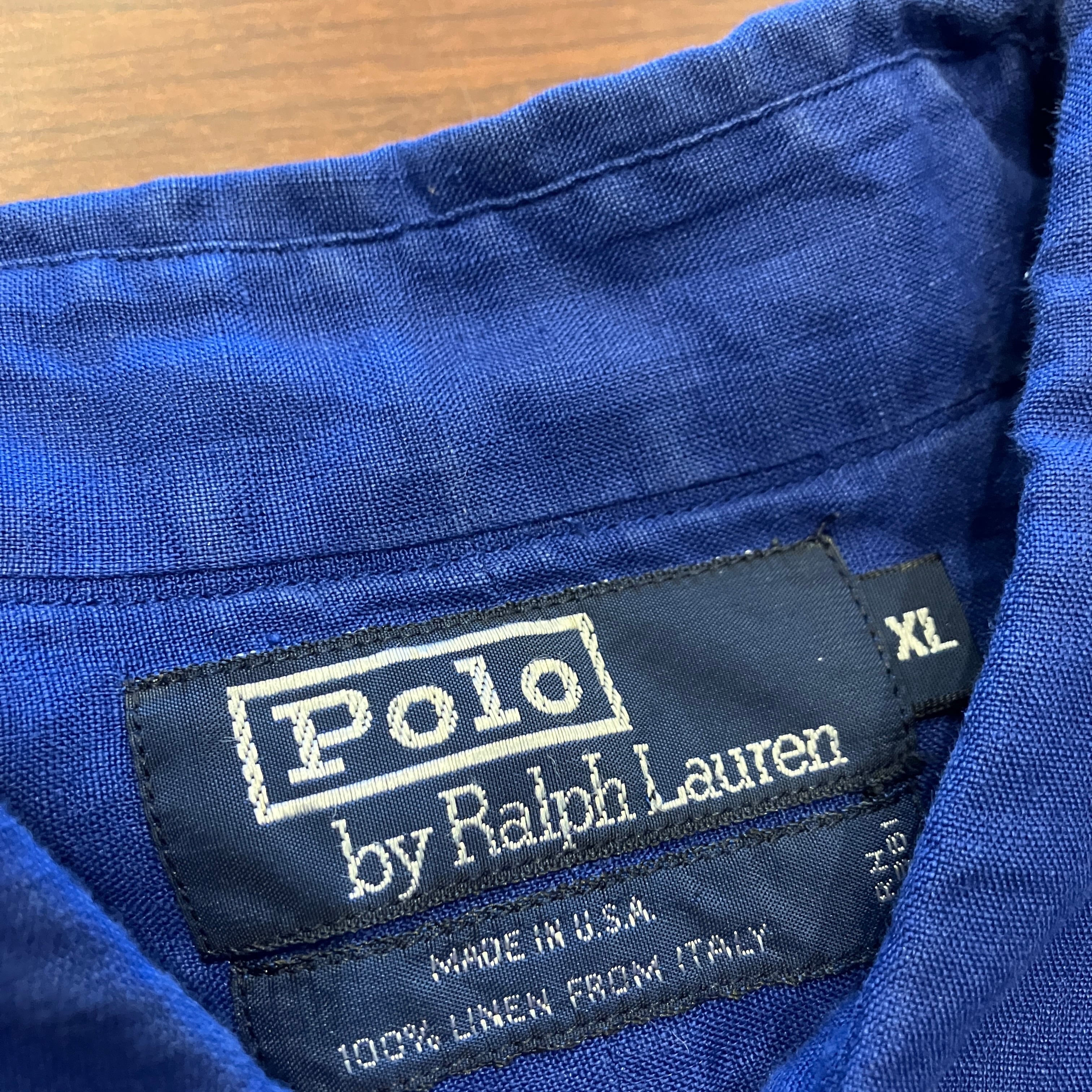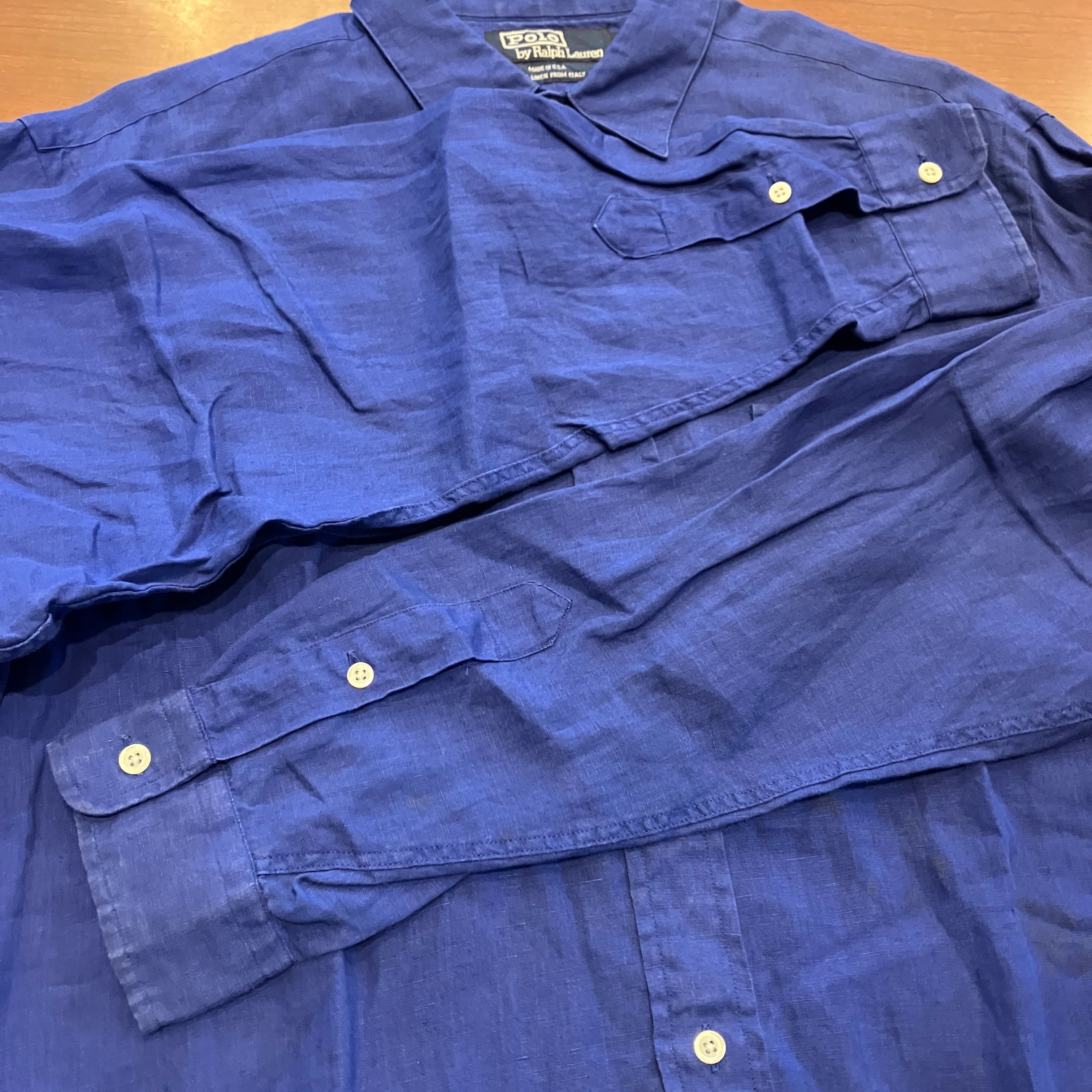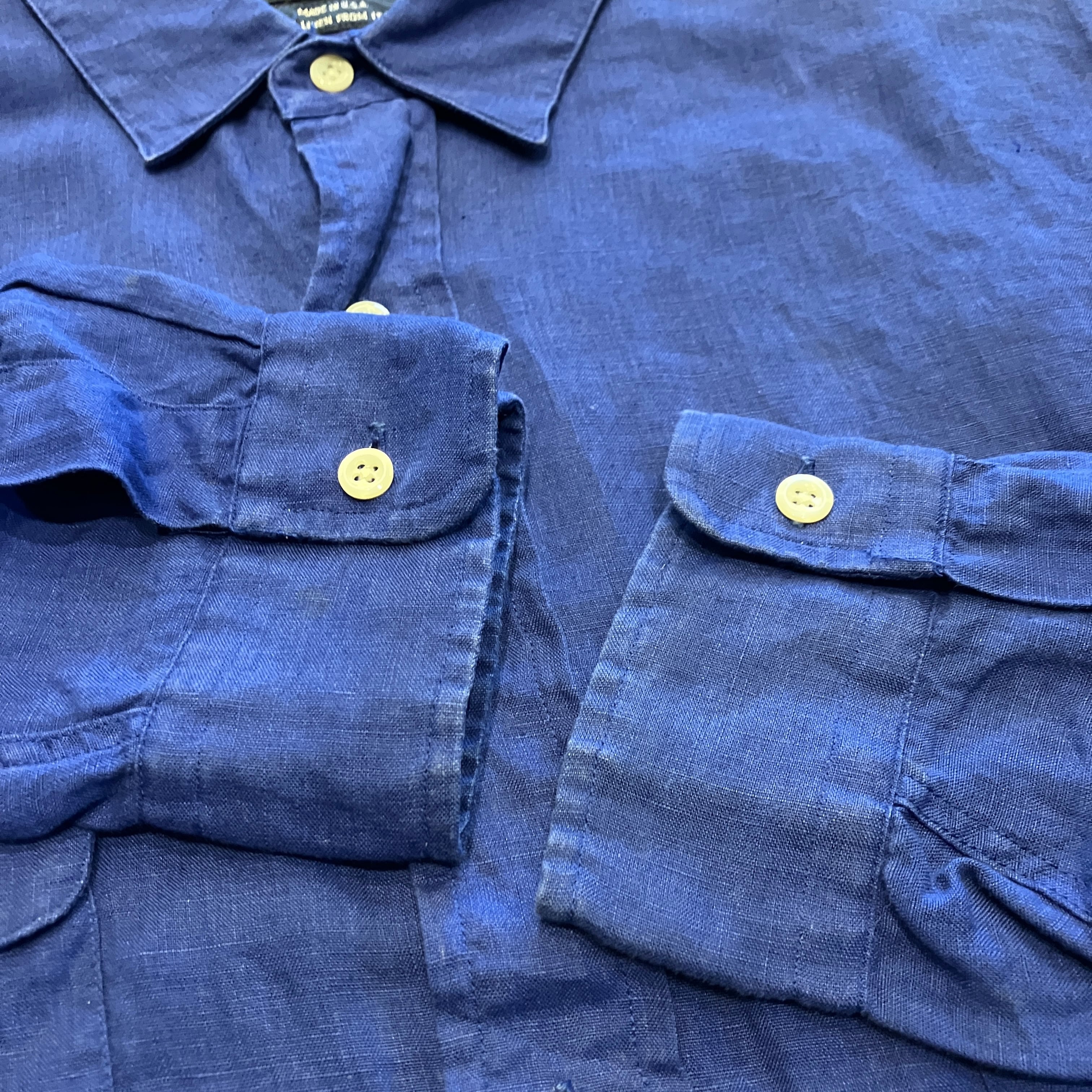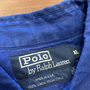 RALPH LAUREN LINEN SHIRT BLUE 1990'S OLD USA製