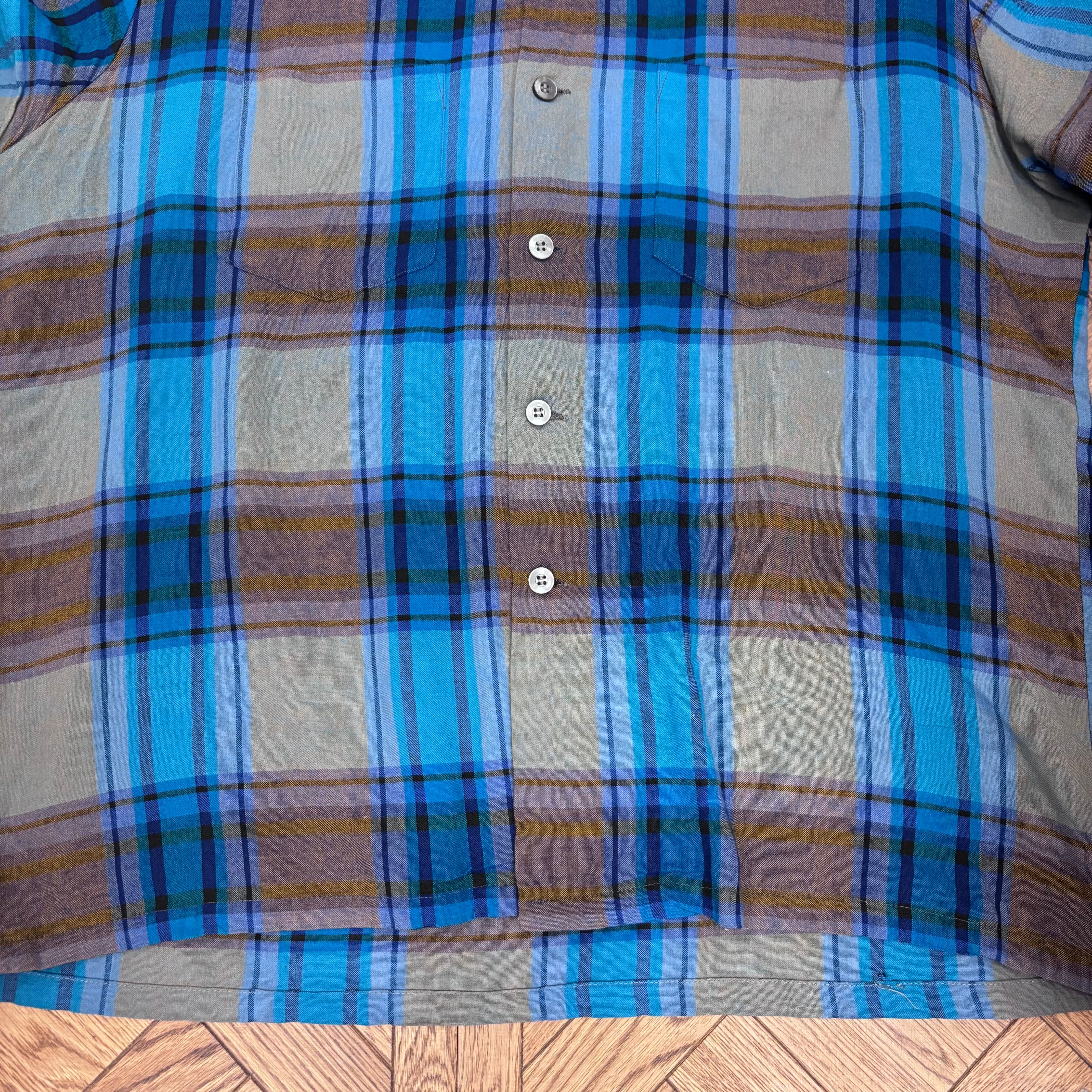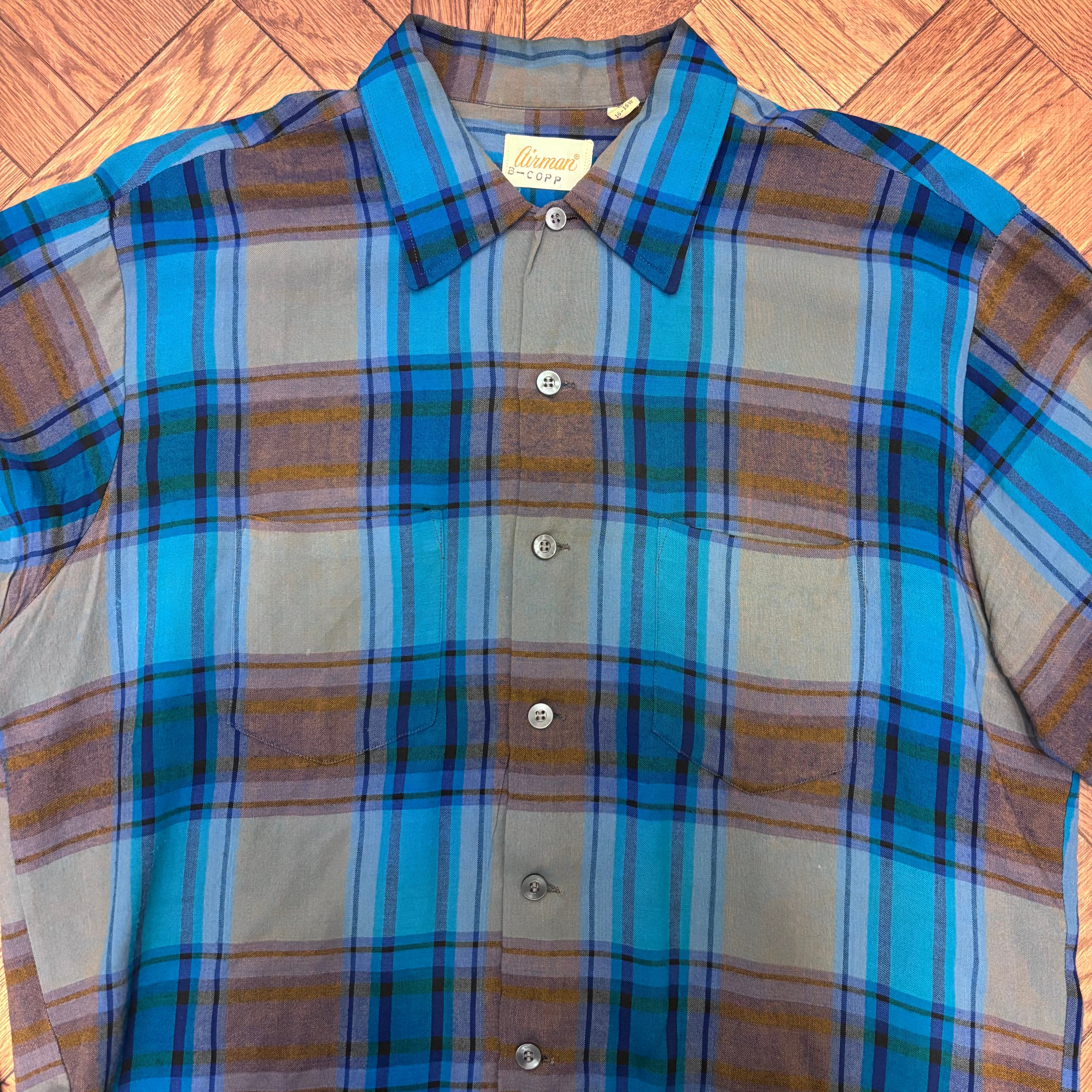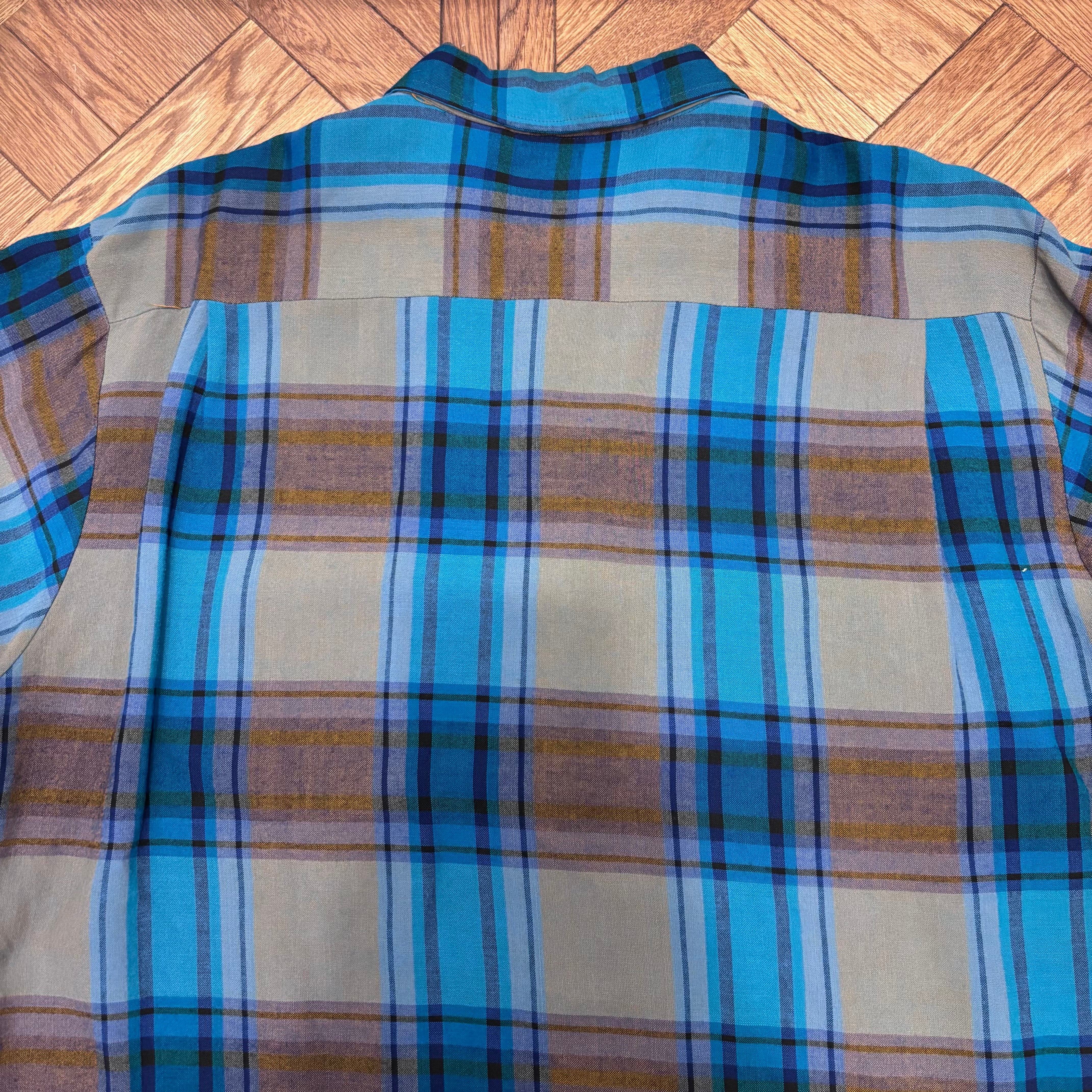 1970S AIRMAN GREEN/BROWN RAYON CHECK SHIRT