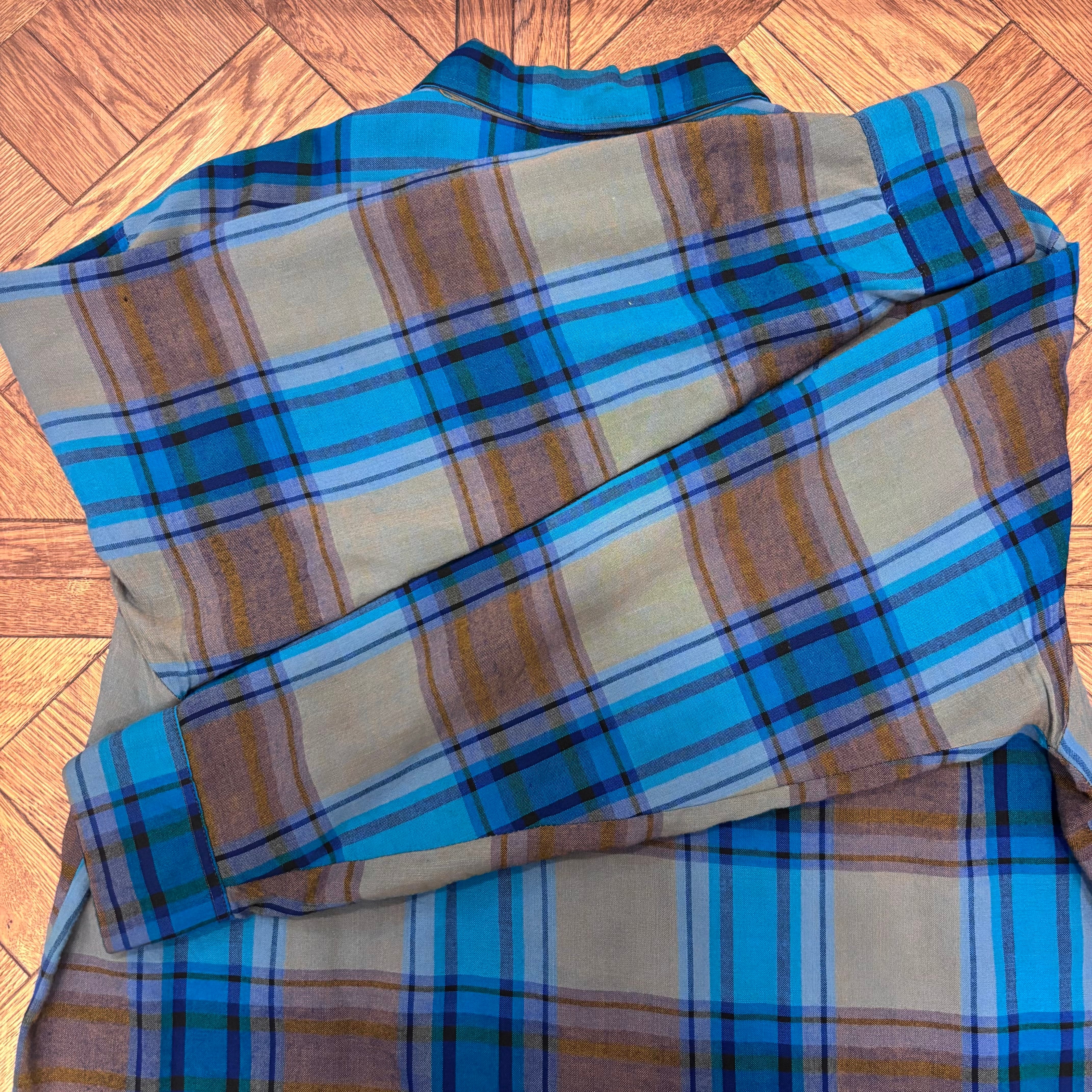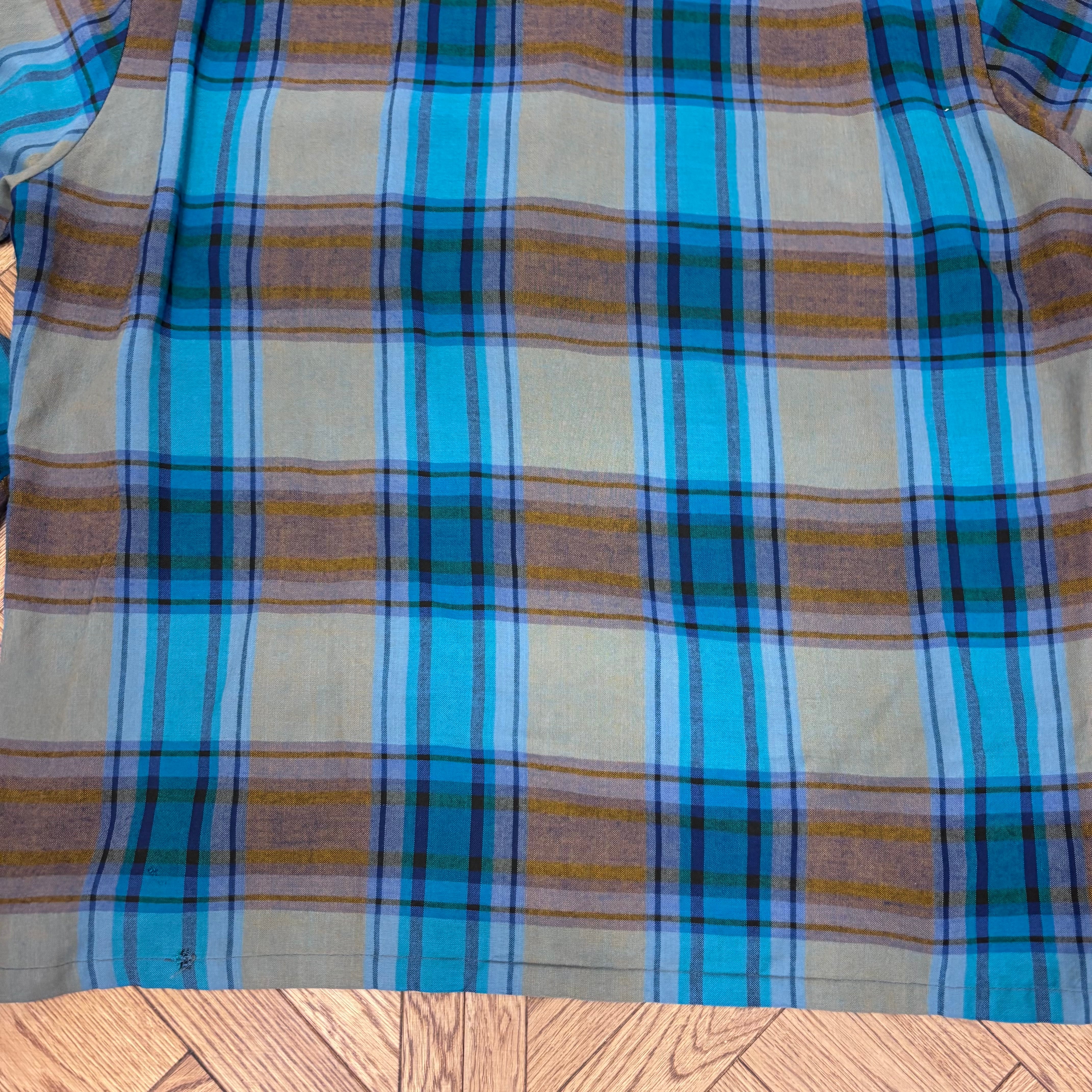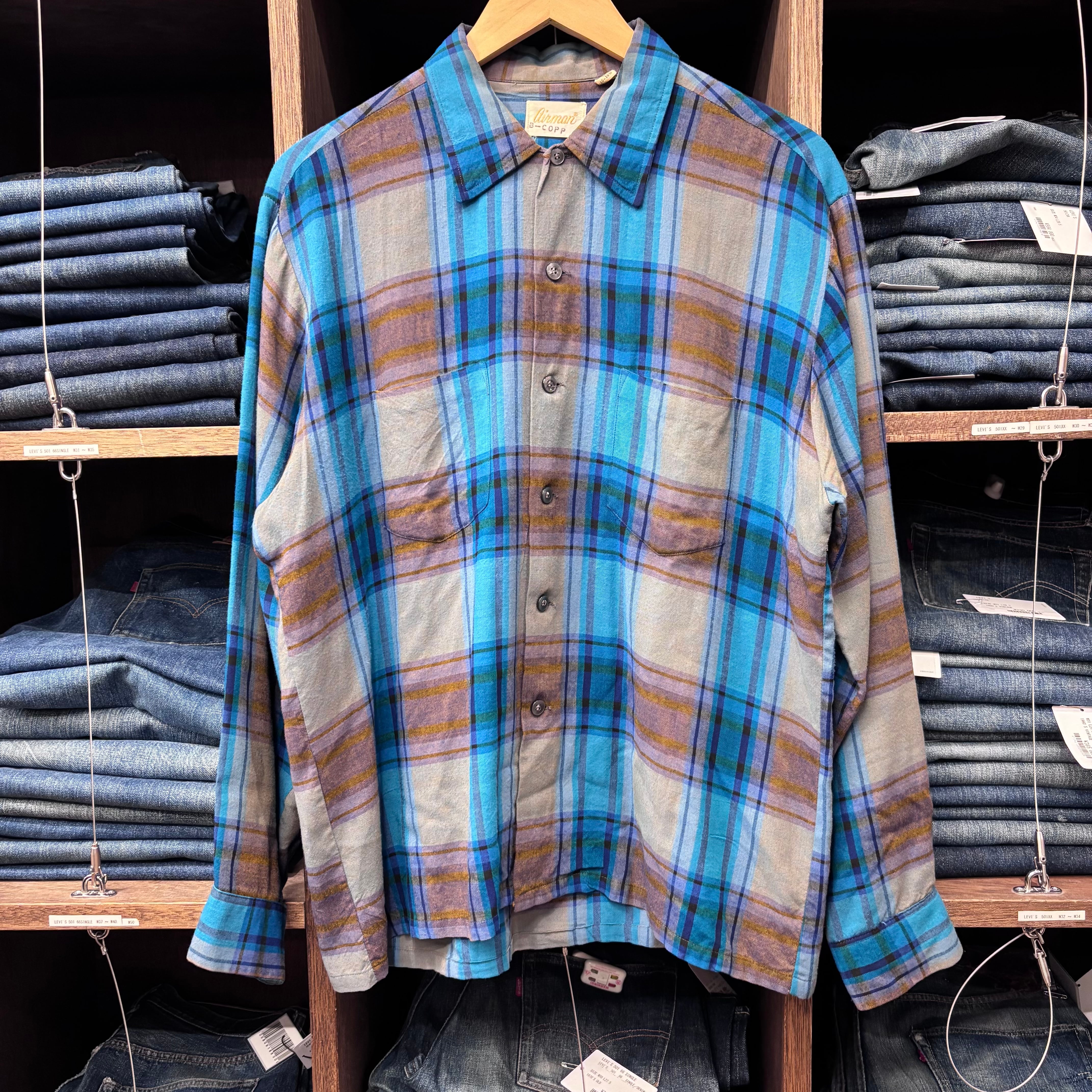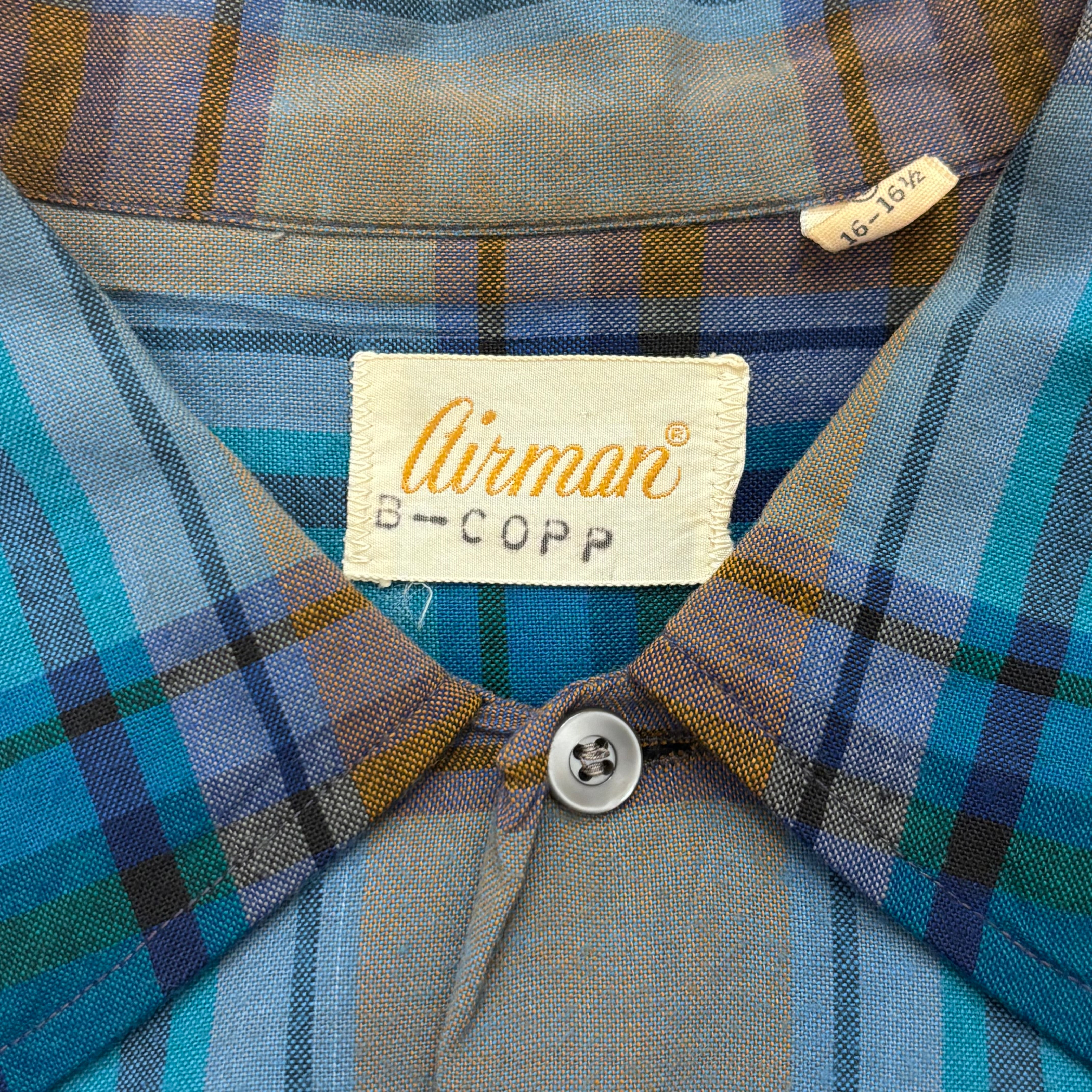 1970S AIRMAN GREEN/BROWN RAYON CHECK SHIRT
