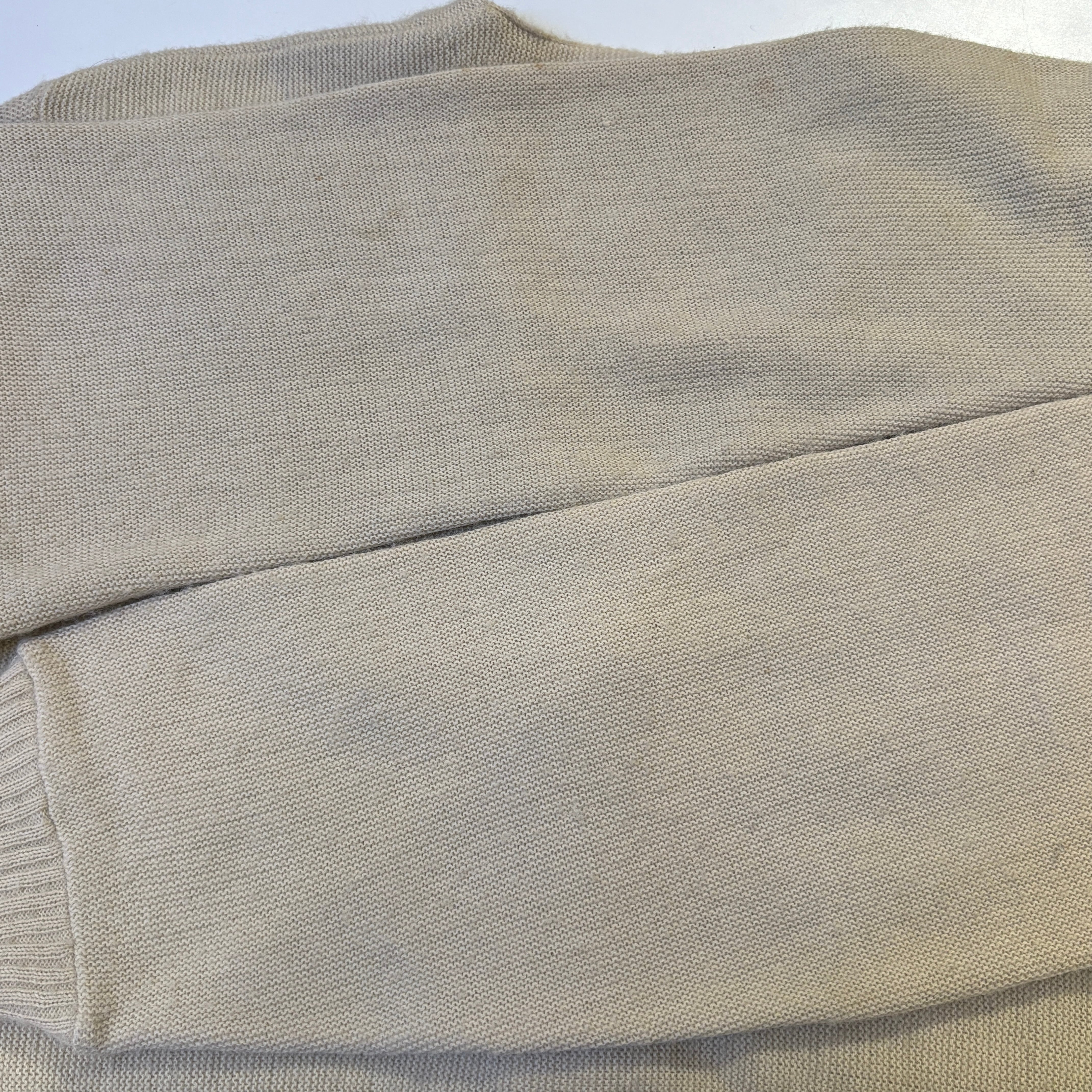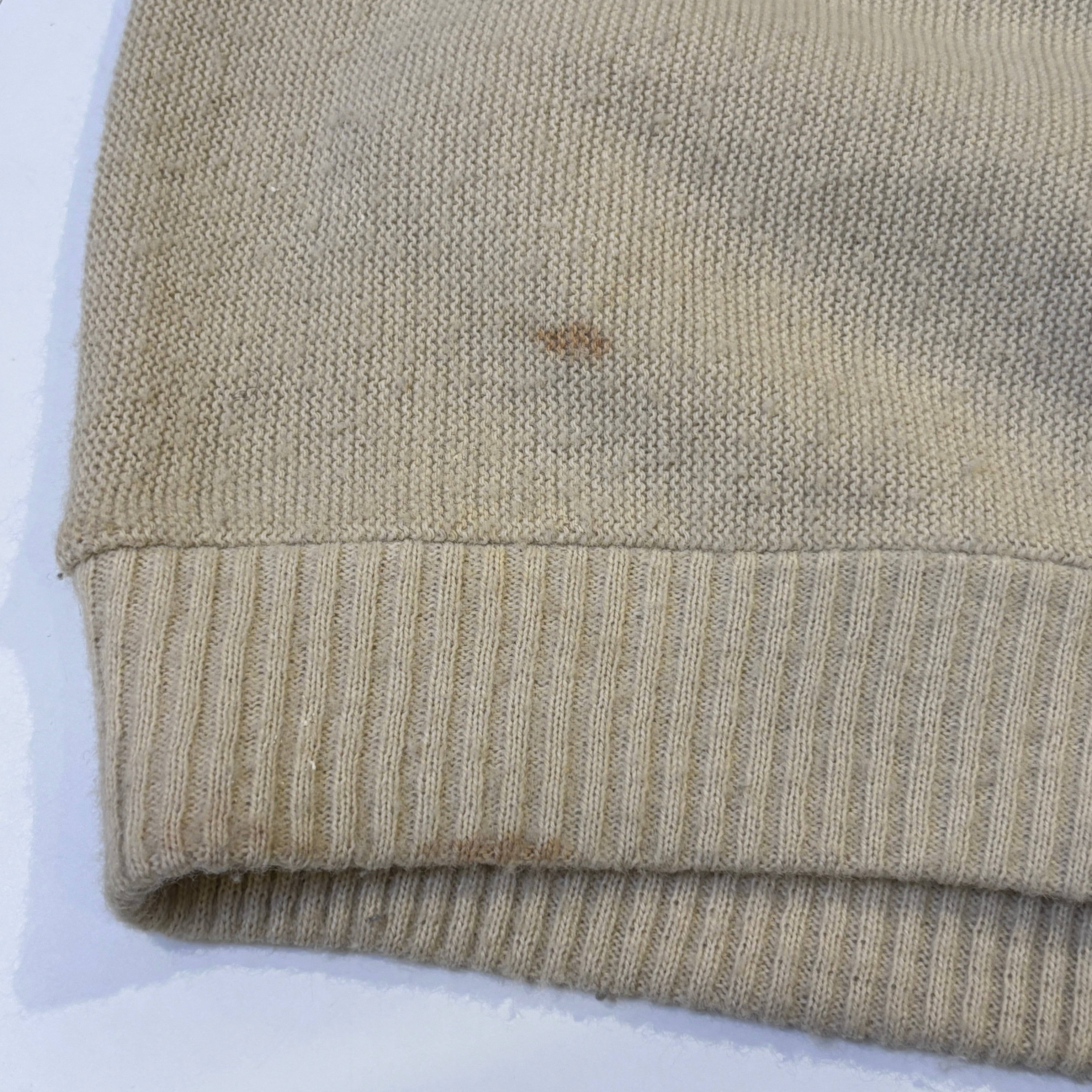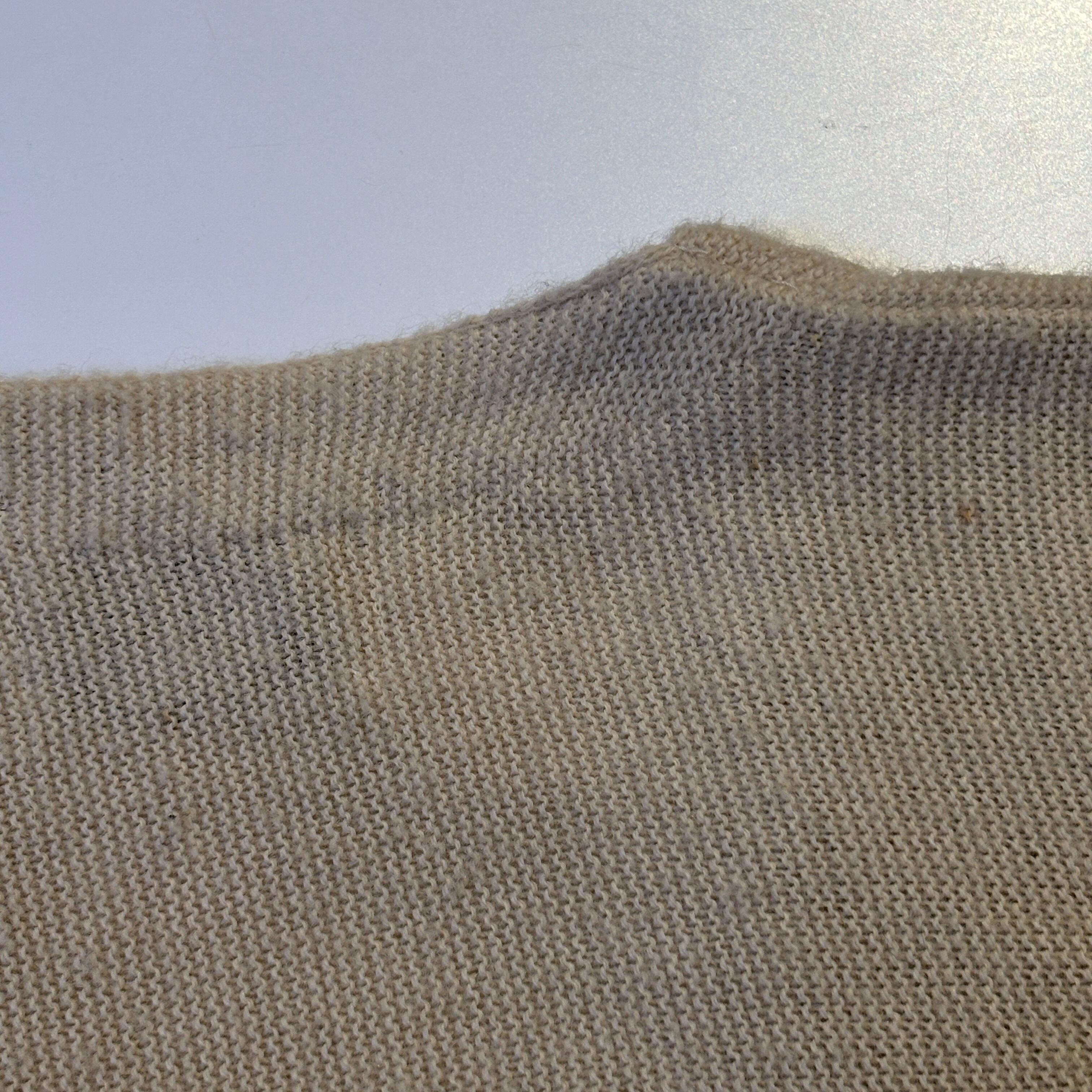 全体的に汚れやシミ、毛玉、タグ片側糸ハズレなど着用感ございますが、古着慣れされた方でしたら問題なく着用可能な状態です。