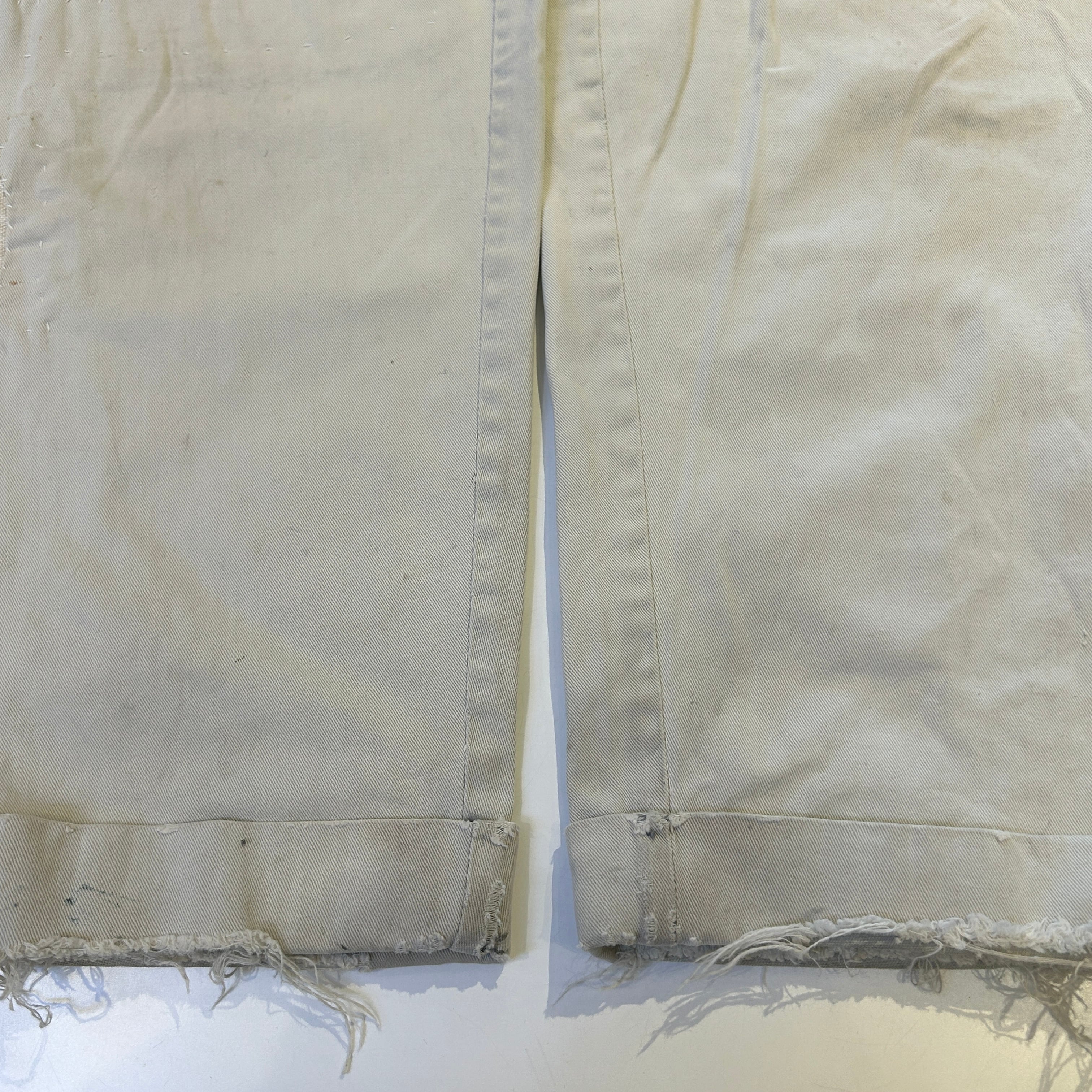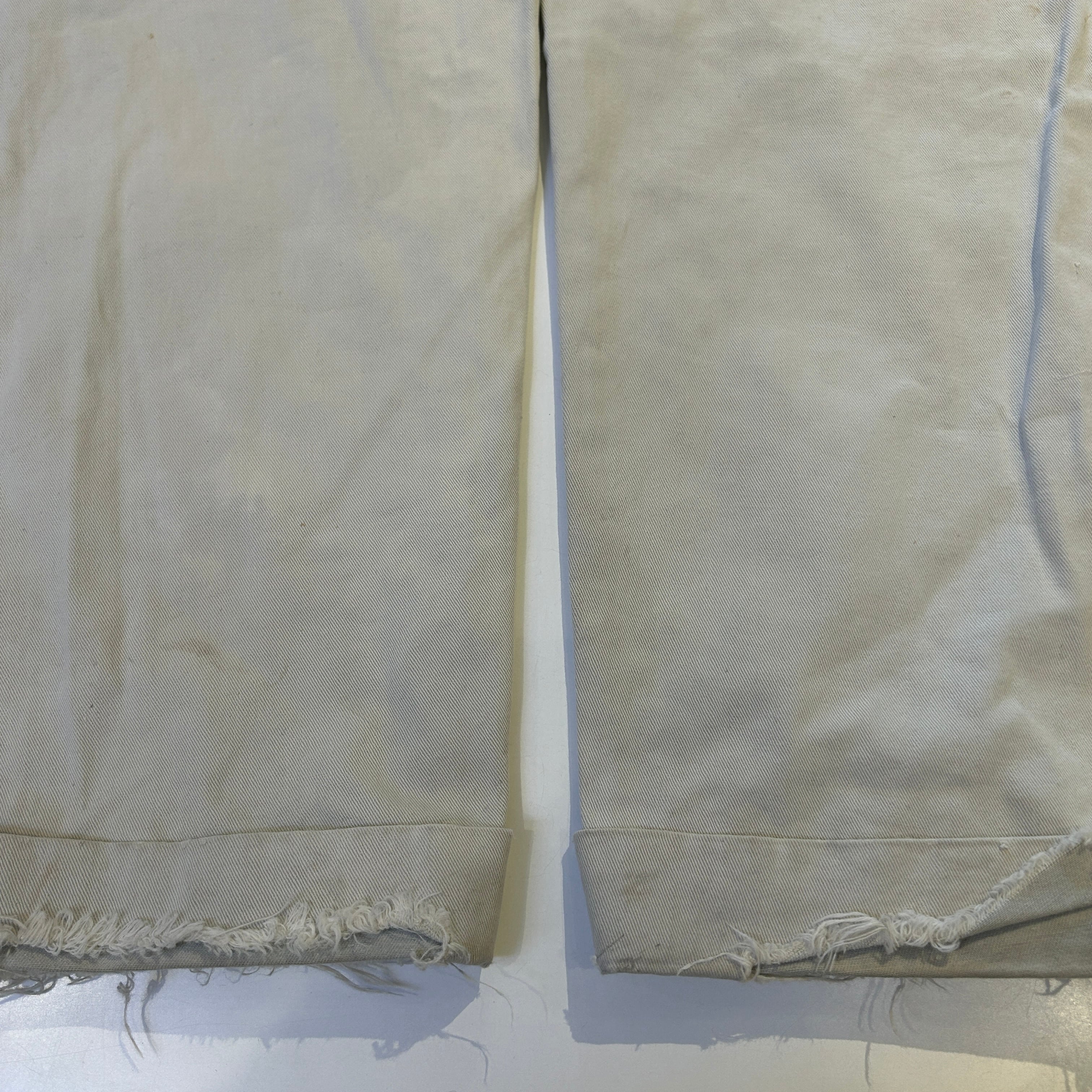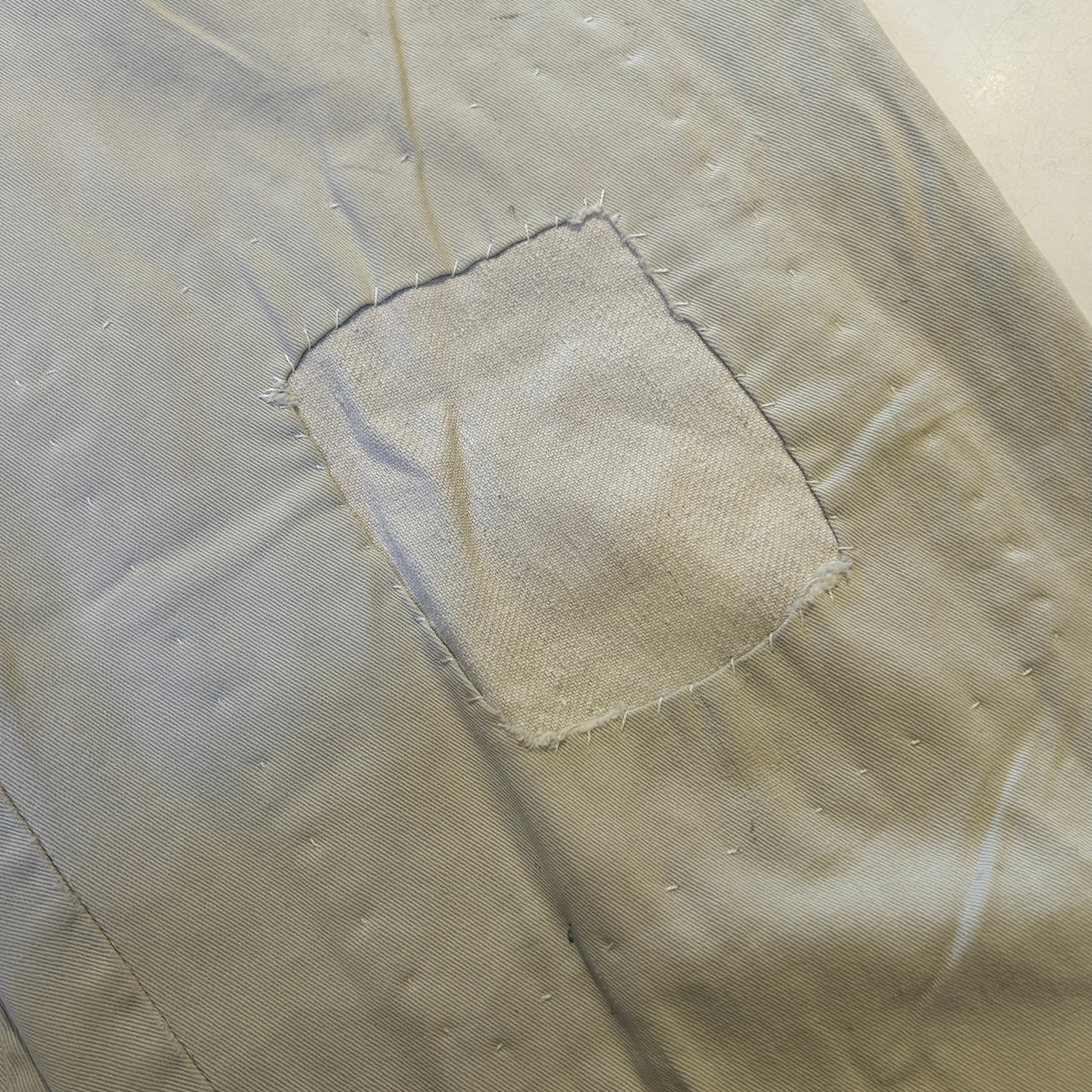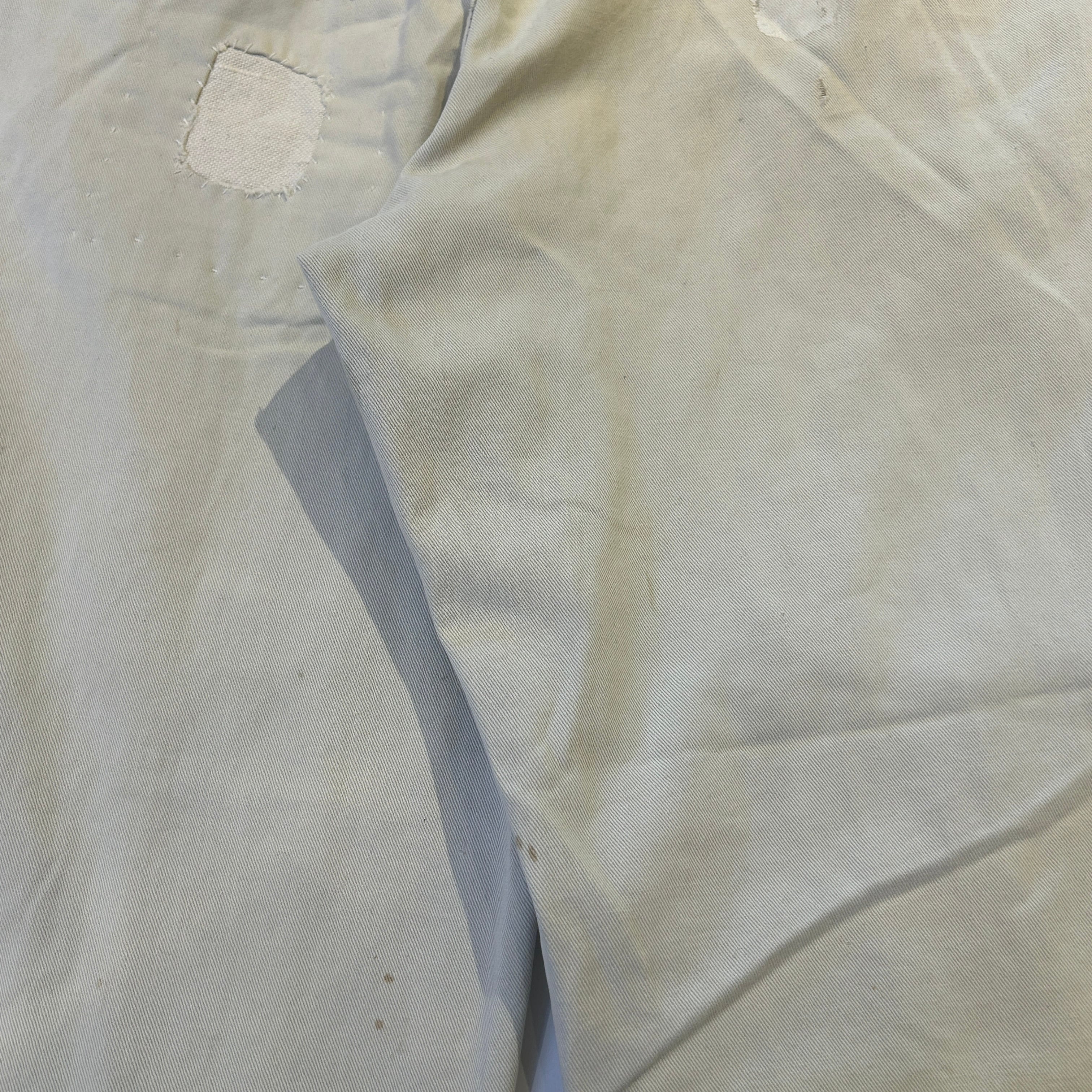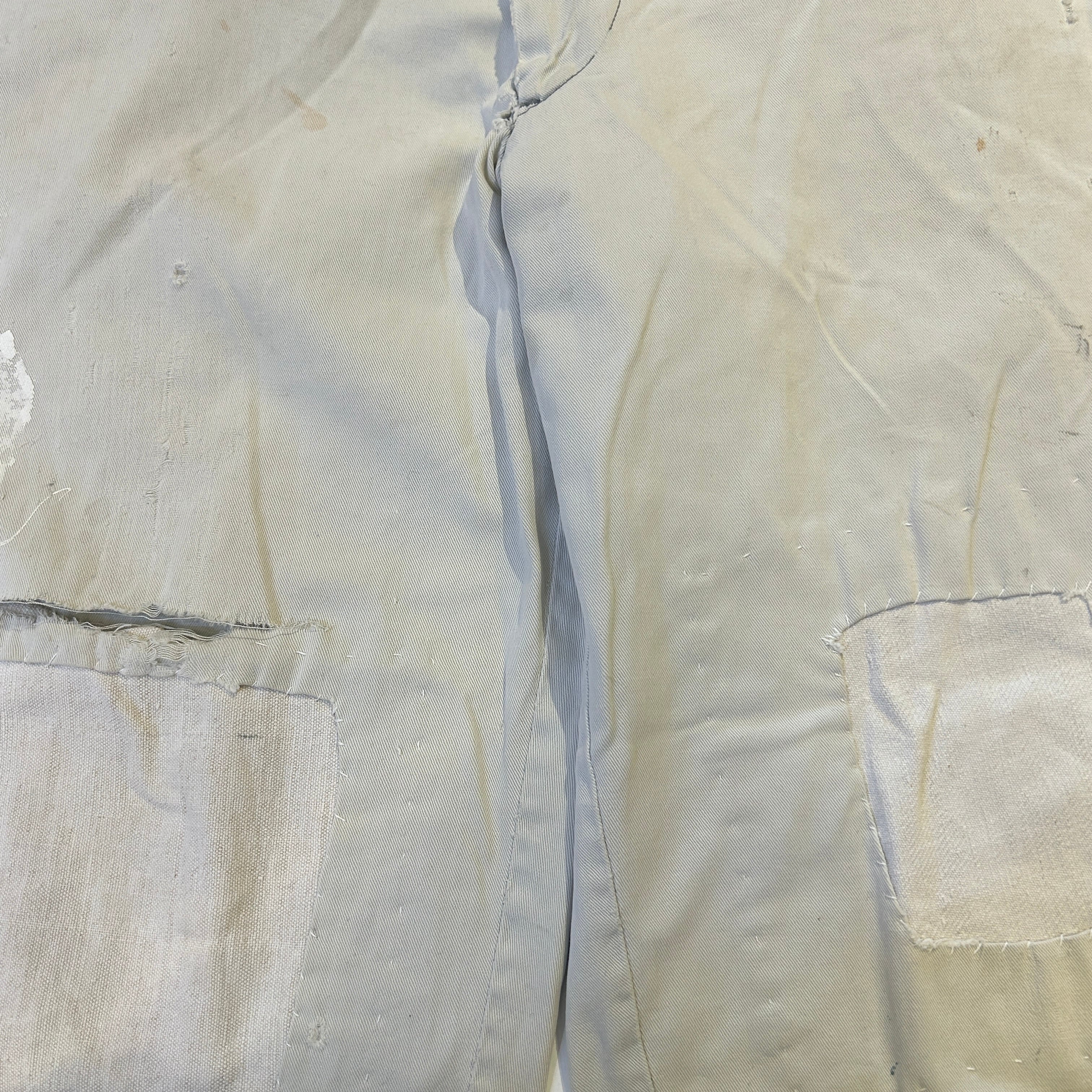 画像の様に全体的にダメージ、リペア、汚れがございます。古着慣れされた方にオススメの商品です。