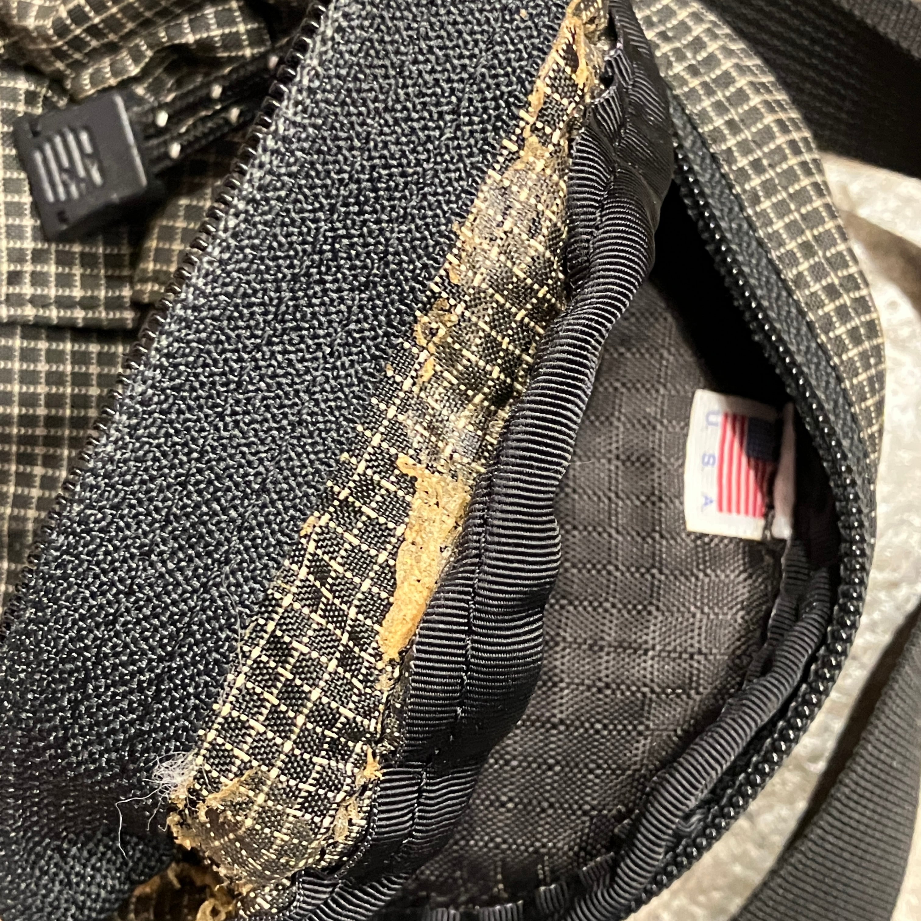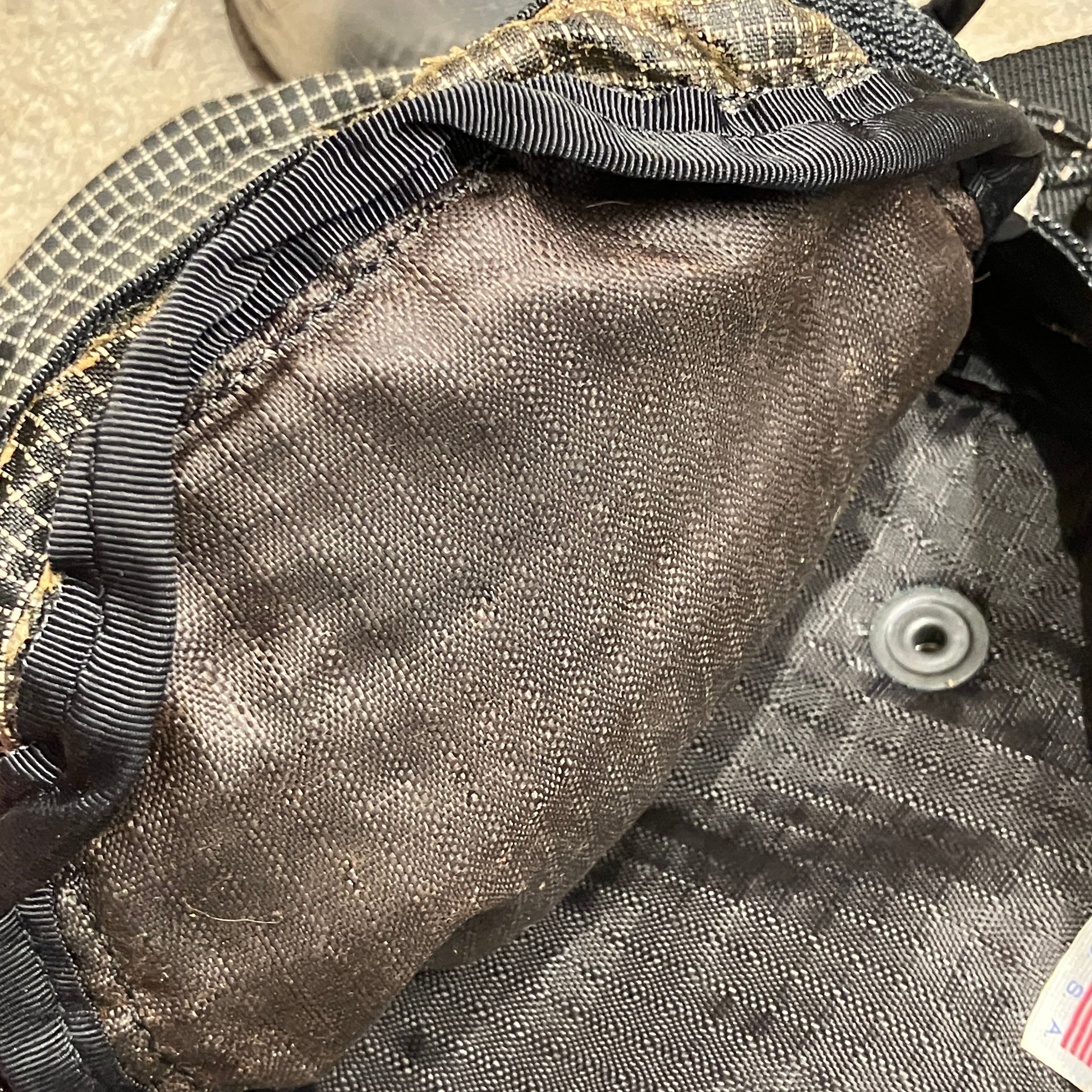 ポケットの内側部分に劣化、変色、若干のべたつき、がみられます。