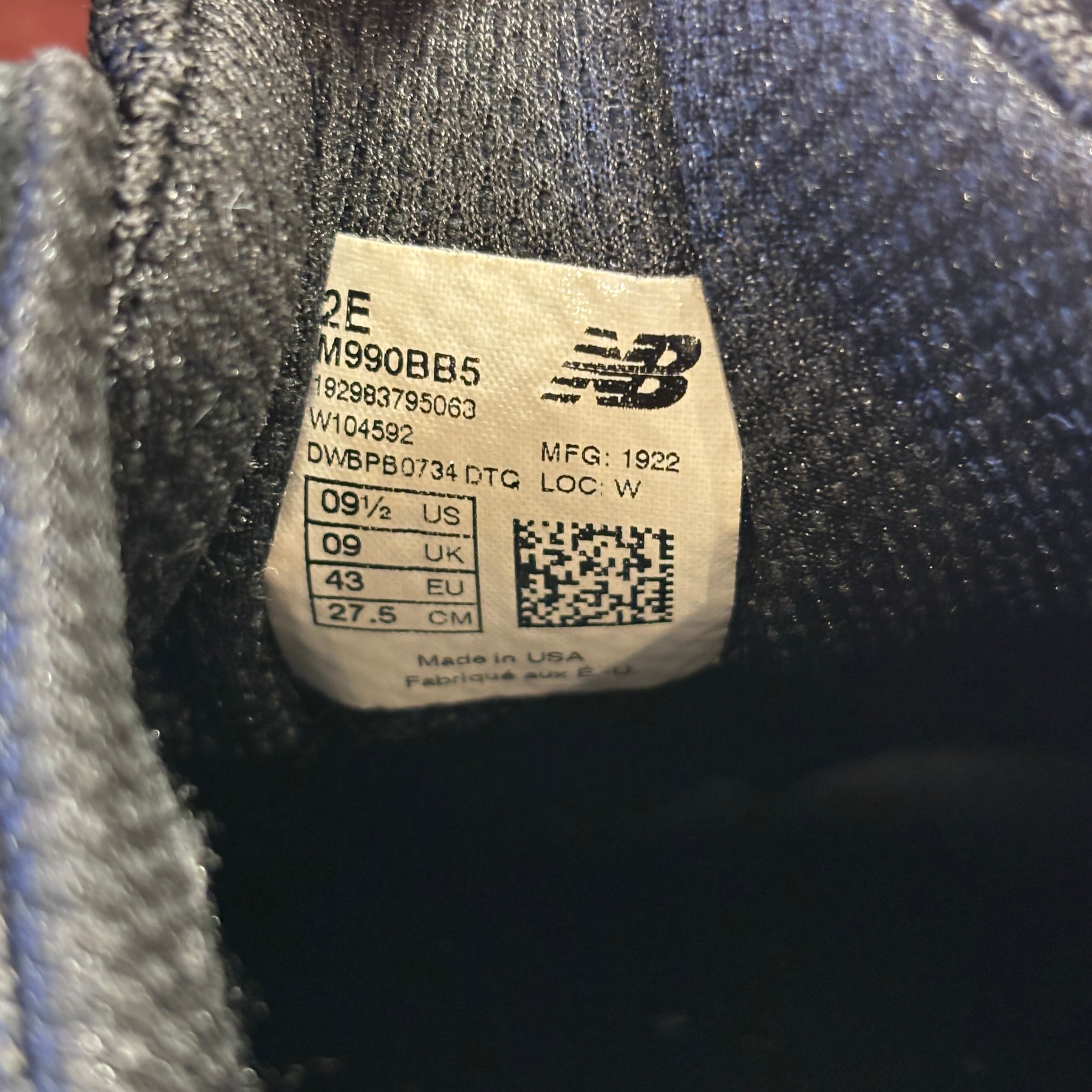 NEW BALANCE 990 V5 TRIPLE BLACK SIZE 9 1/2