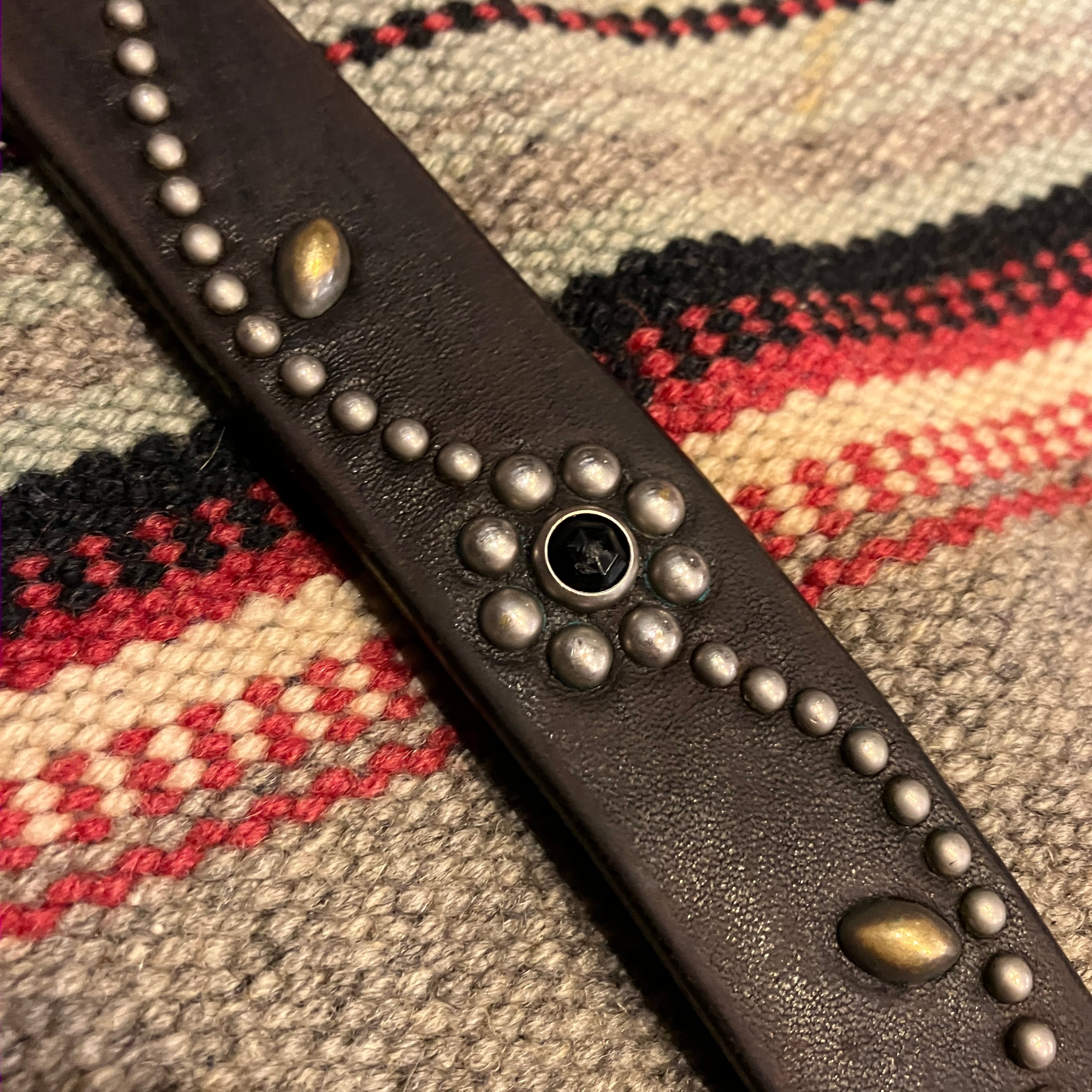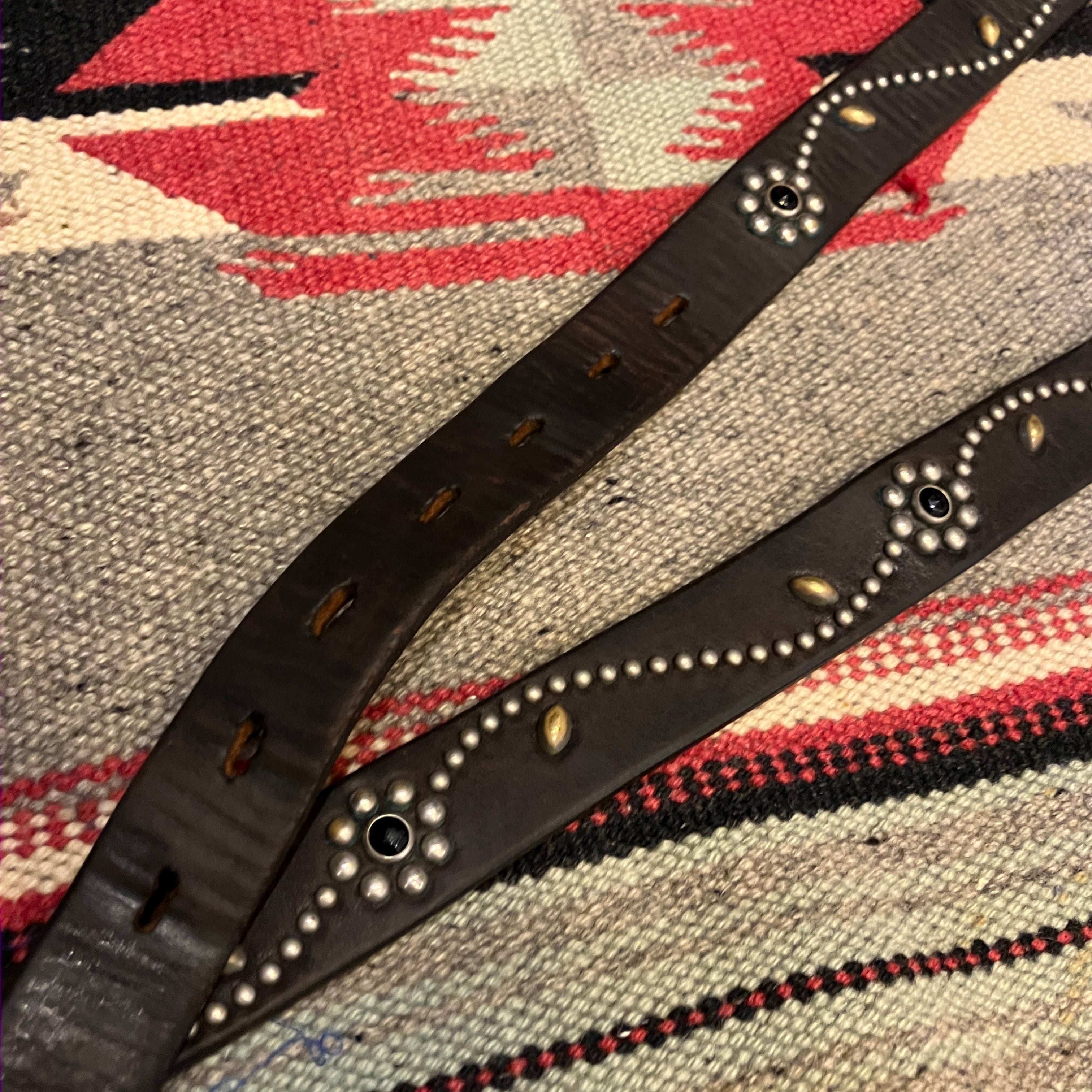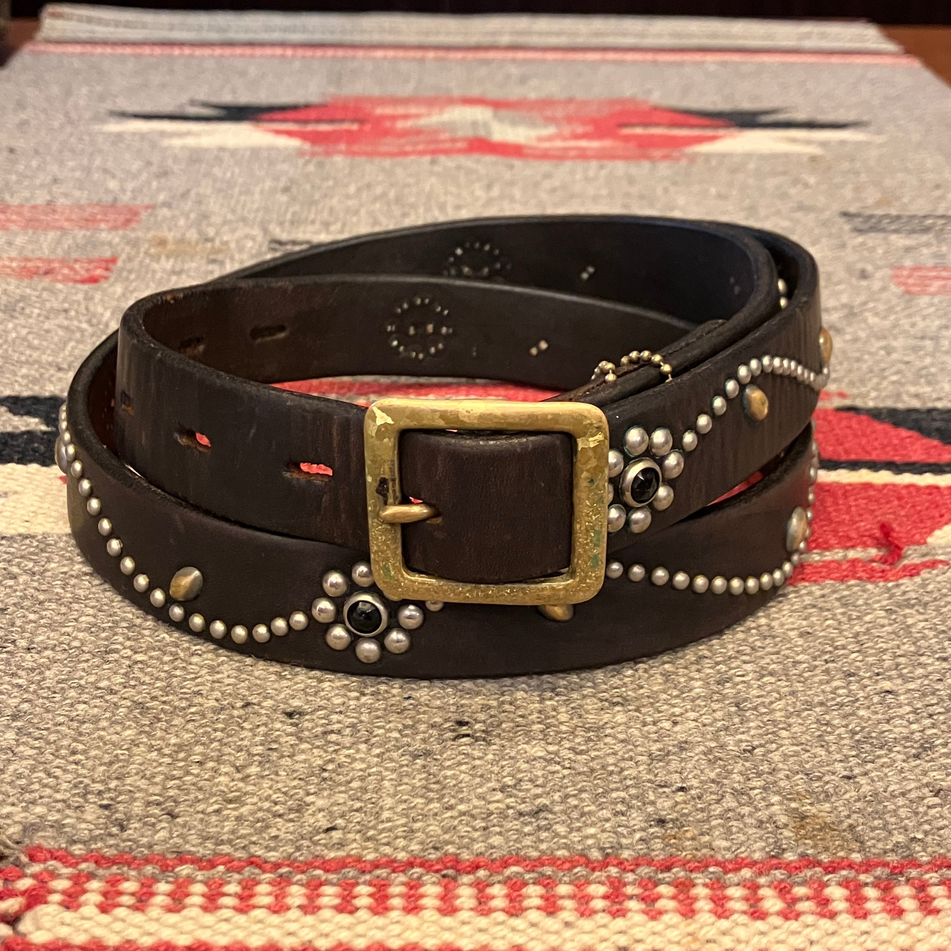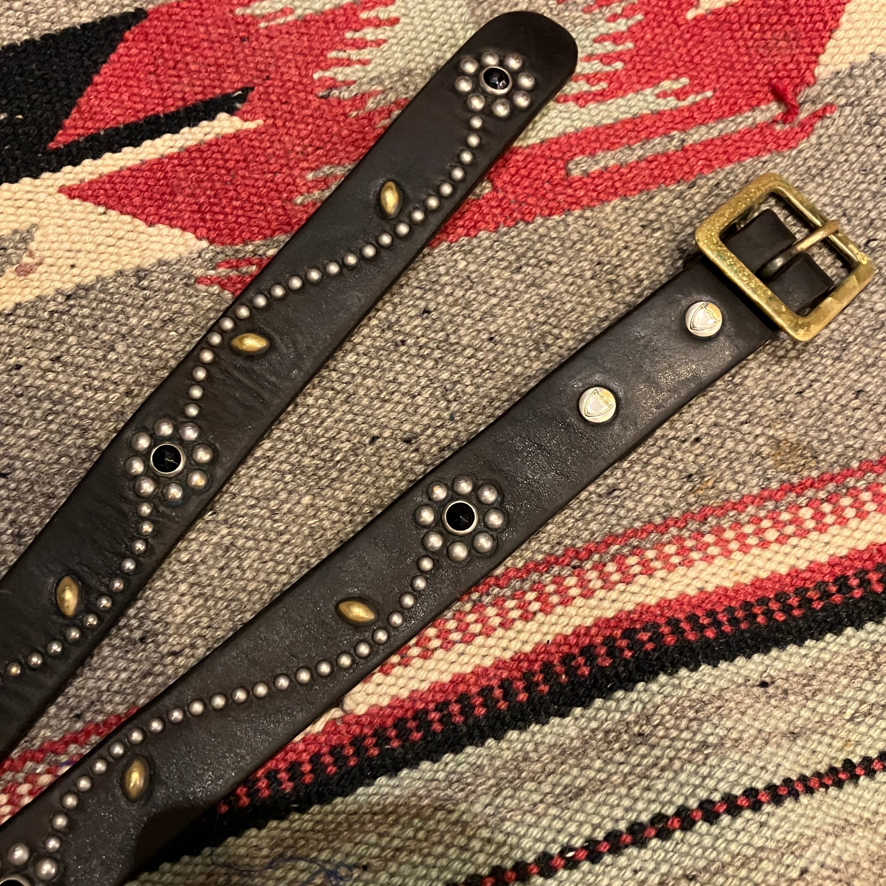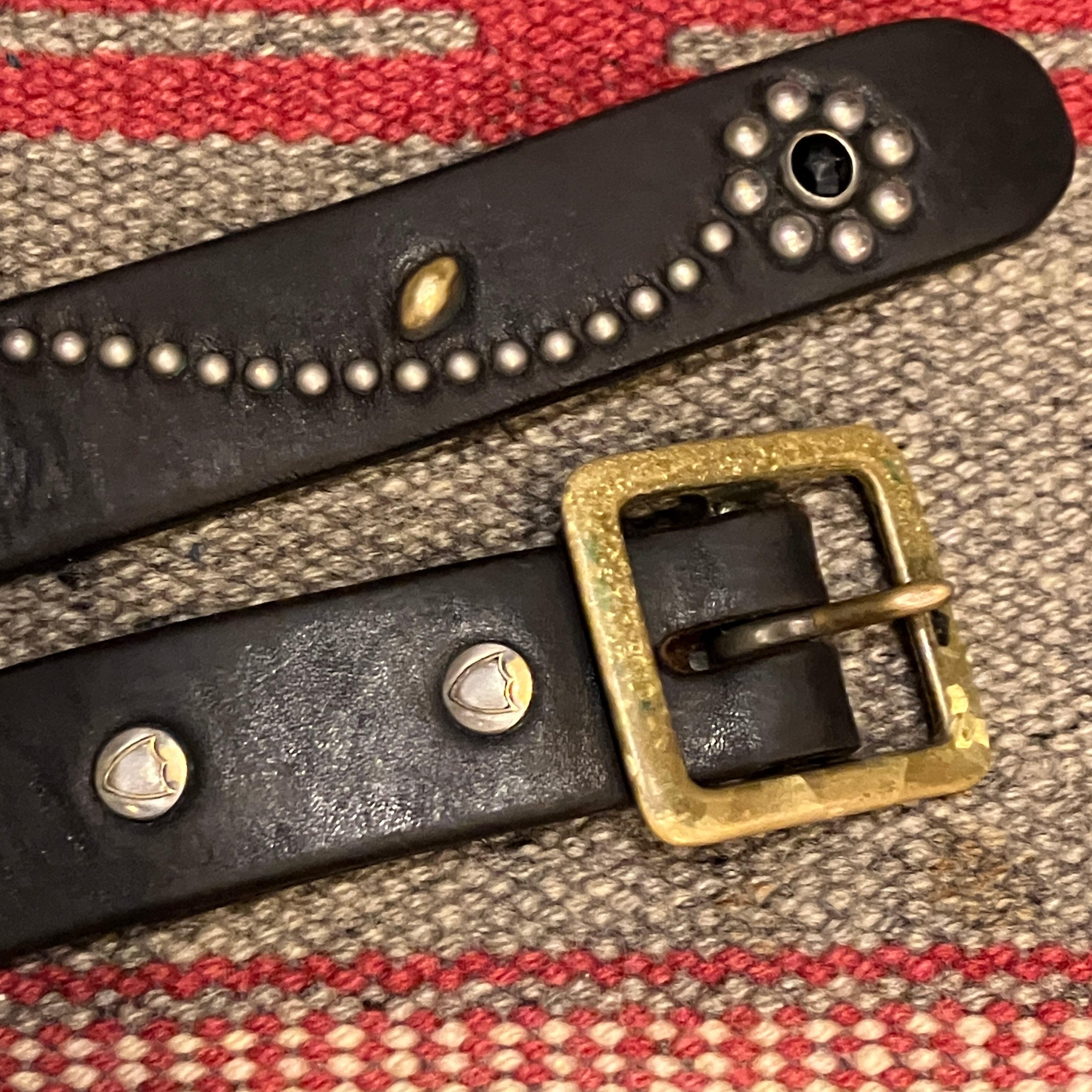 HTC FLOWER STUDS NARROW LEATHER BELT
