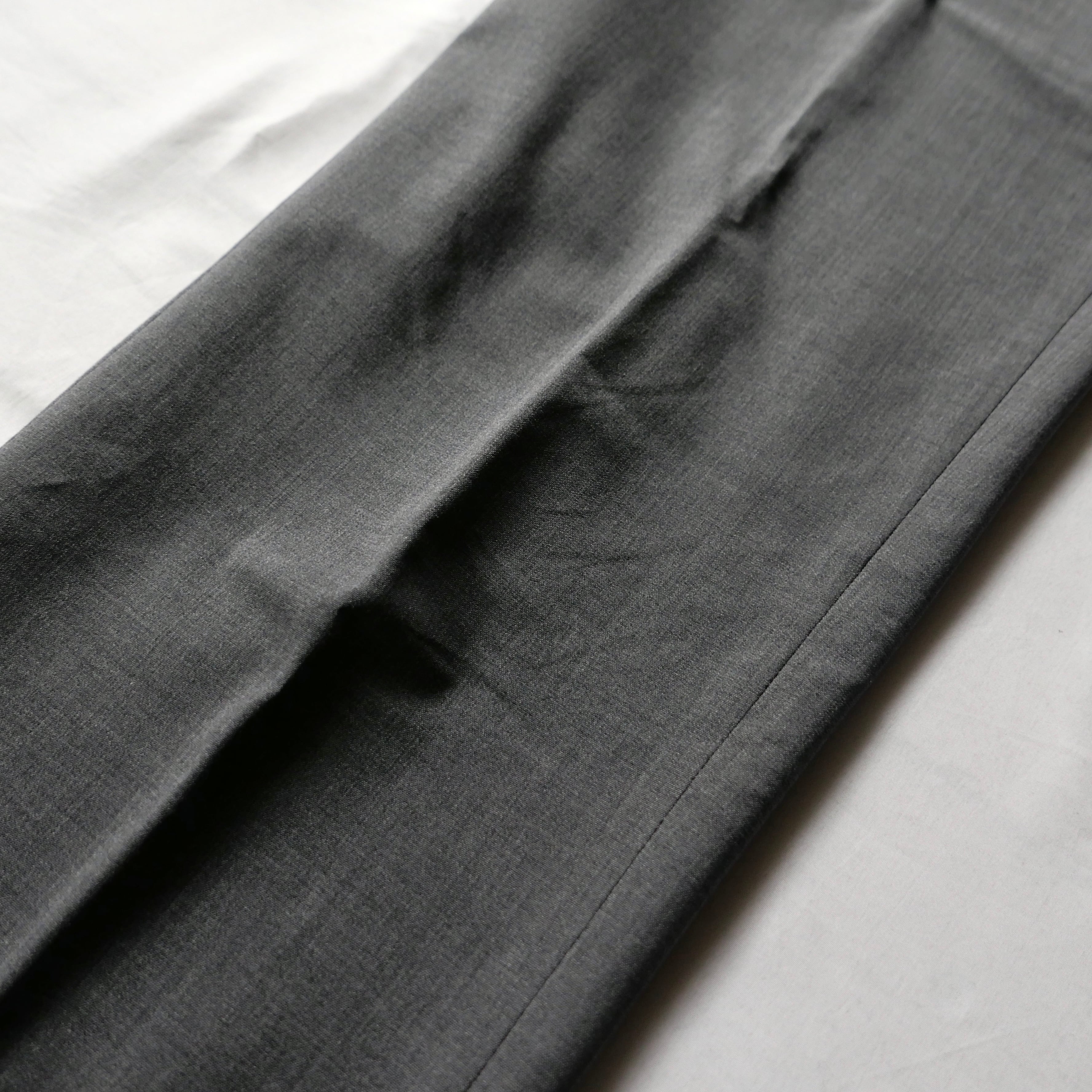 これまで紹介させていただいた個体と比べると、細みのシルエットになりますが、伸縮素材のエラスティンが配合されているので、動きやすく快適な穿き心地のスラックスです。