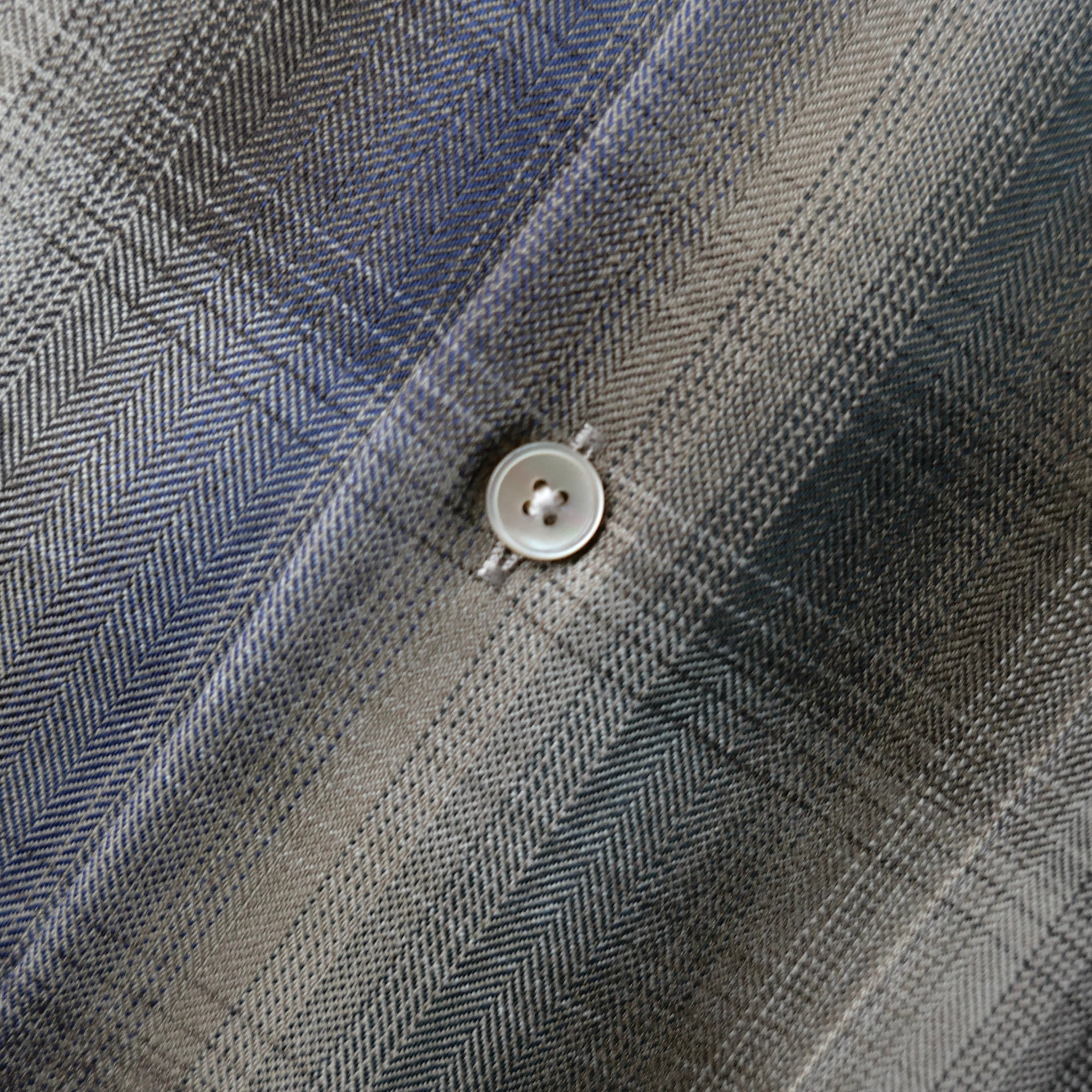 Super120'sの超極細番手ウール梳毛糸を染め分けて撚り杢糸にして、高密度に織り上げた生地は滑らかな肌触りと光沢が特徴。