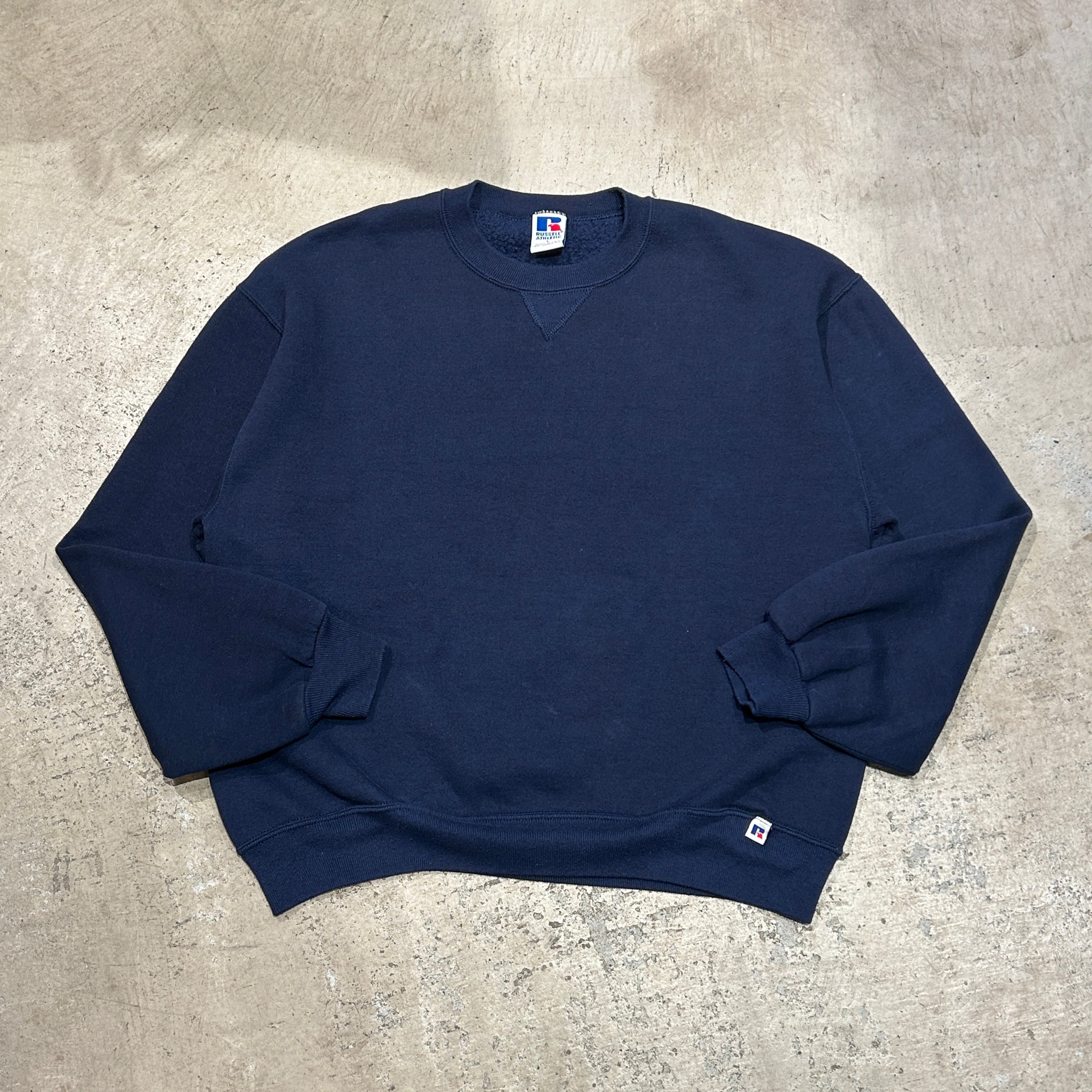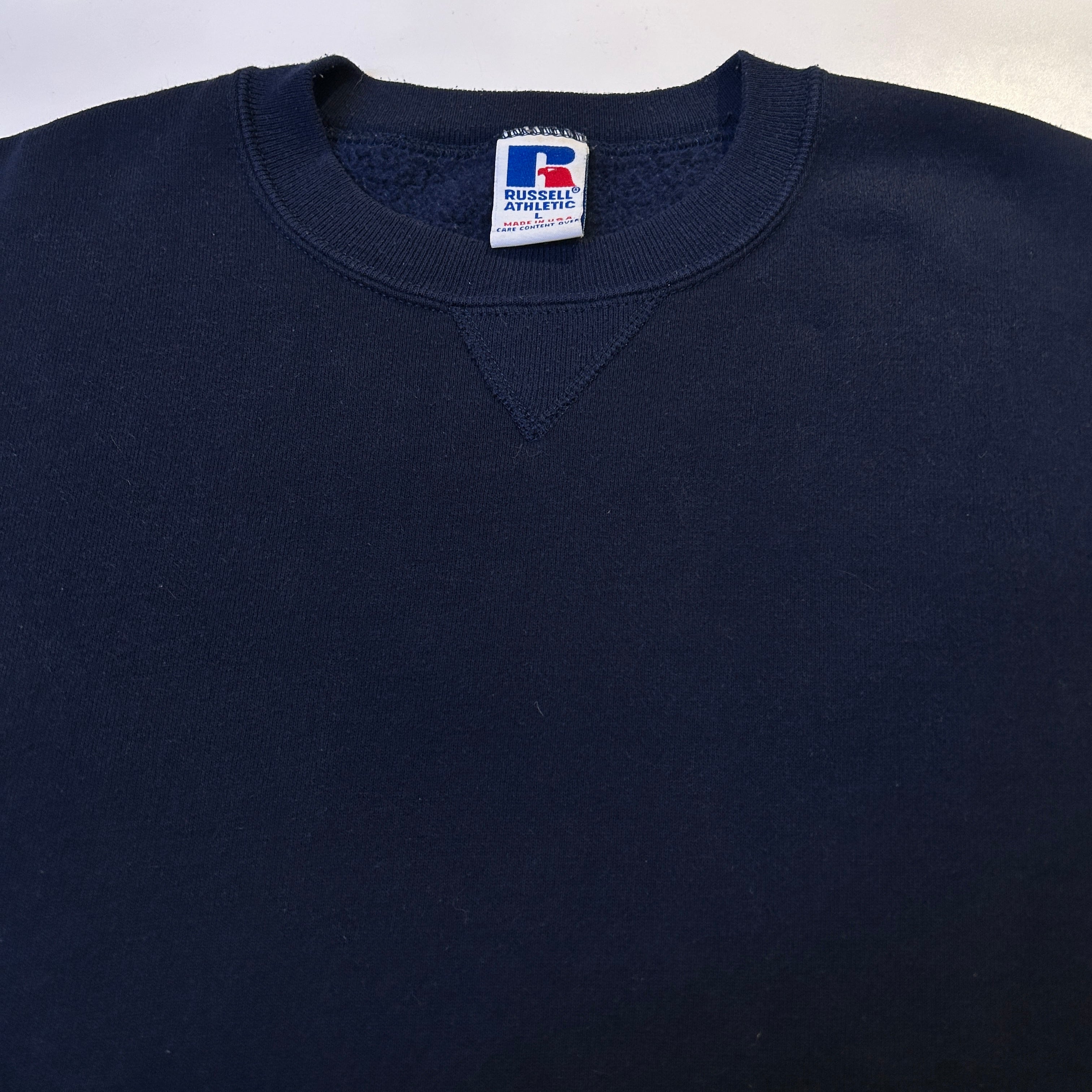 1990s RUSSELL NAVY SOLID SWEAT SHIRT