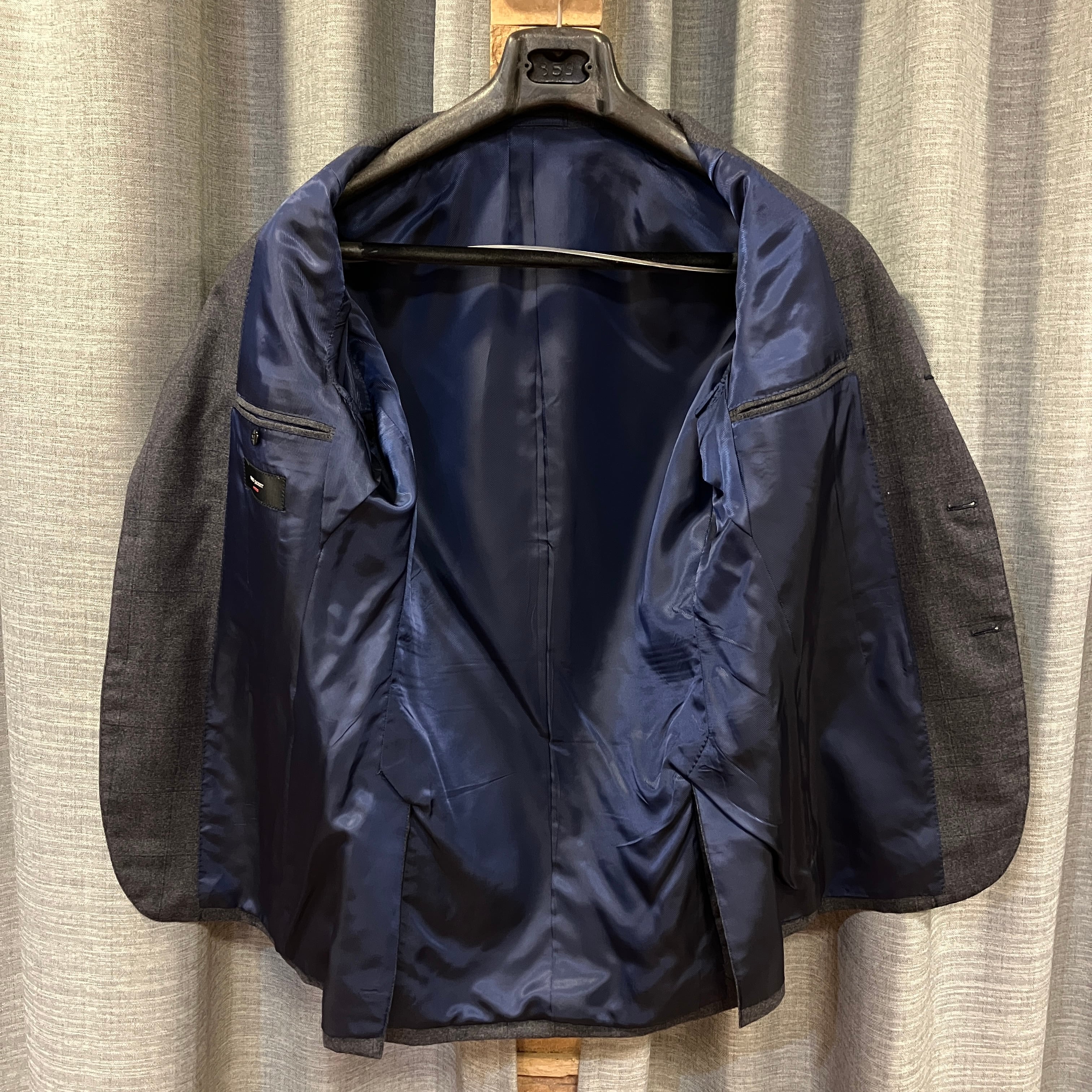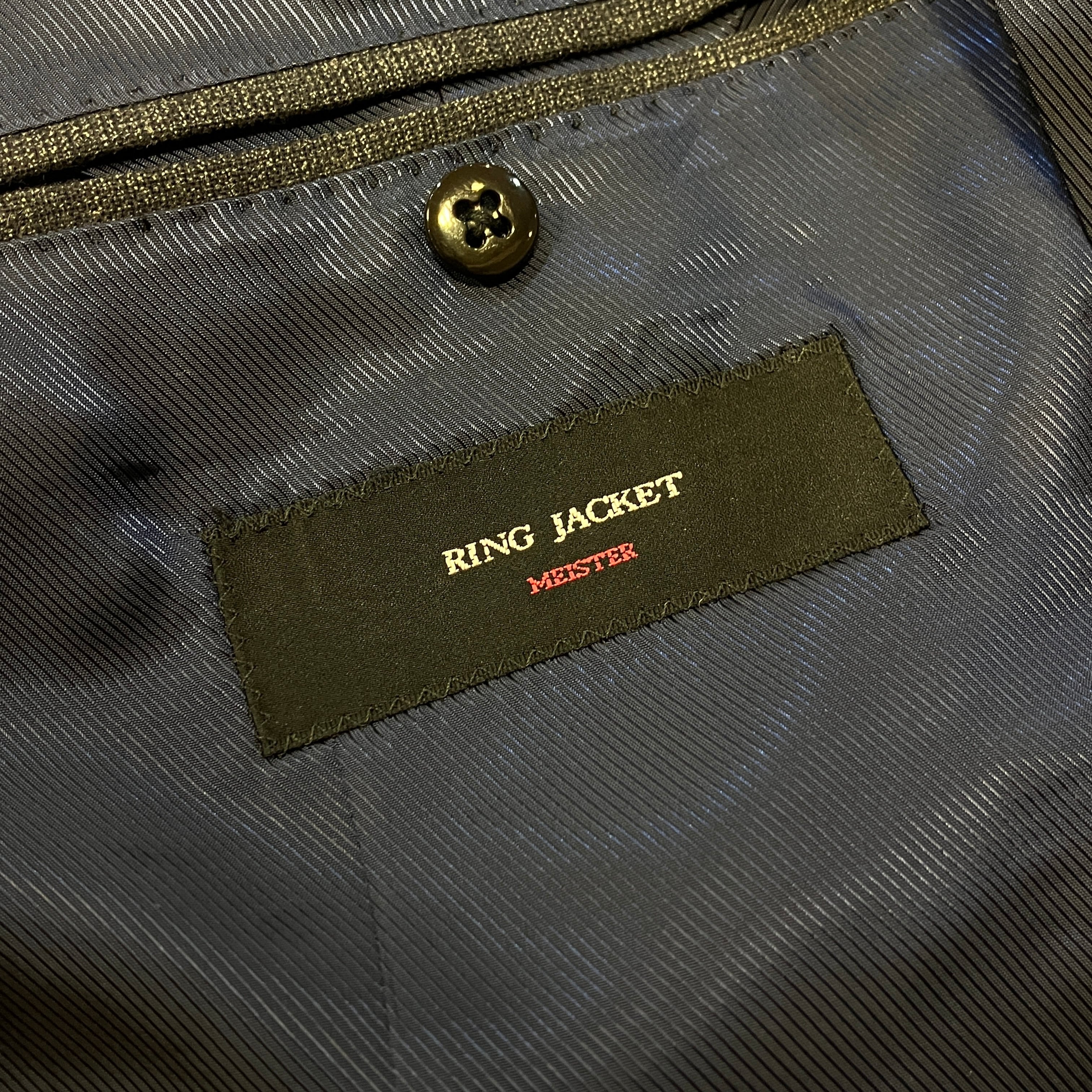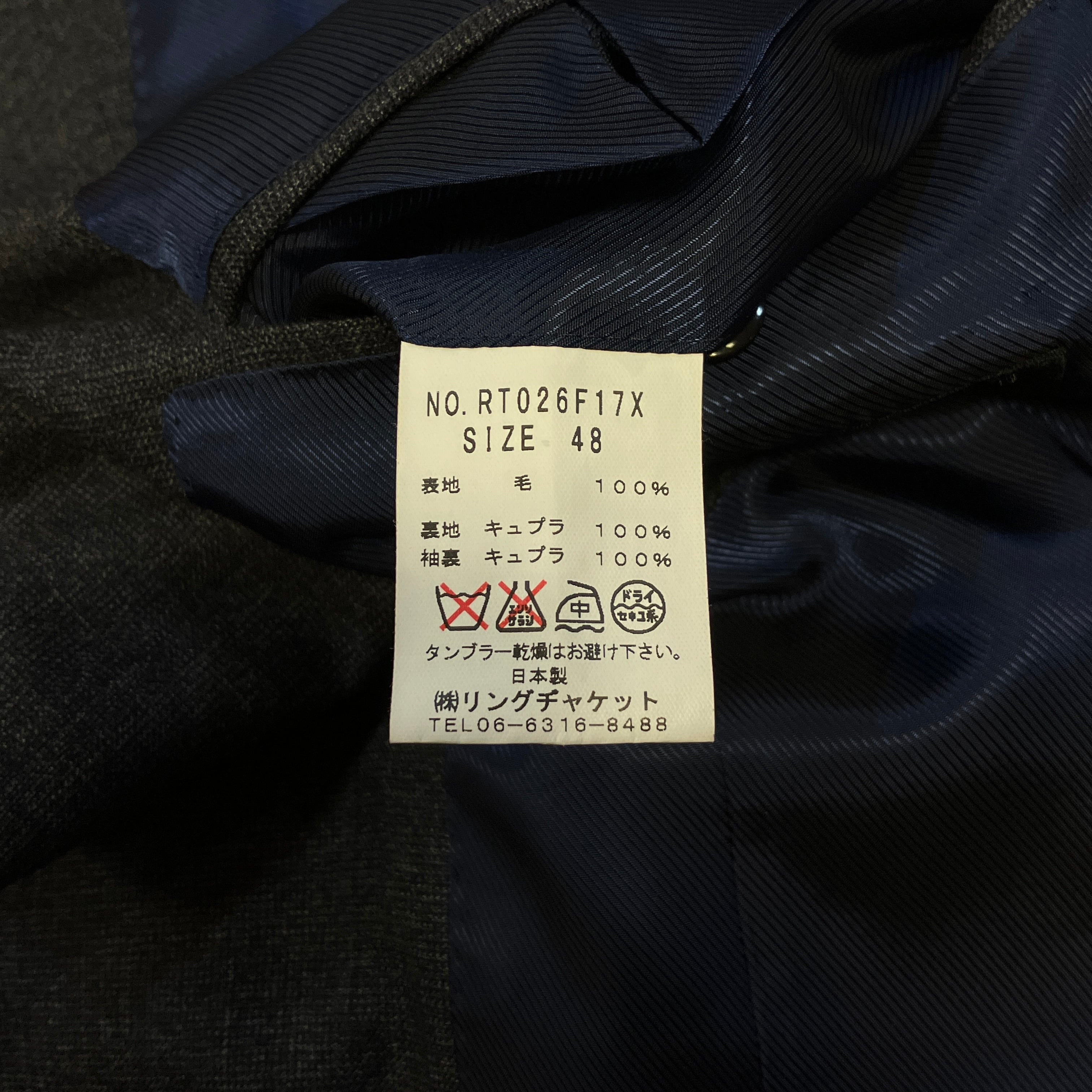 RING JACKET MEISTER WOOL NAVY WINDOWPANE SUIT《48》