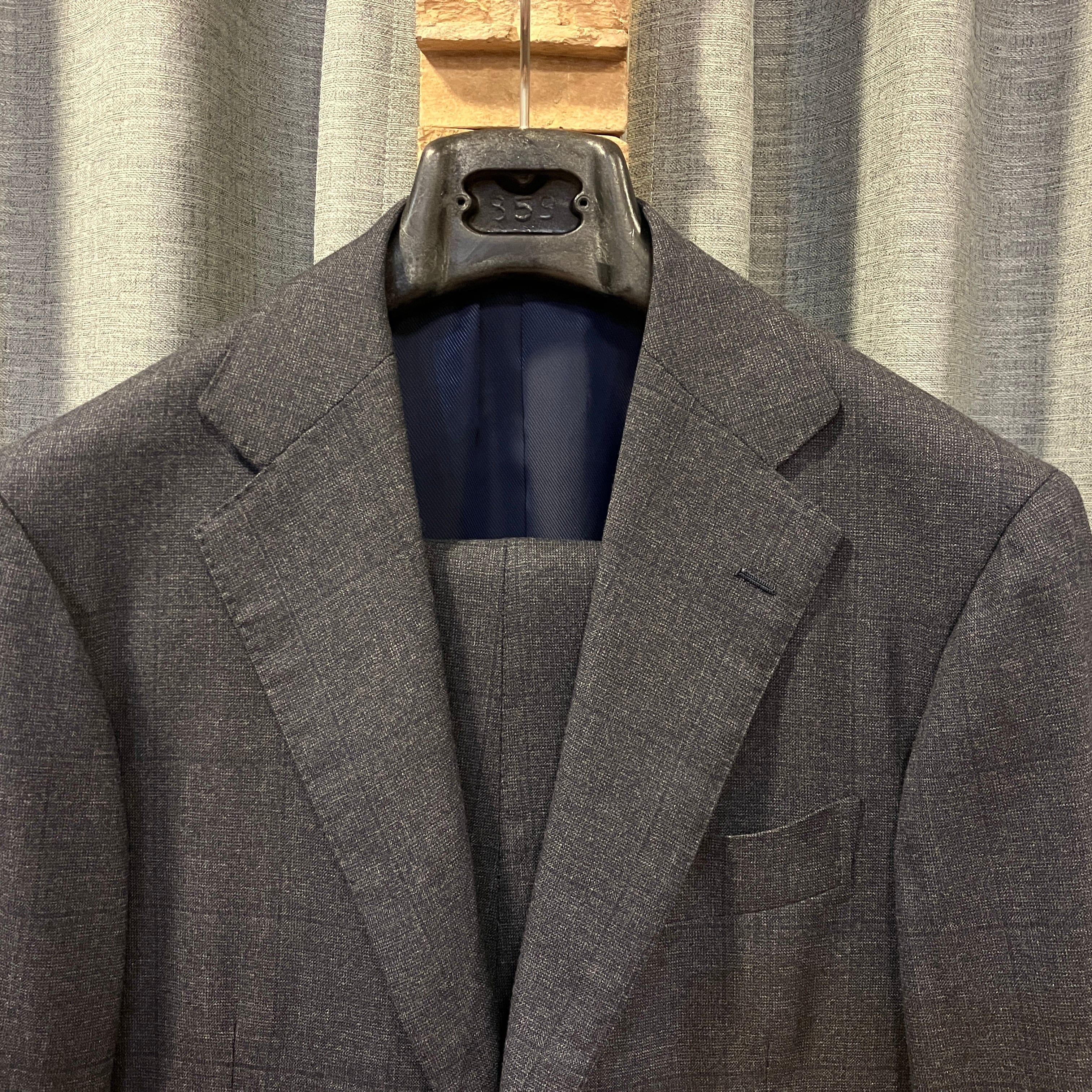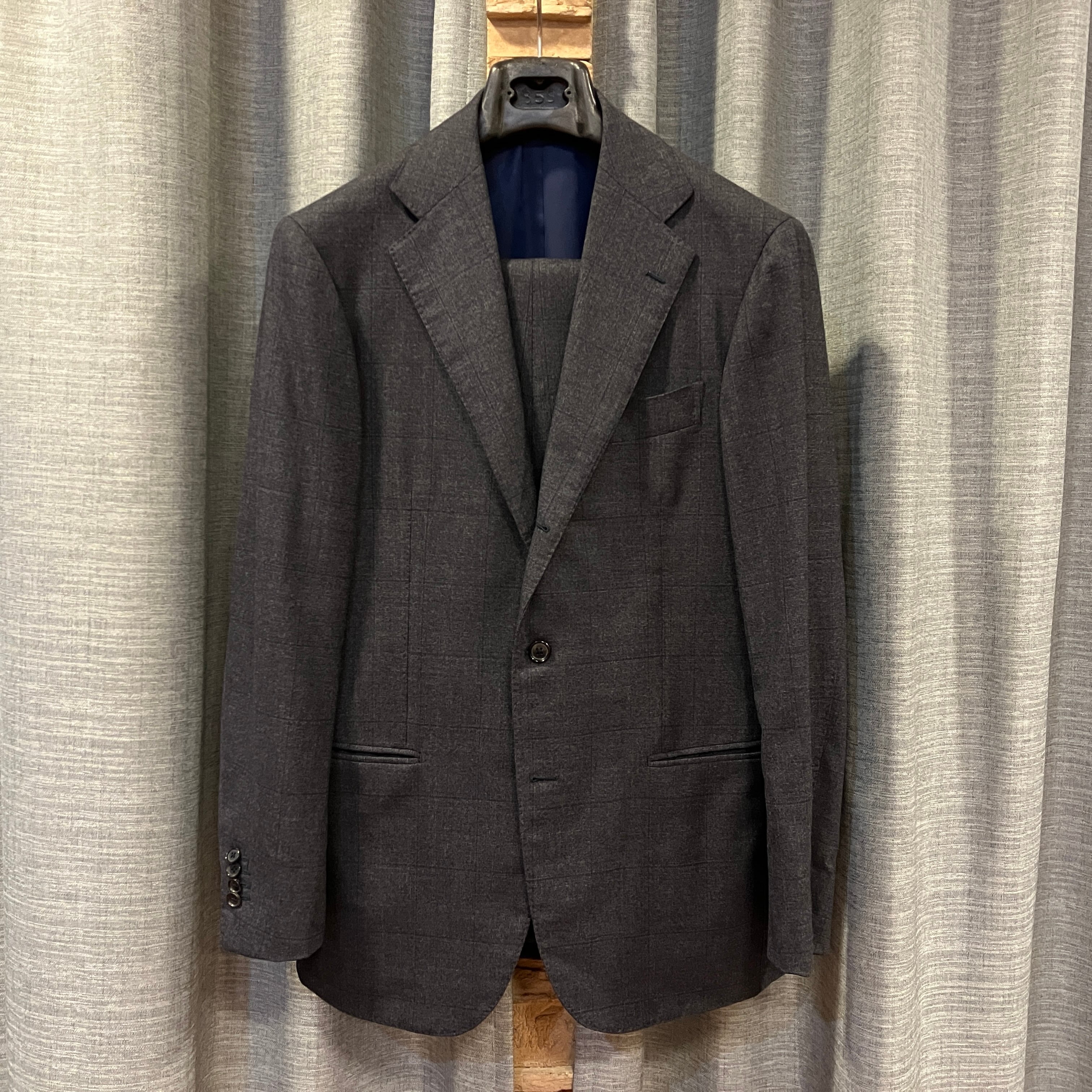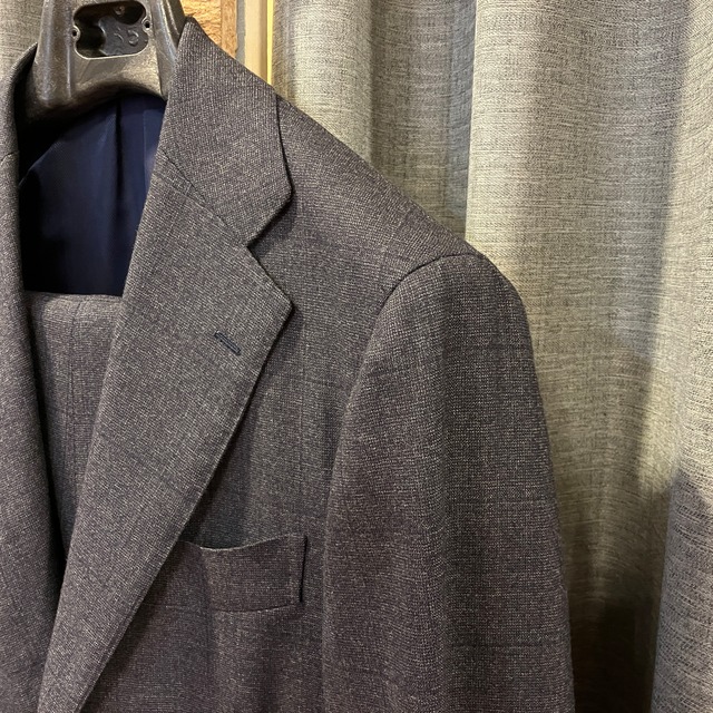 RING JACKET MEISTER WOOL NAVY WINDOWPANE SUIT《48》