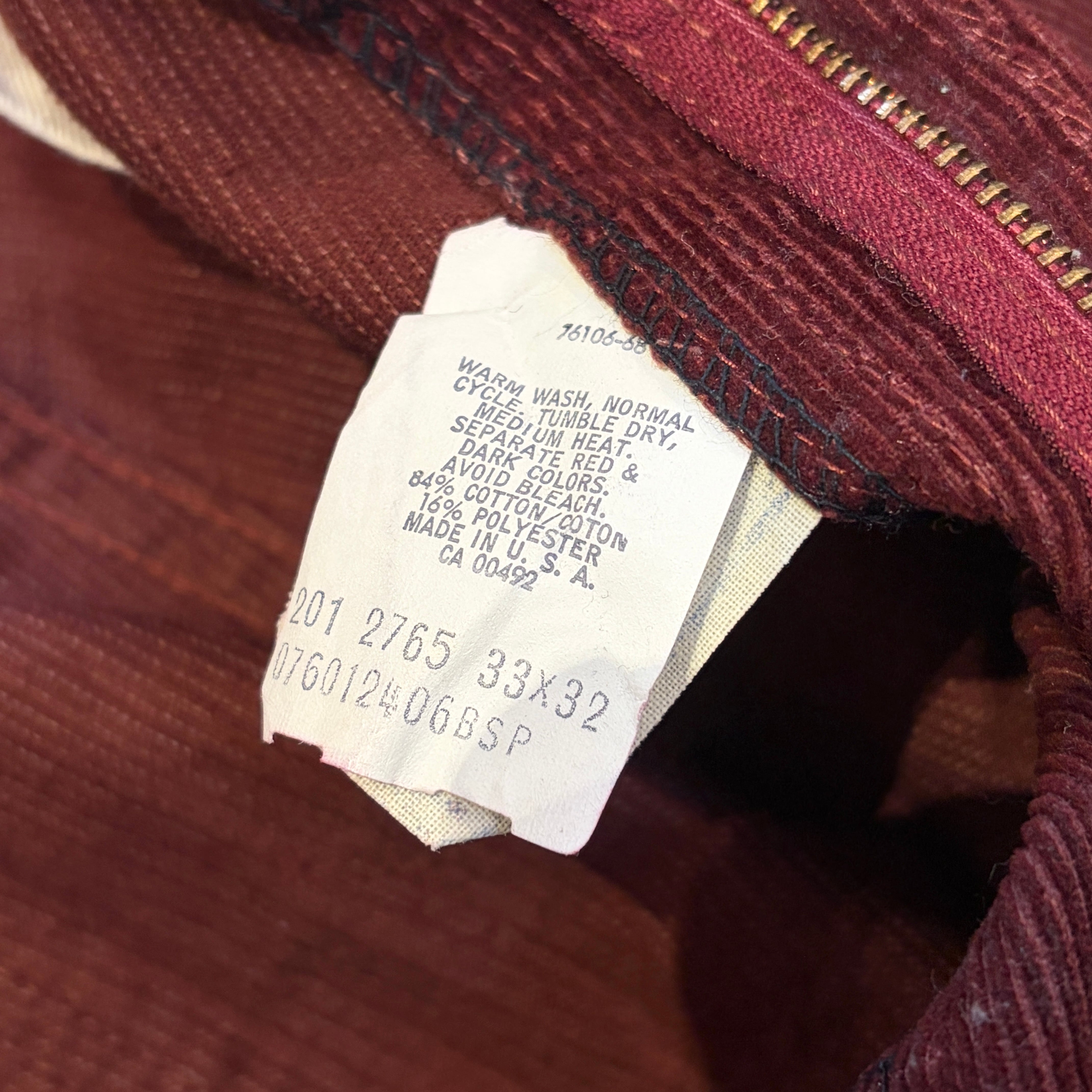 1980s LEE CORDS PANT BURGUNDY USA
