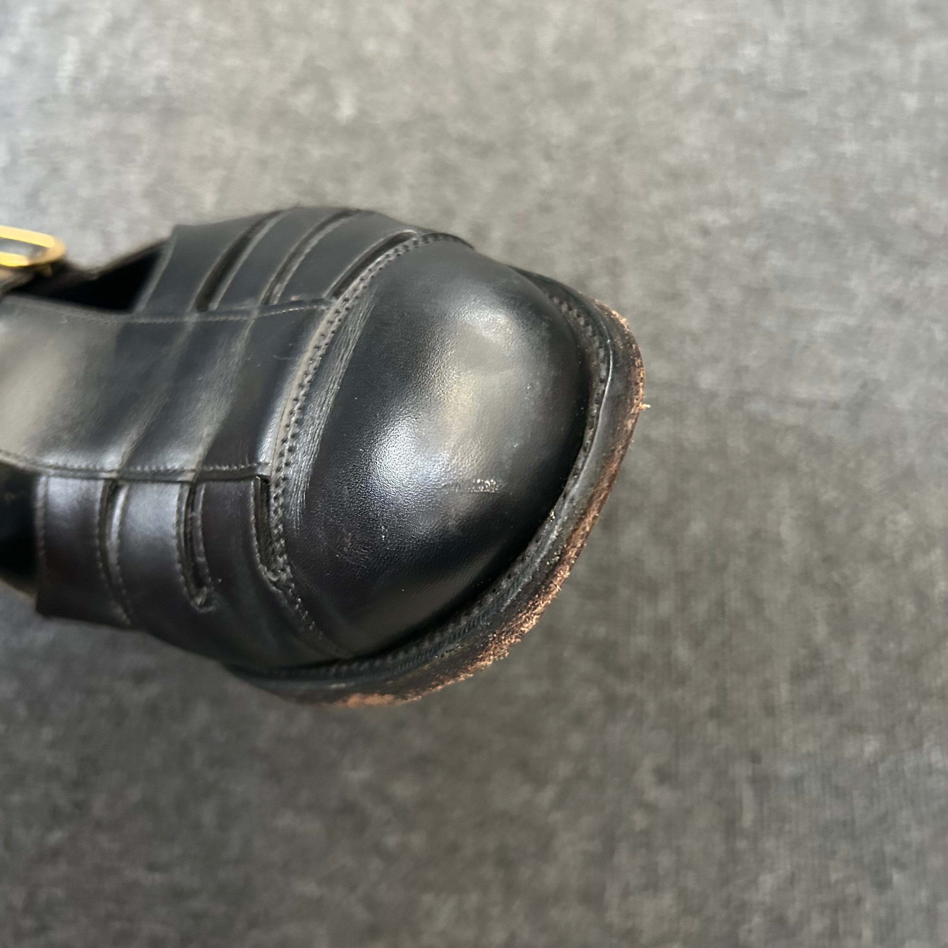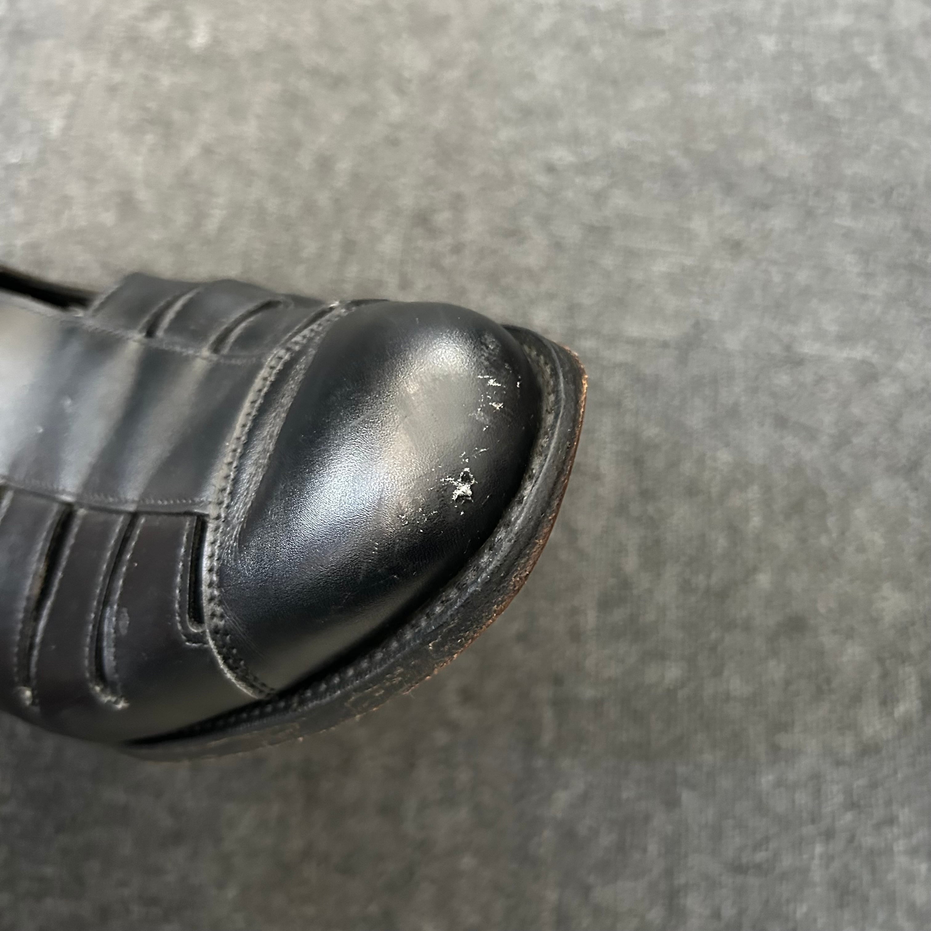着用によるスレや両足のつま先にキズが見られます。