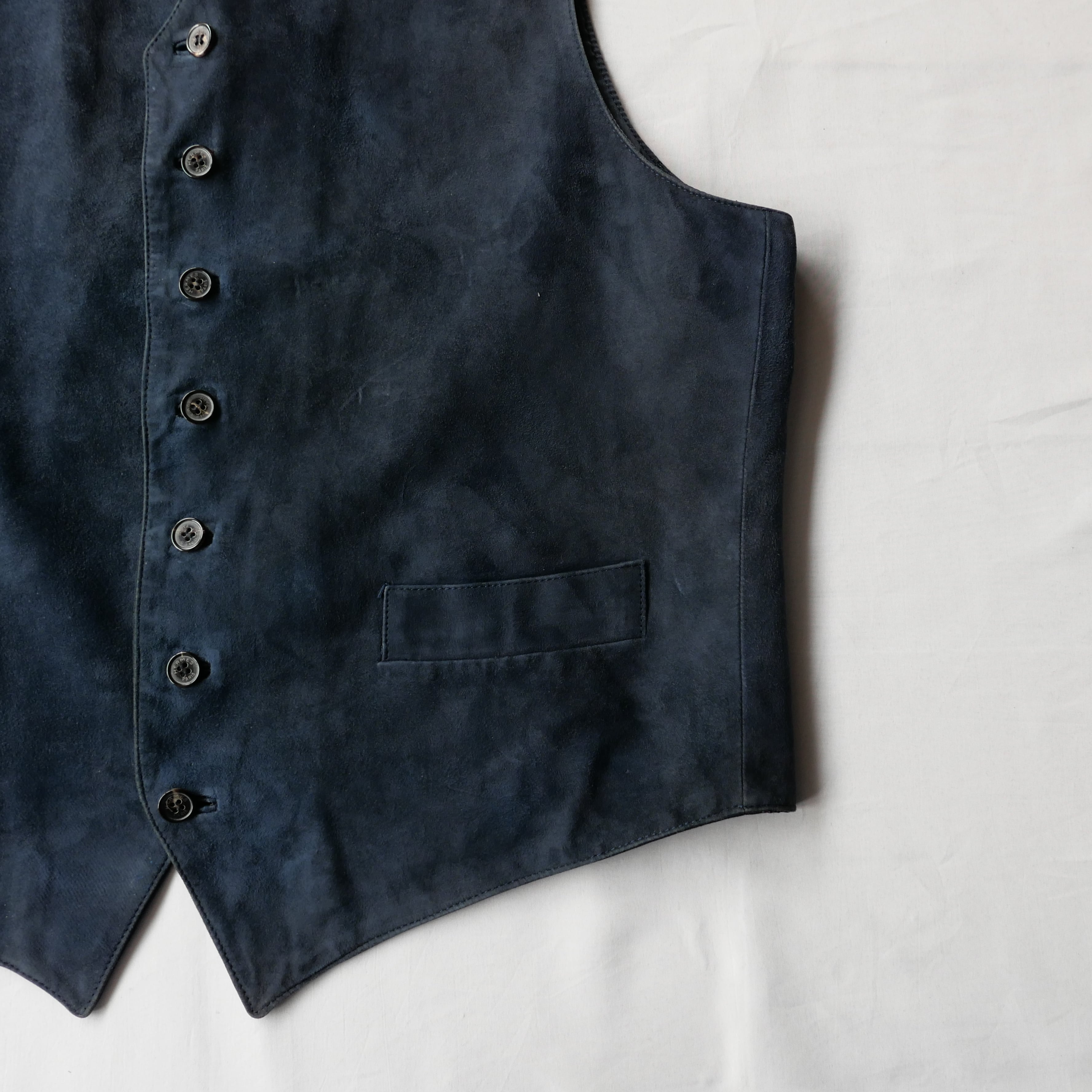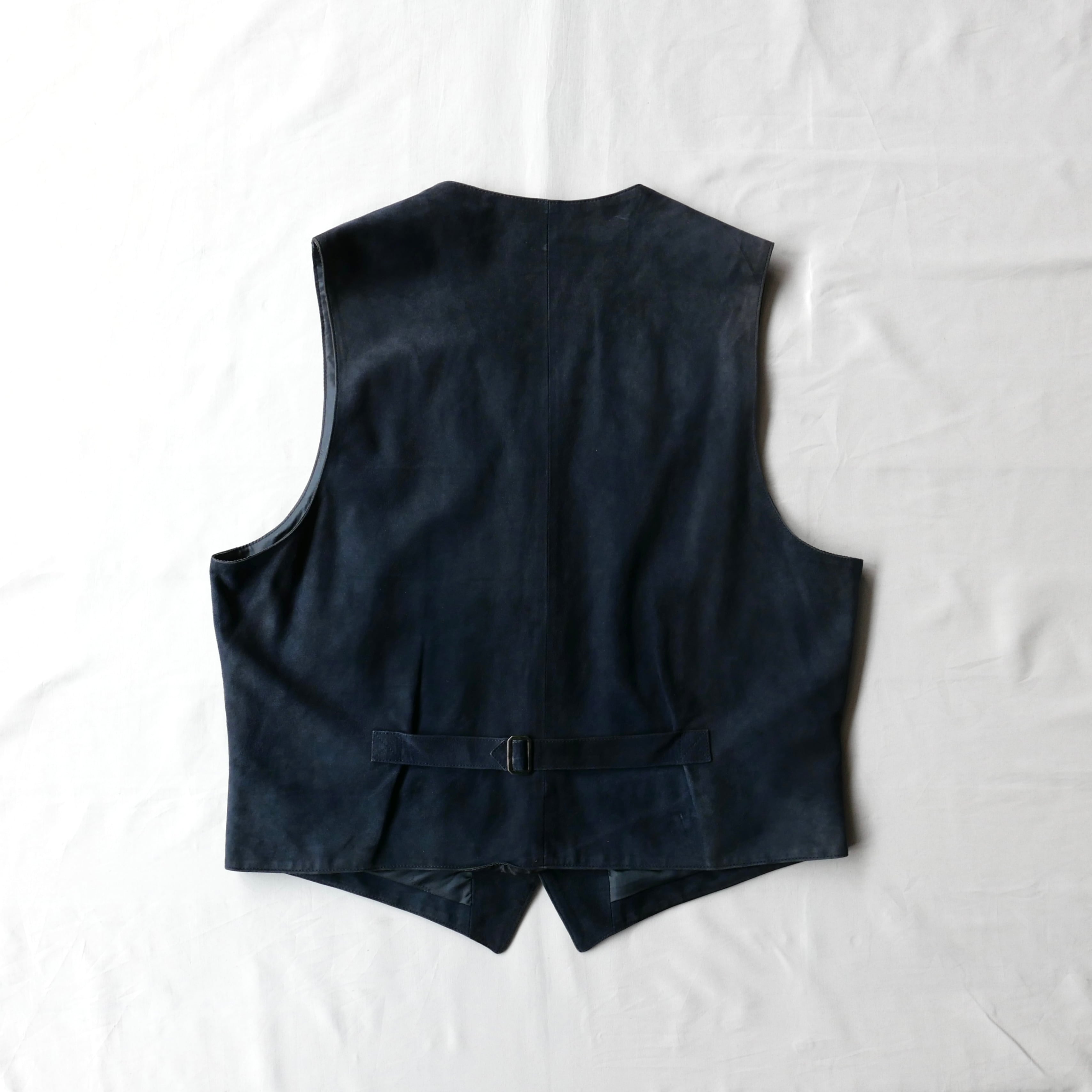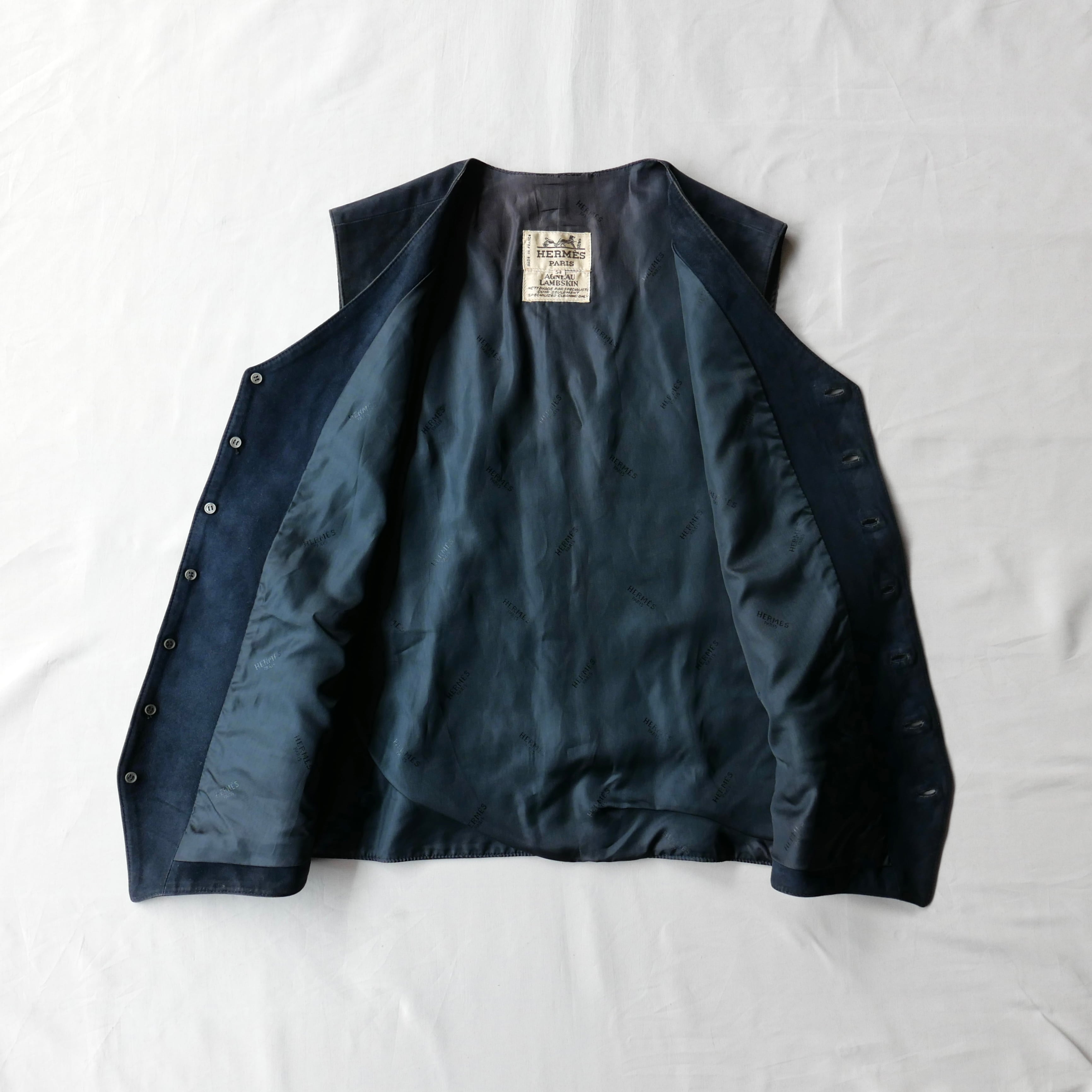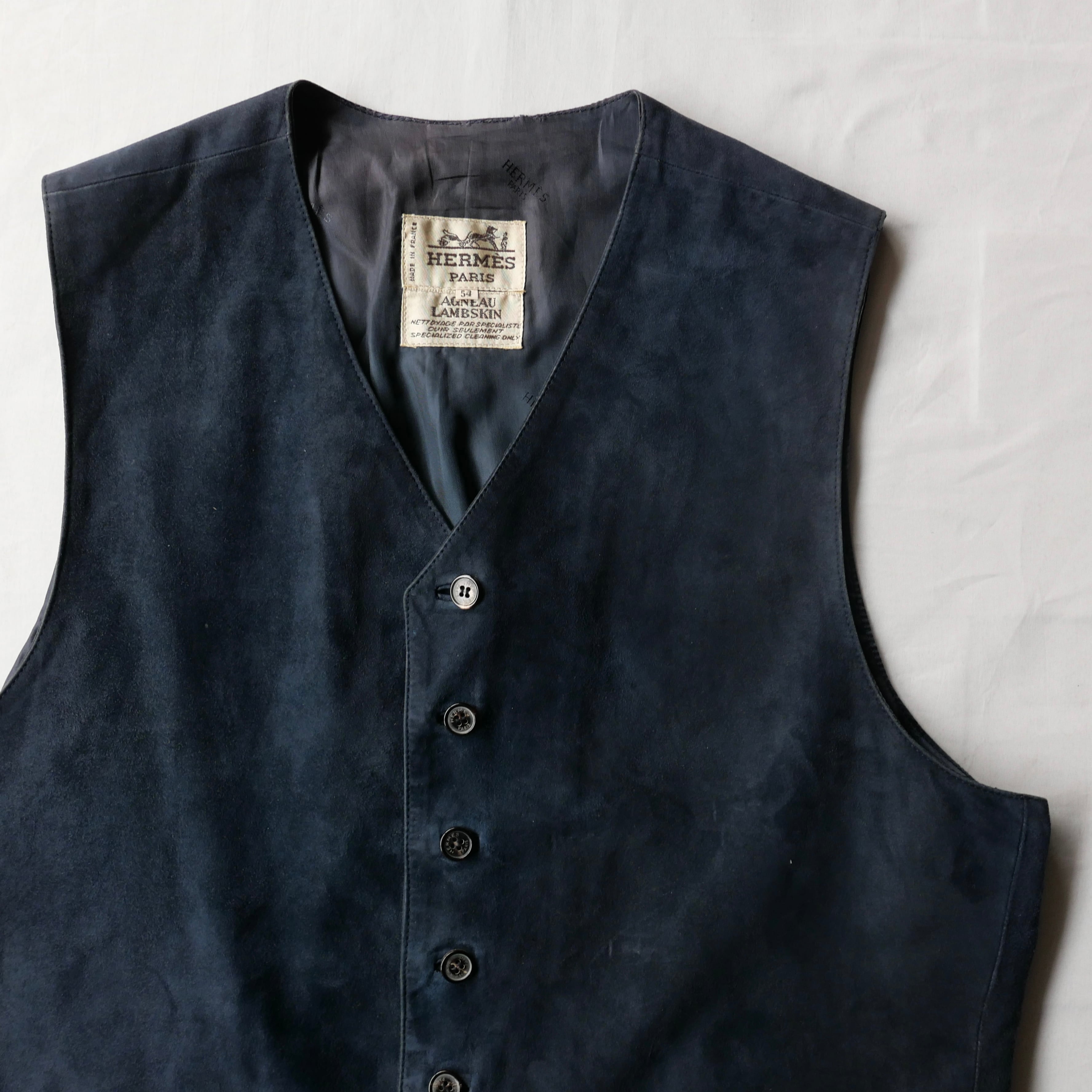 エルメスによるネイビースエードのベスト。