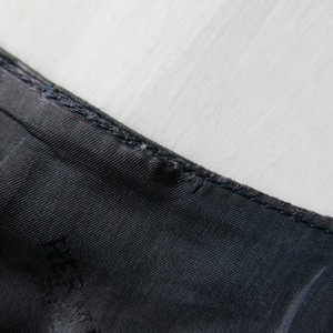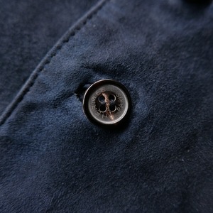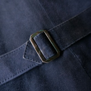 この手のアイテムは前面のみレザーで背面は別素材を用いる事が多いですが、当個体は前後ともにスエードを用いたことでコーディネートも難なく組める仕様。