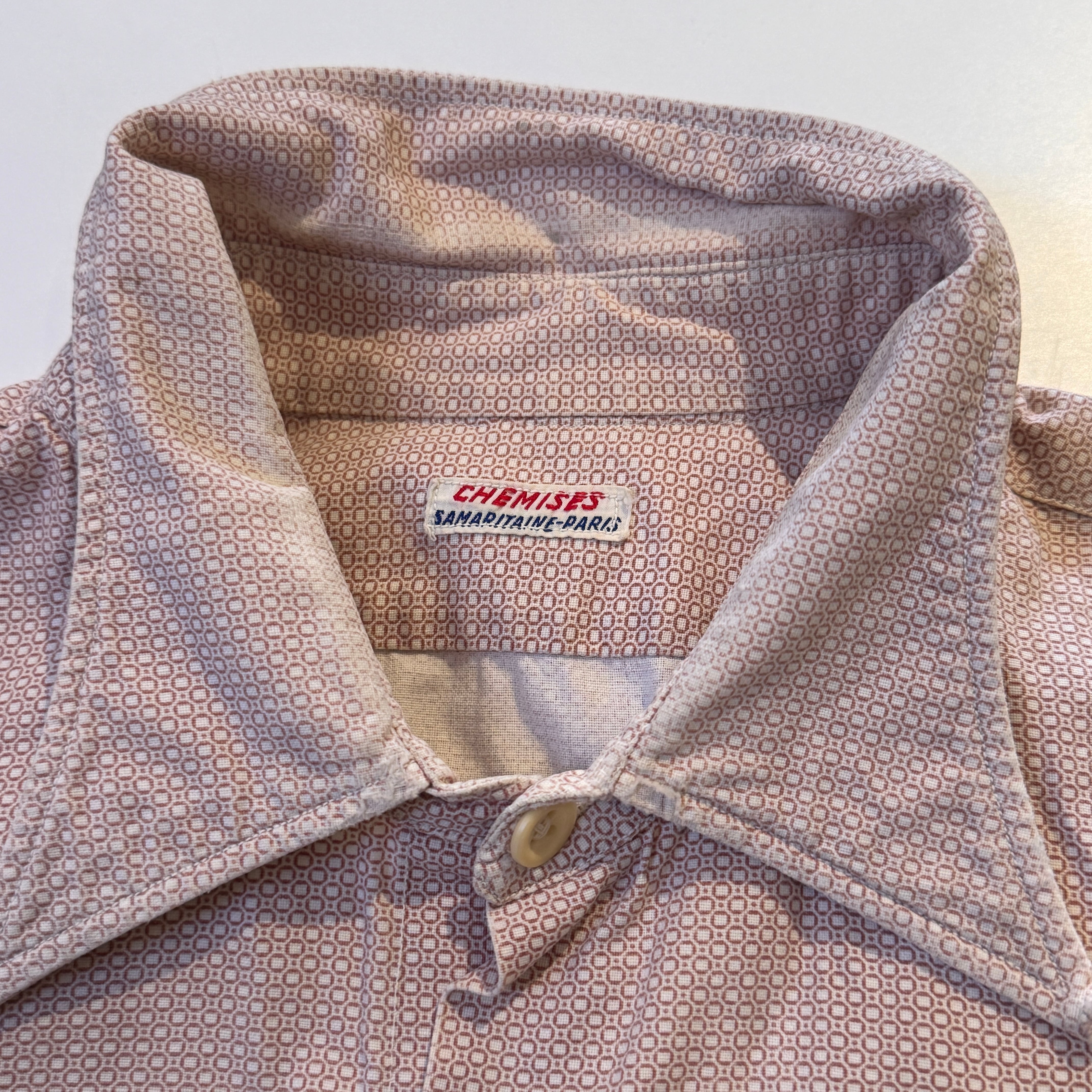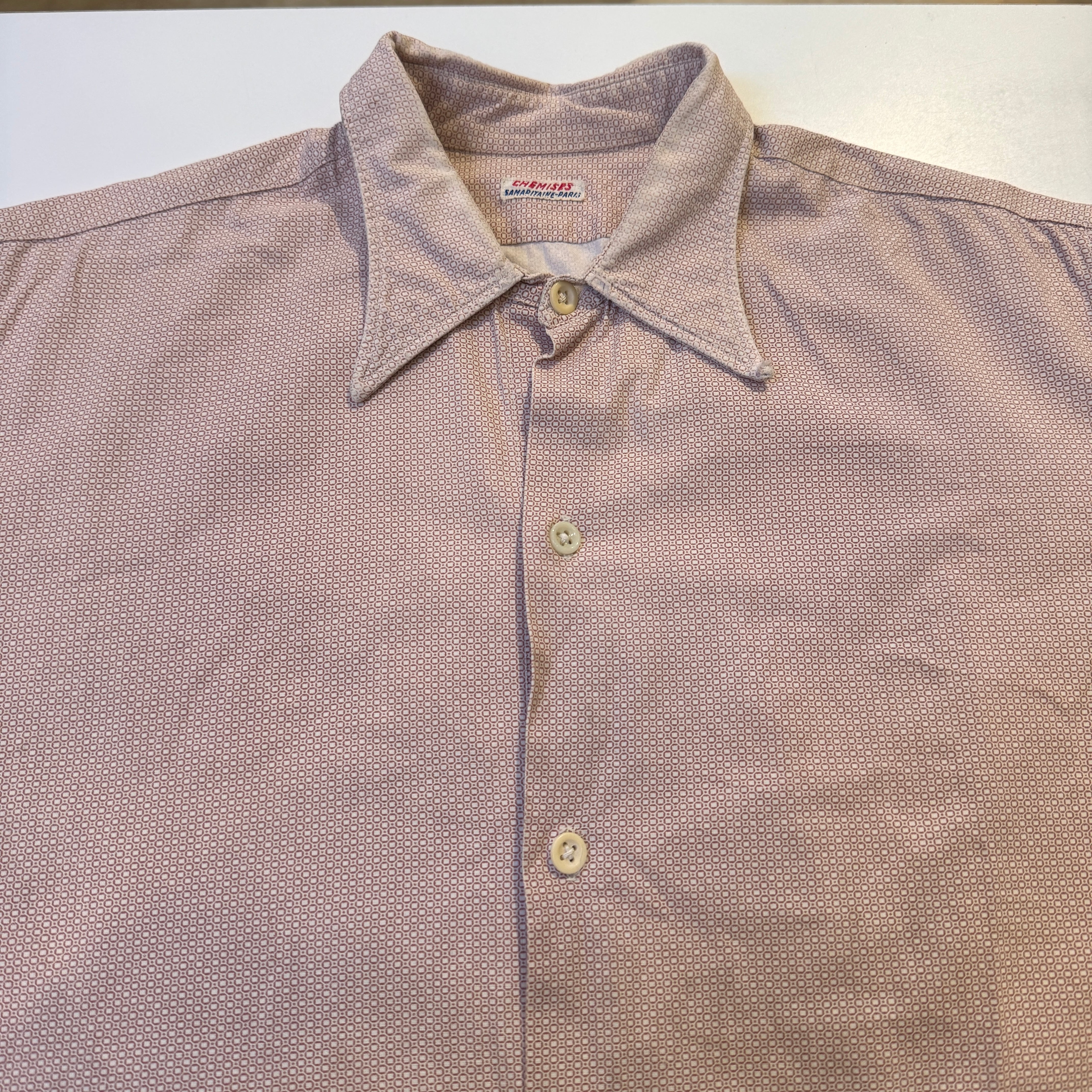 1940s EUROPE VINTAGE GRANDPA SHIRT BROWN/WHITE