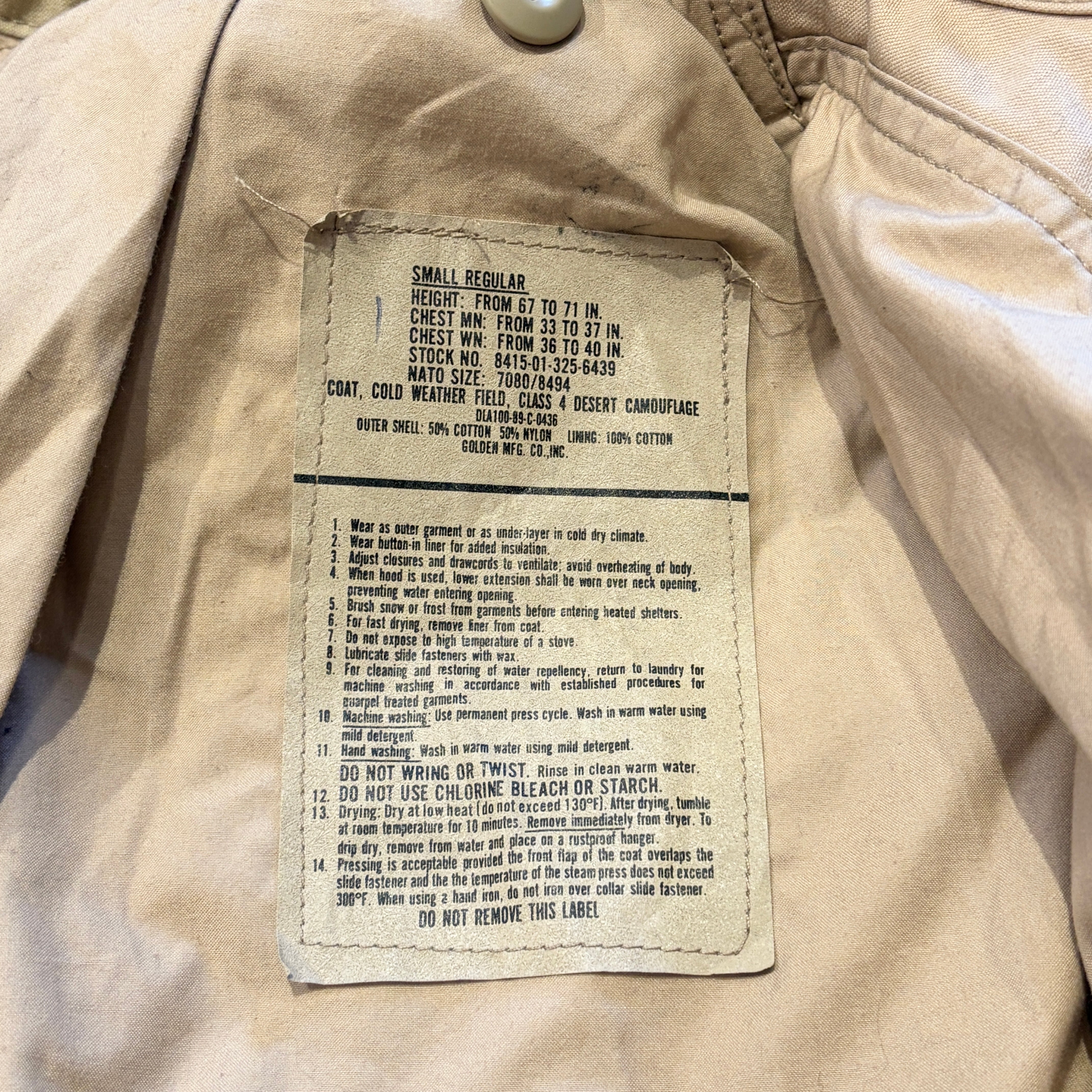 GOLDEN MFG CO. M-65 FIELD JACKET DESERT CAMOFLAGE