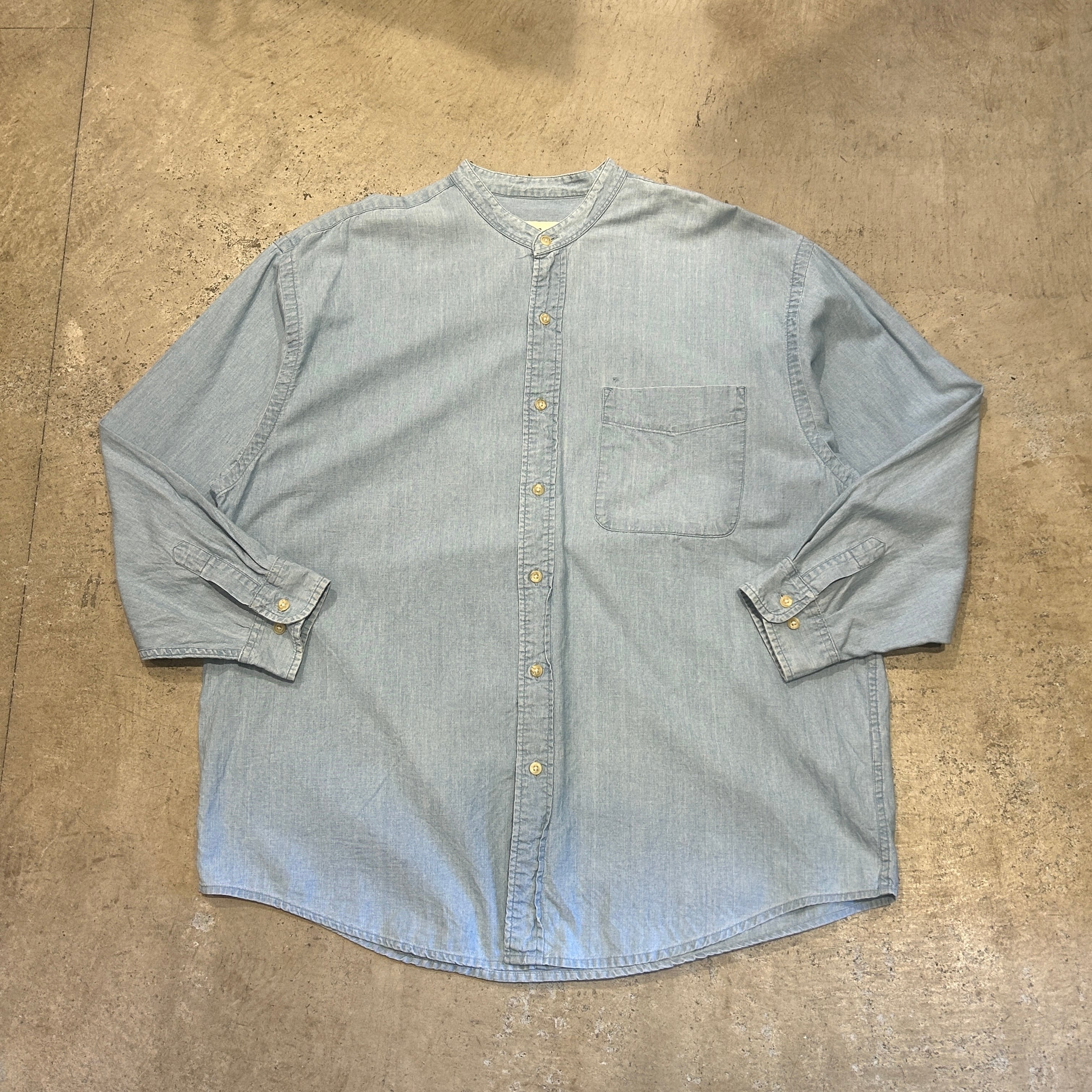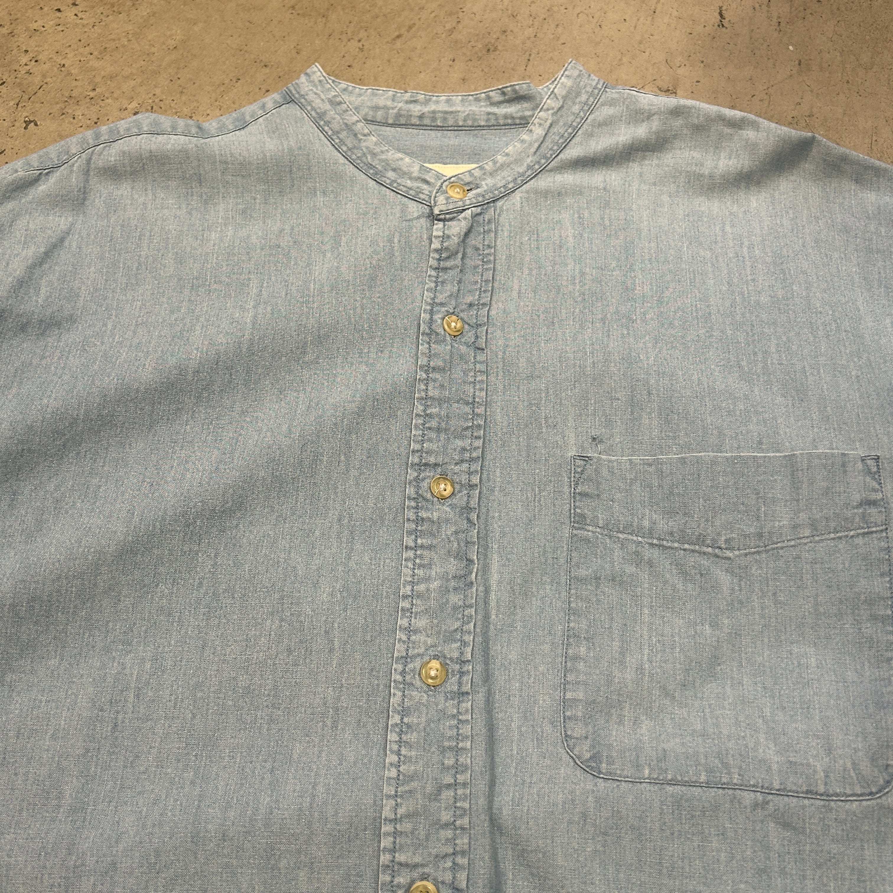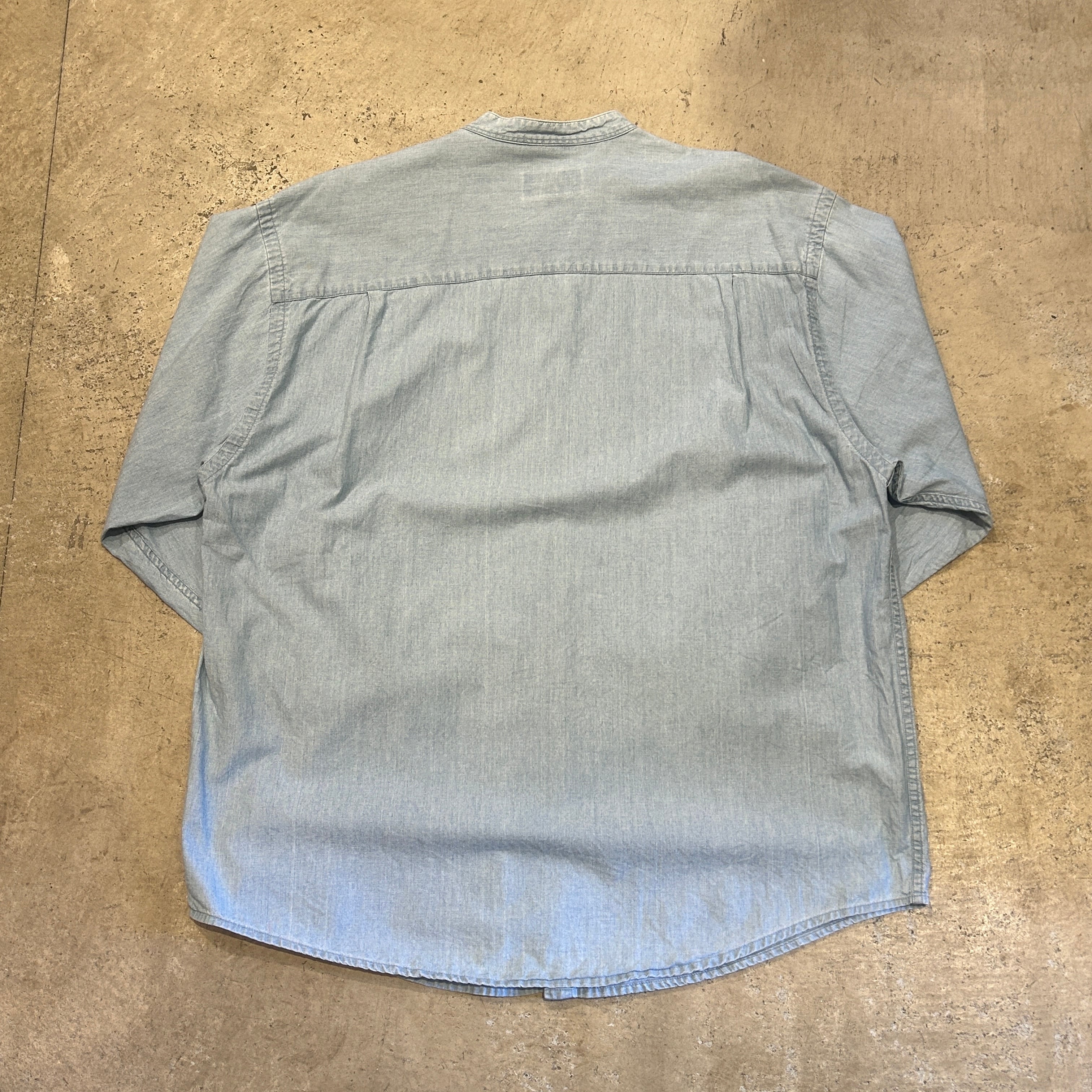 1990s EDDIE BAUER NO COLLER SHAMBRAY SHIRT