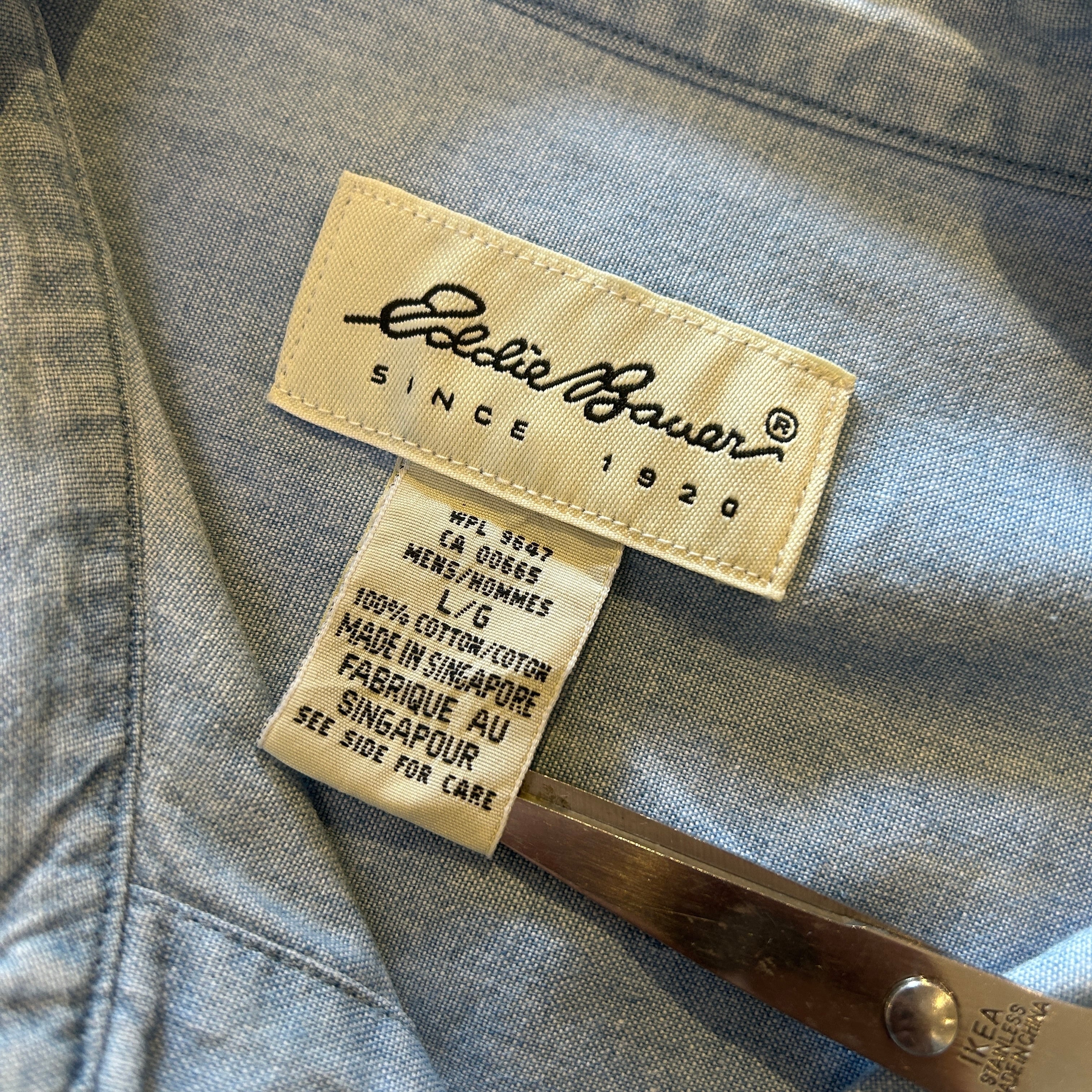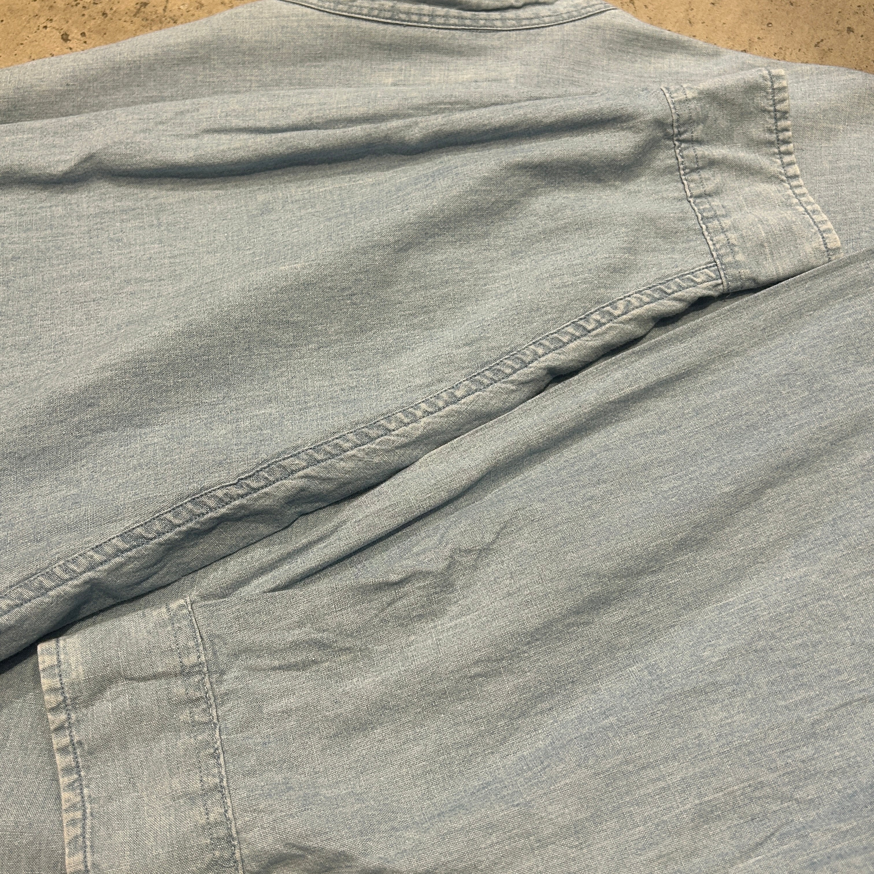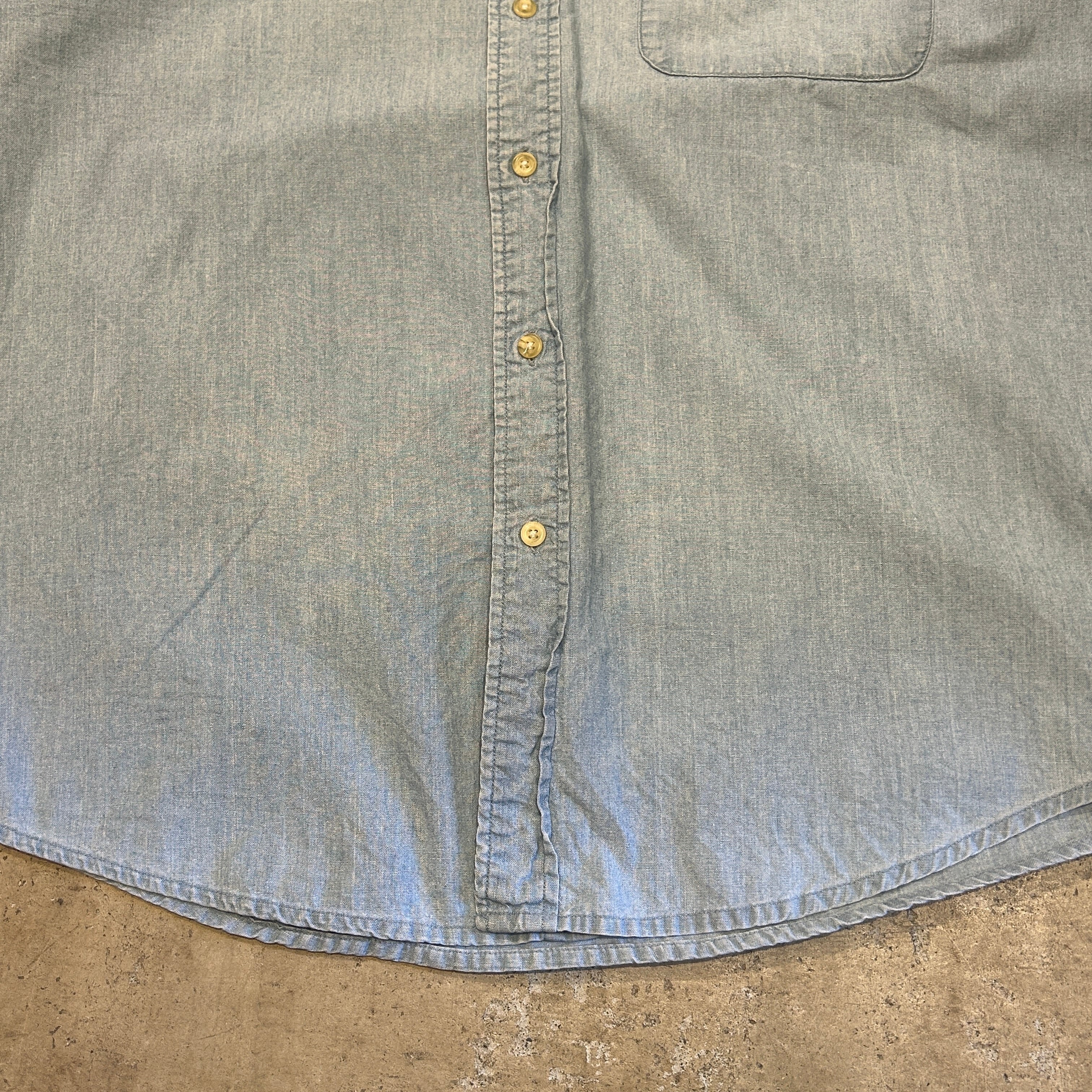 1990s EDDIE BAUER NO COLLER SHAMBRAY SHIRT
