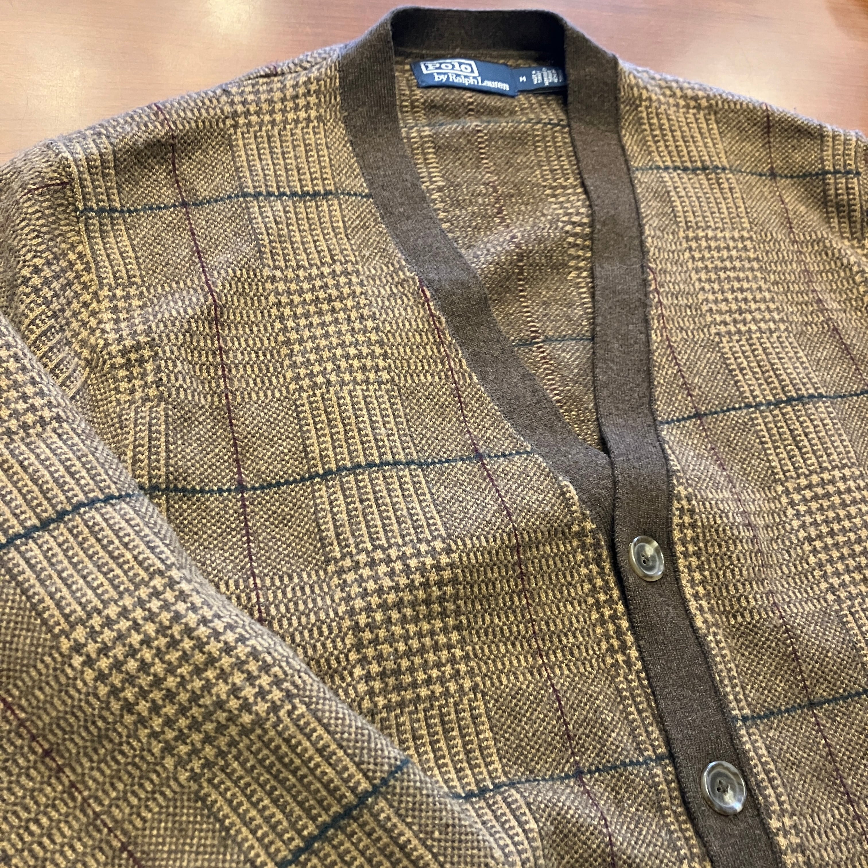 RALPH LAUREN WOOL CHECK CARDIGAN