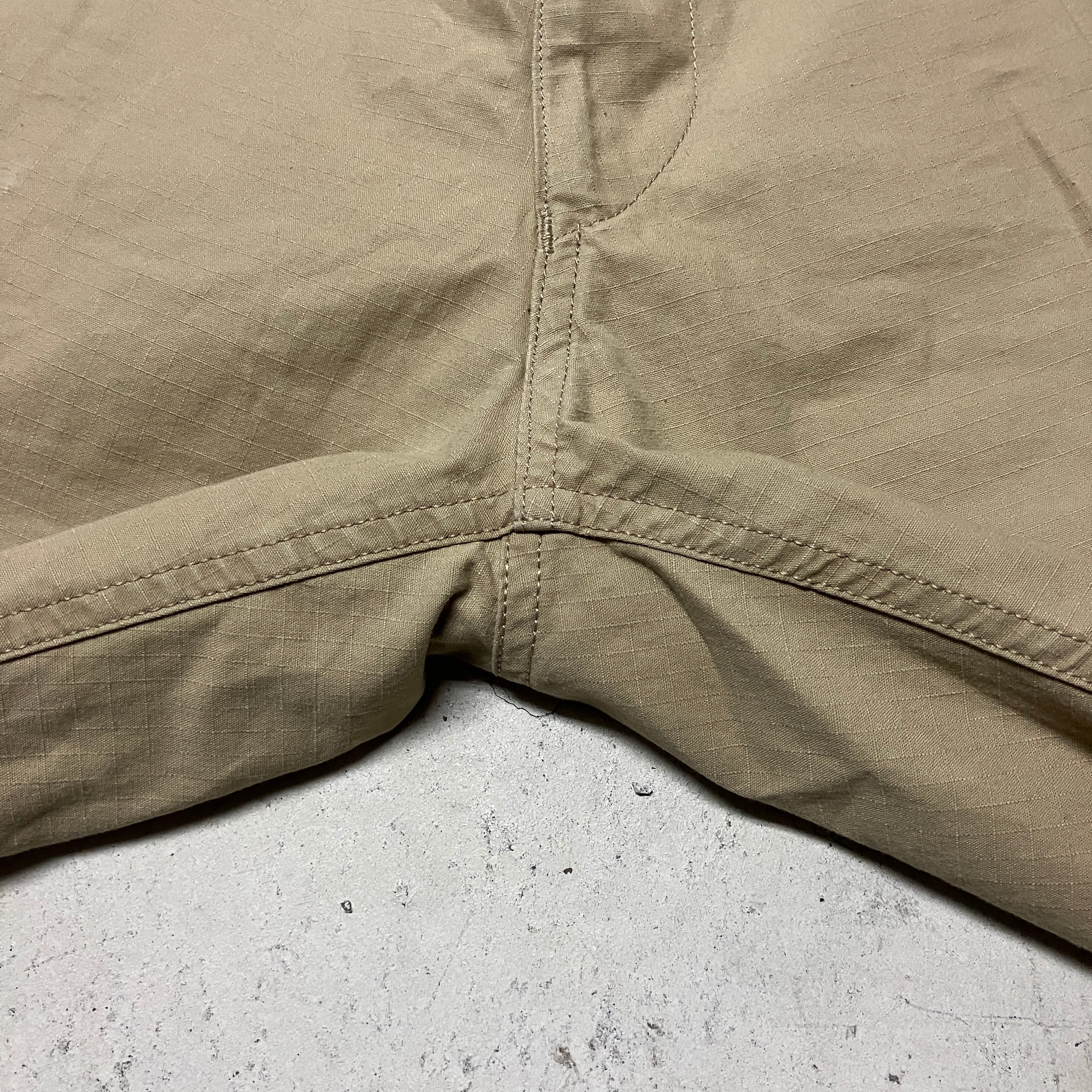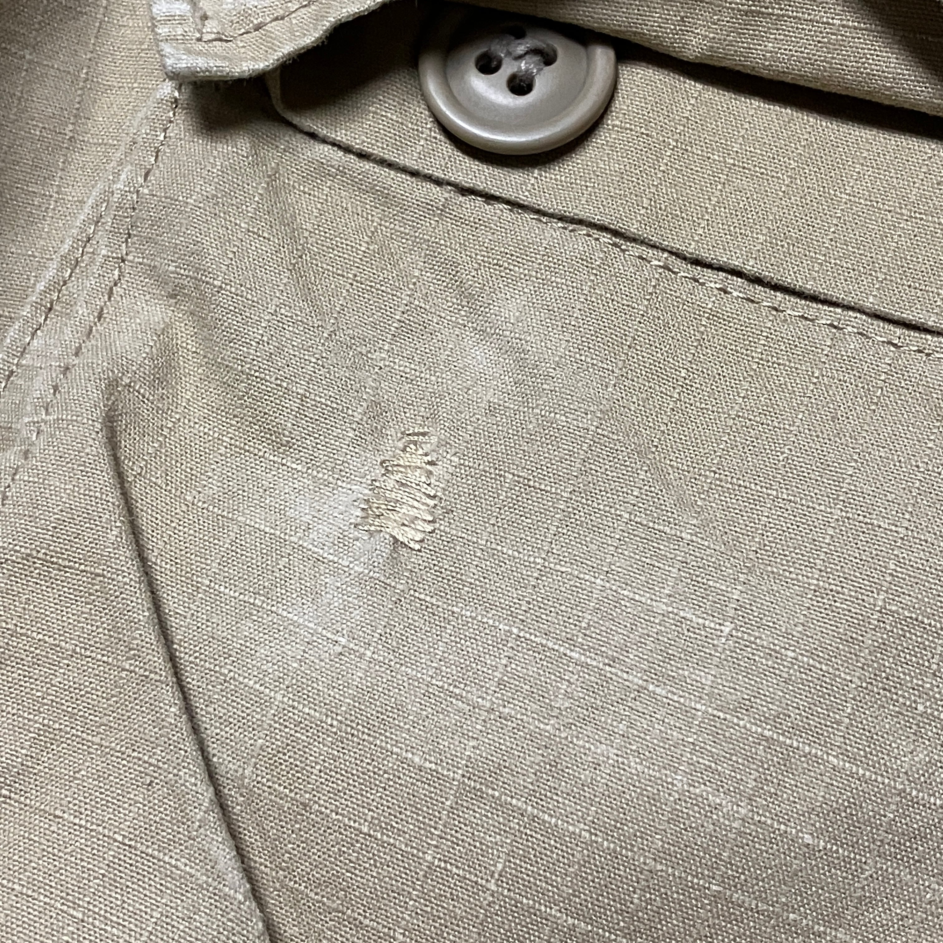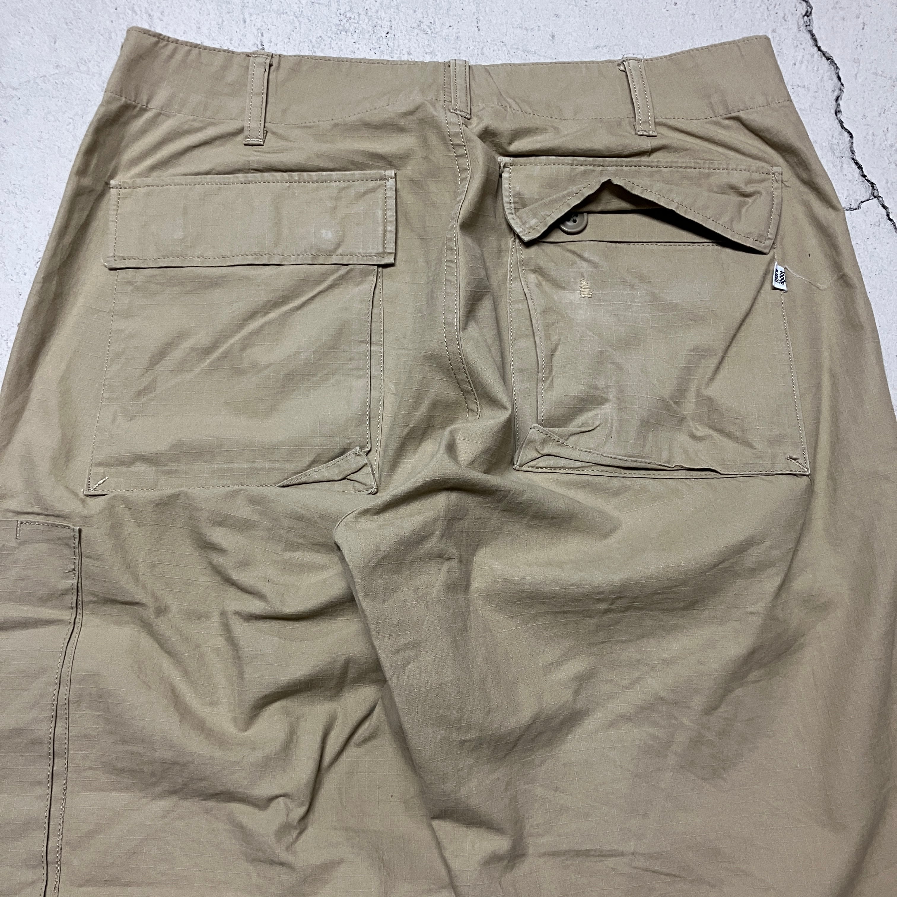 画像のように、右バックポケットにリペア痕、裾に薄汚れがございます。