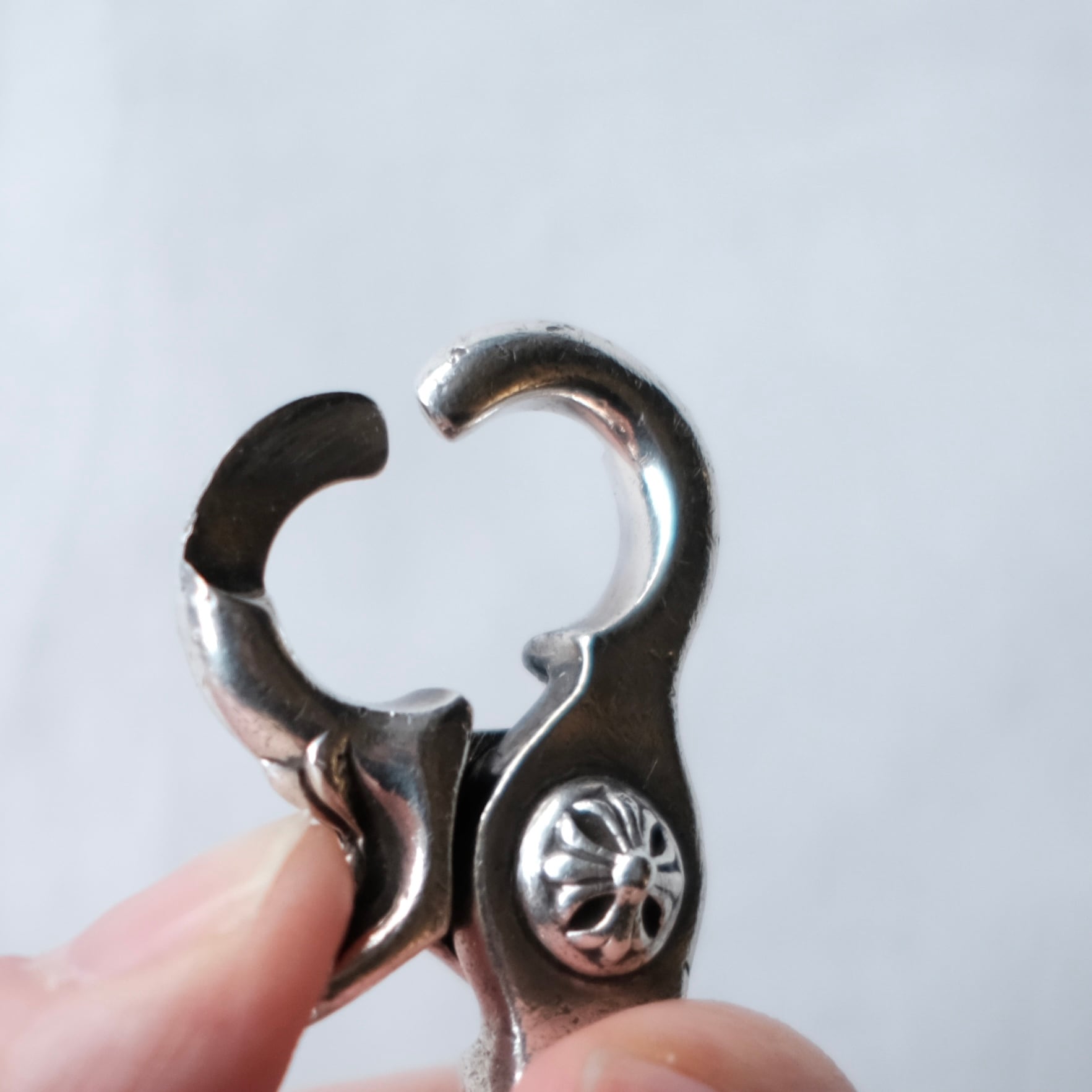 クロムハーツの中でも定番アイテムとして人気が非常に高く、直営店で手に入れることは困難となっているこちら。