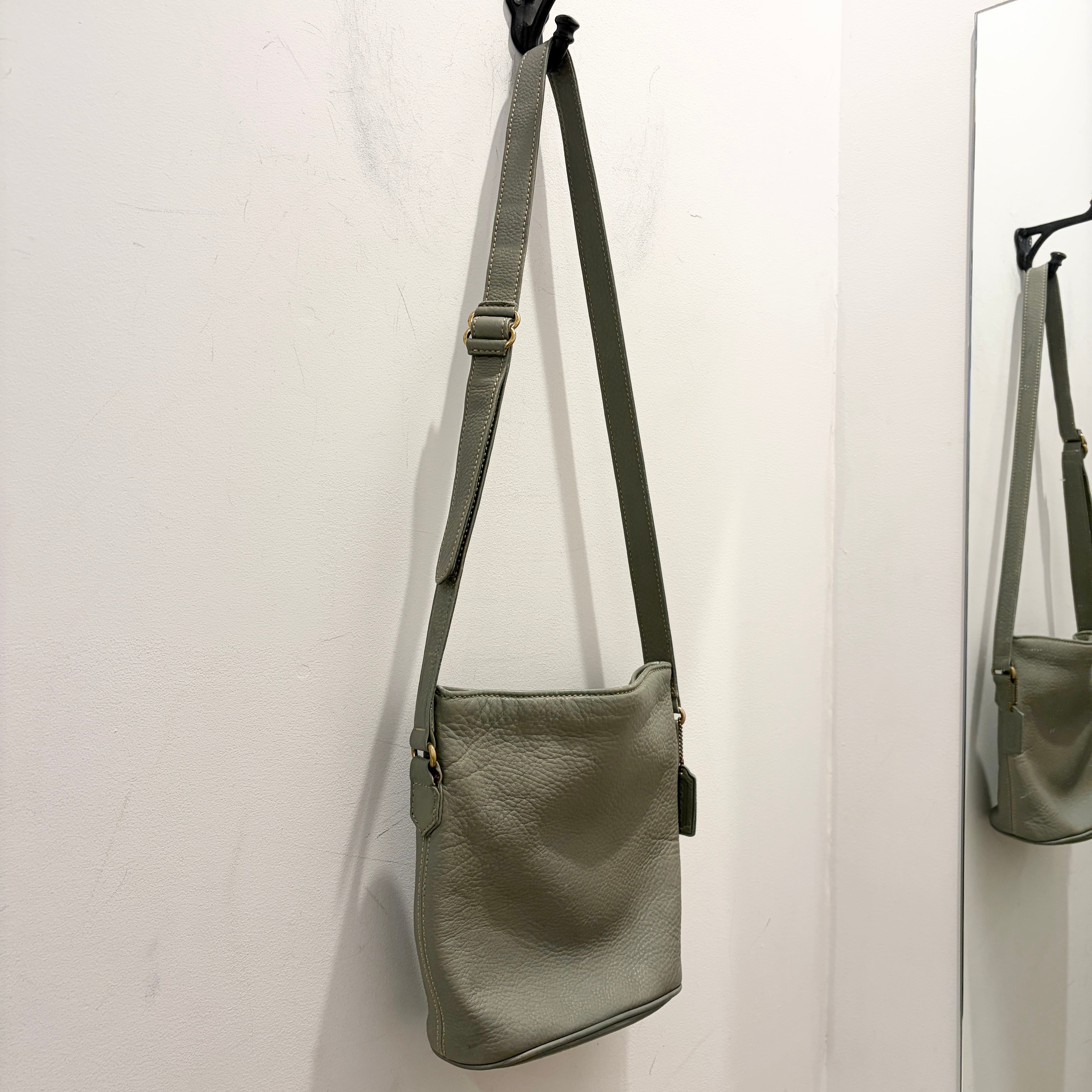 OLD COACH LEATHER SHOULDER BAG PALE GREEN