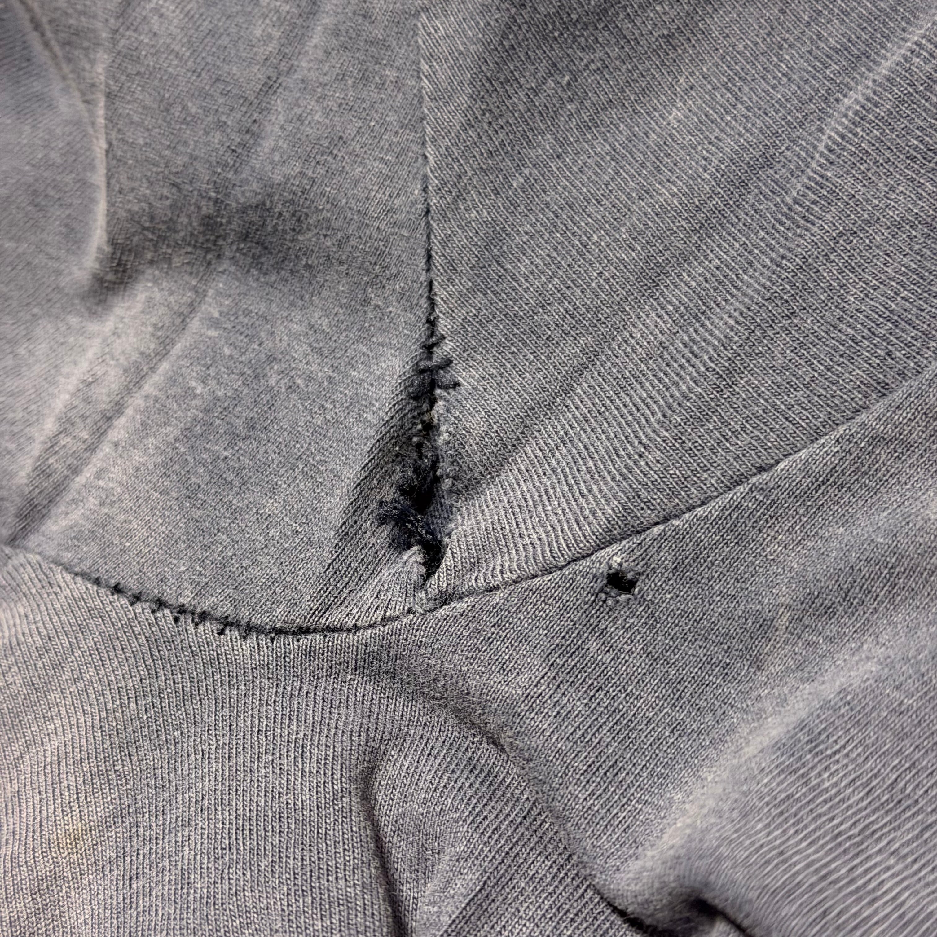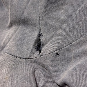 裾のステッチに抜け、両脇部分にダメージがみられます。画像でご確認ください。