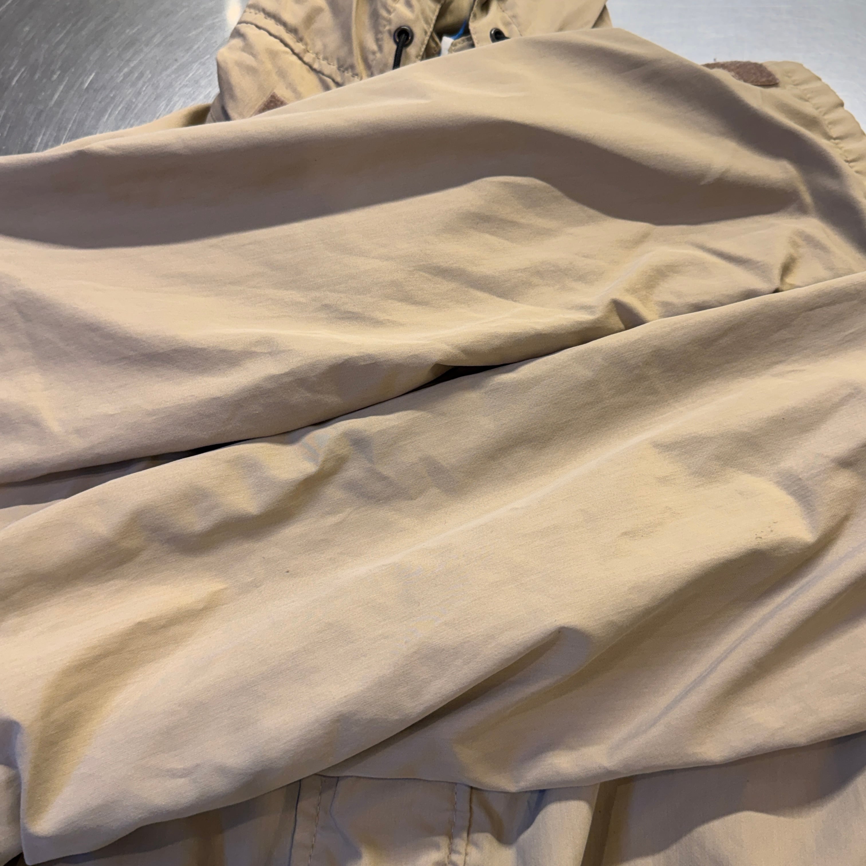 フード部コードストッパーの破損、スレや全体的に着用感がございますが問題なく着用していただける状態になります。