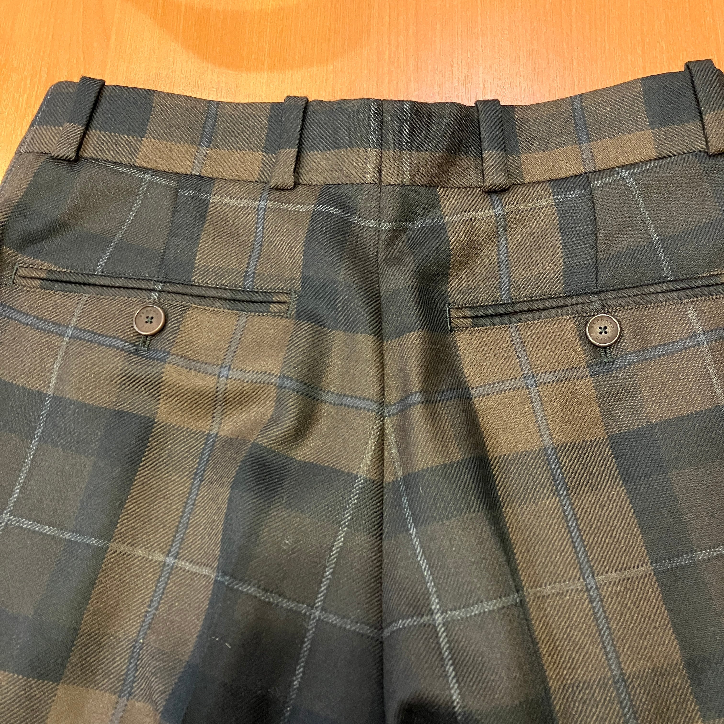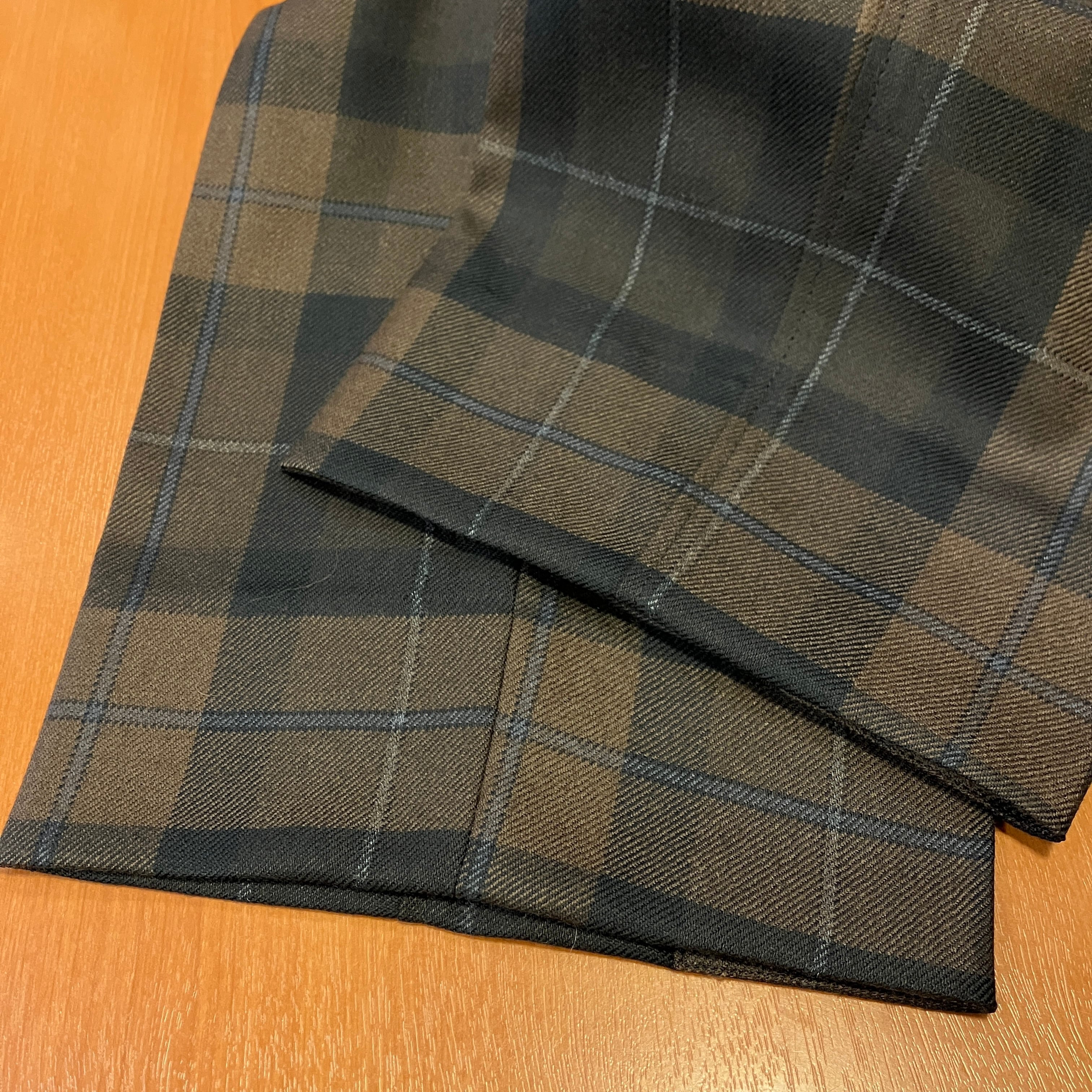 color : ブラウン×ブラックのプレイドに、ブルー系のペーンが入る配色です。