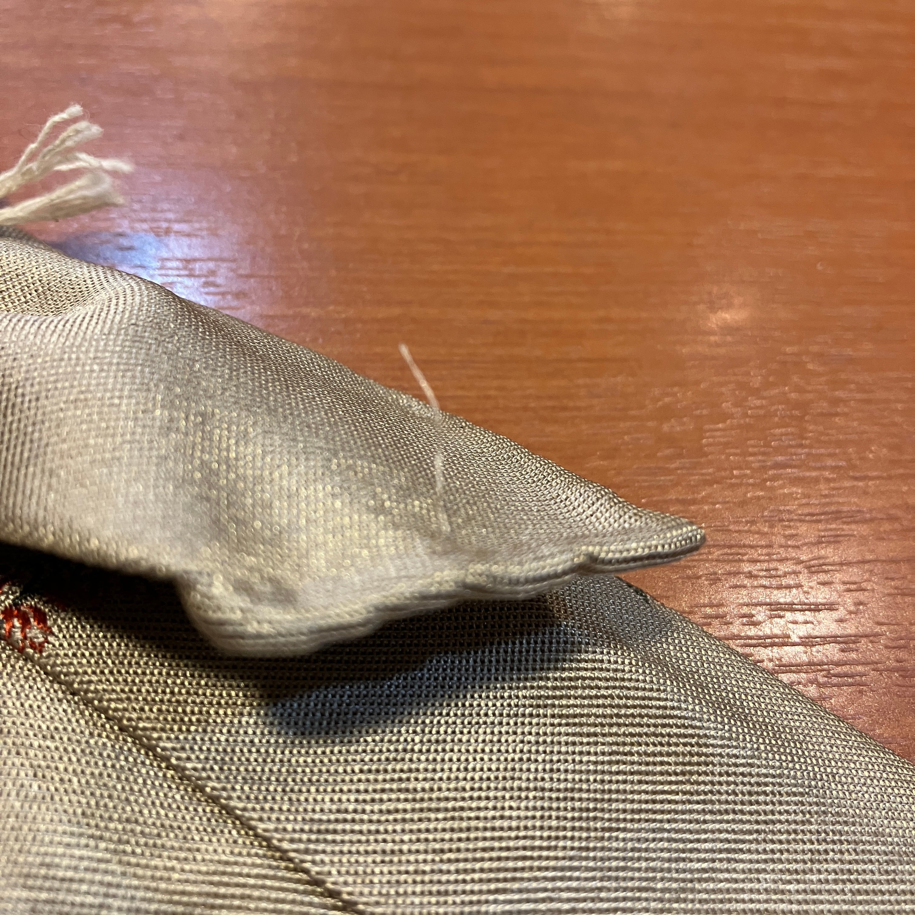 ループ部分のほつれと大剣部分に極薄いシミ、小剣に糸ツレがございます。