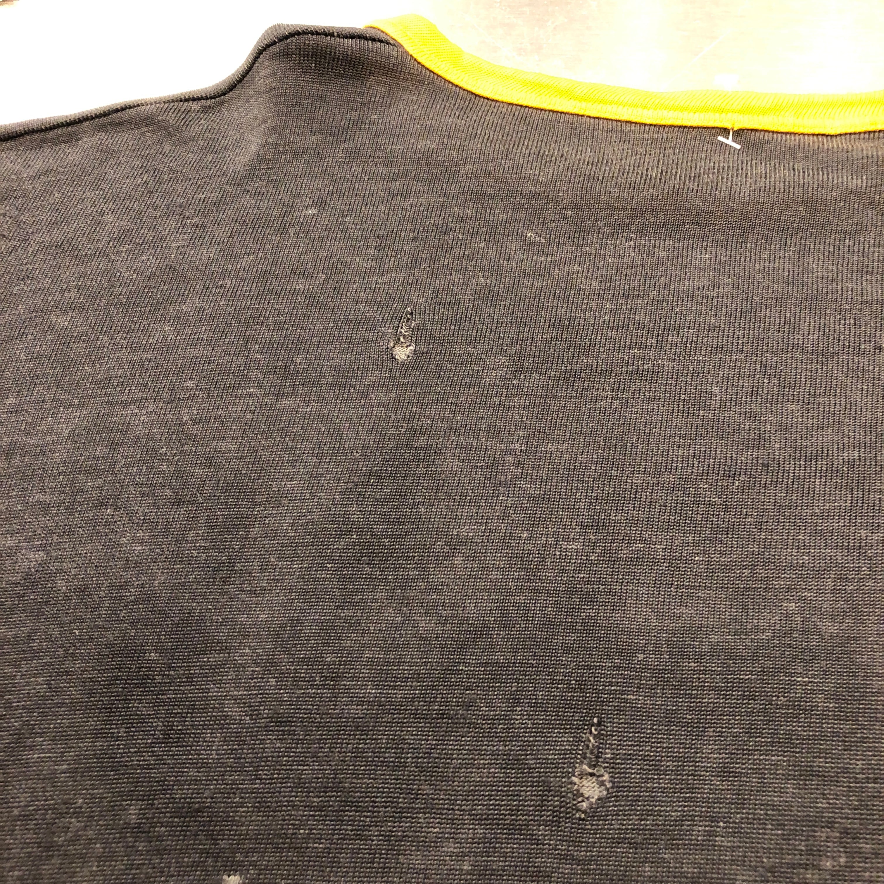 画像の様に、全体的にスレやほつれ、穴、主に背面に破れが見られます。