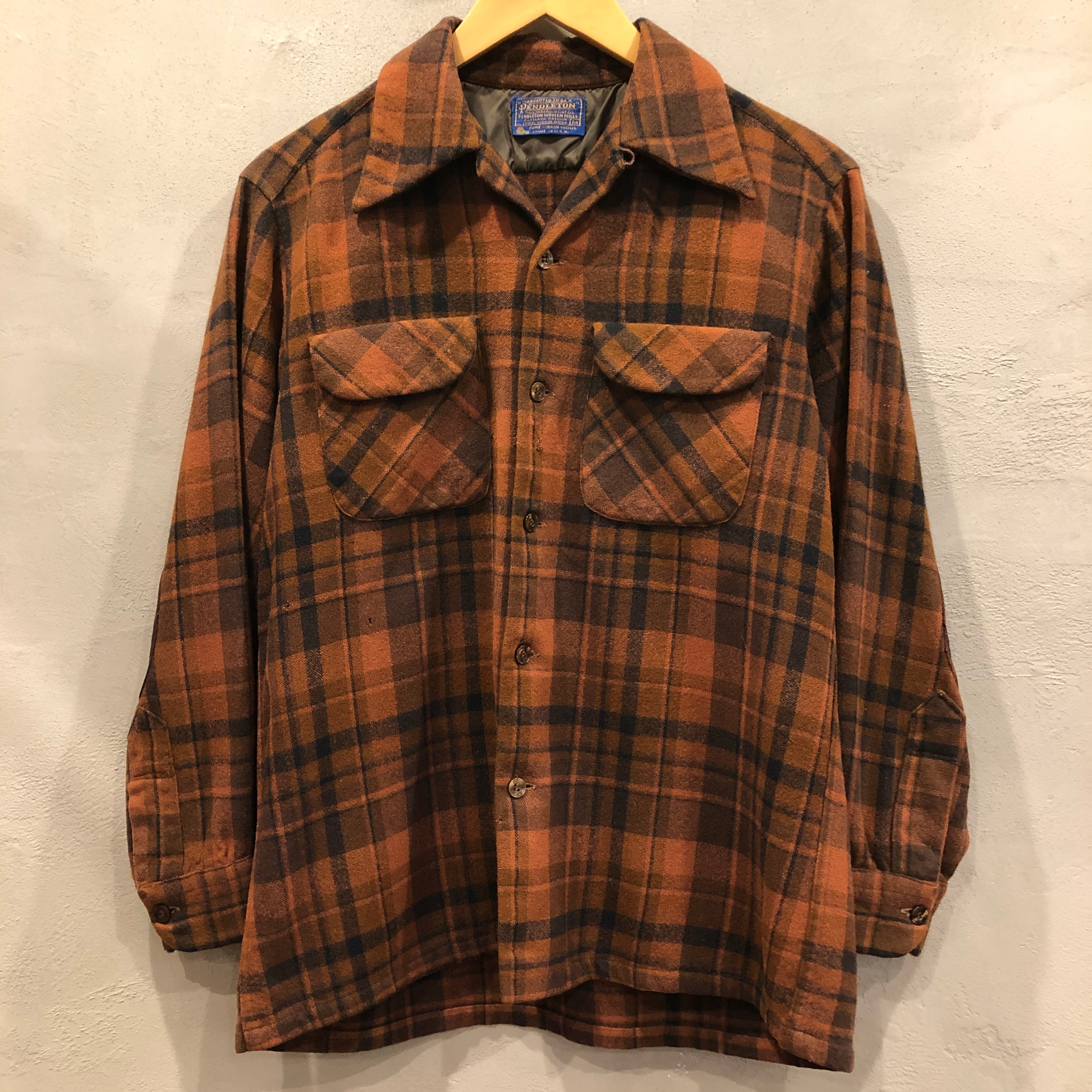 ⊕1970'S PENDLETON BROWN×BLACK WOOL CHECK SHIRT