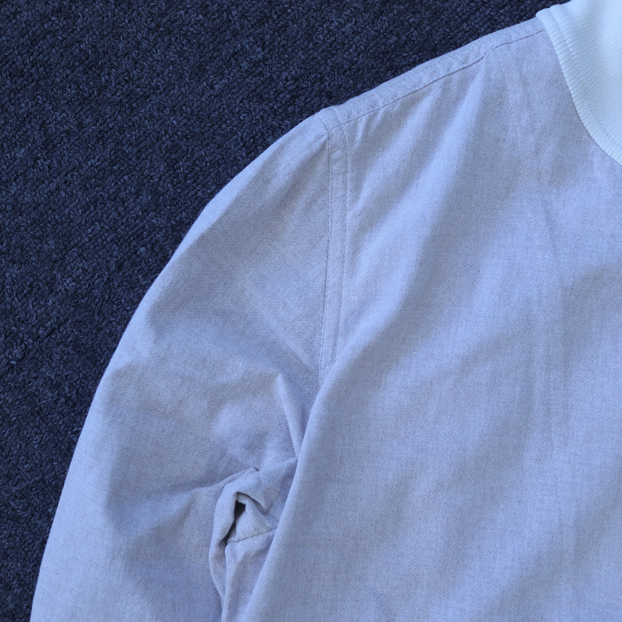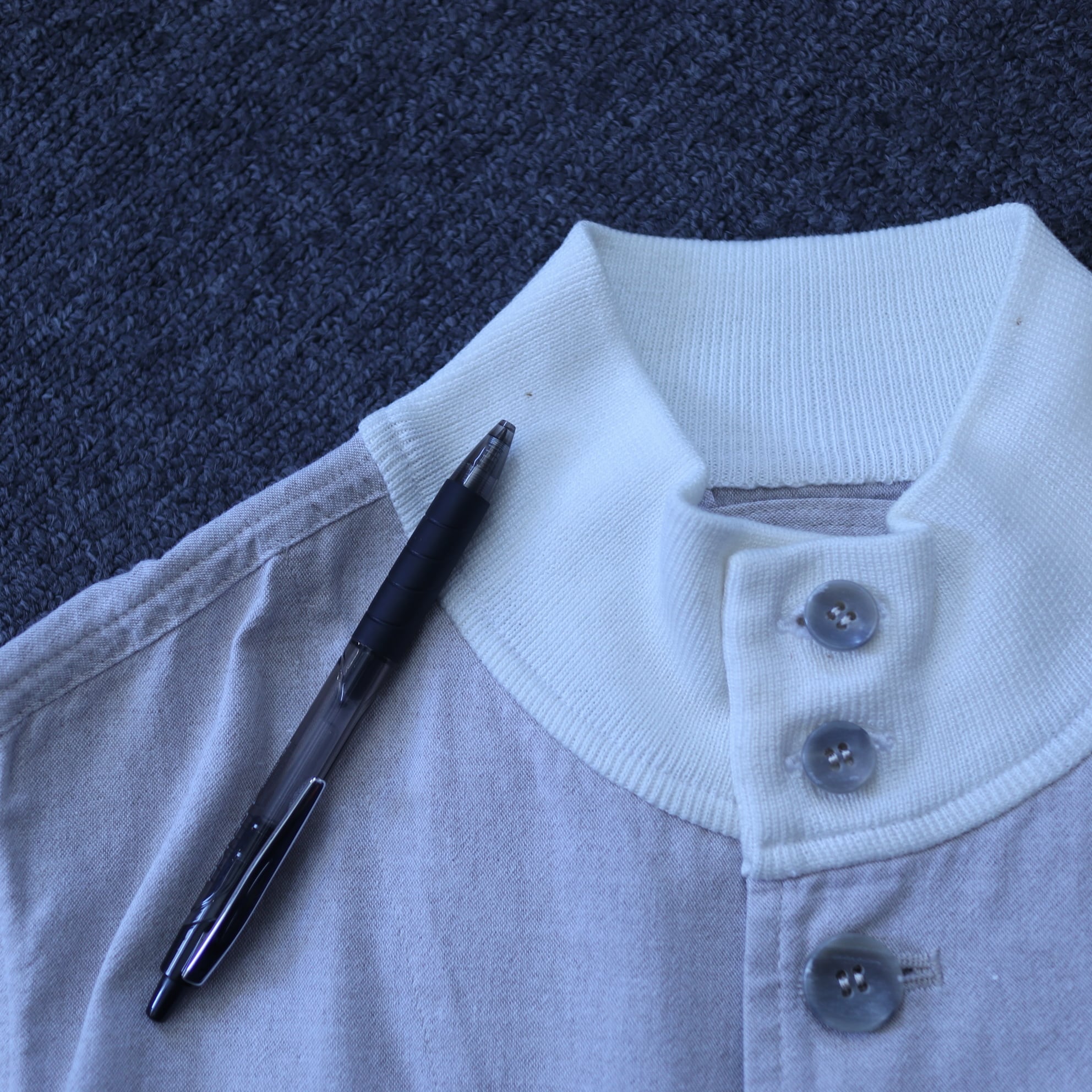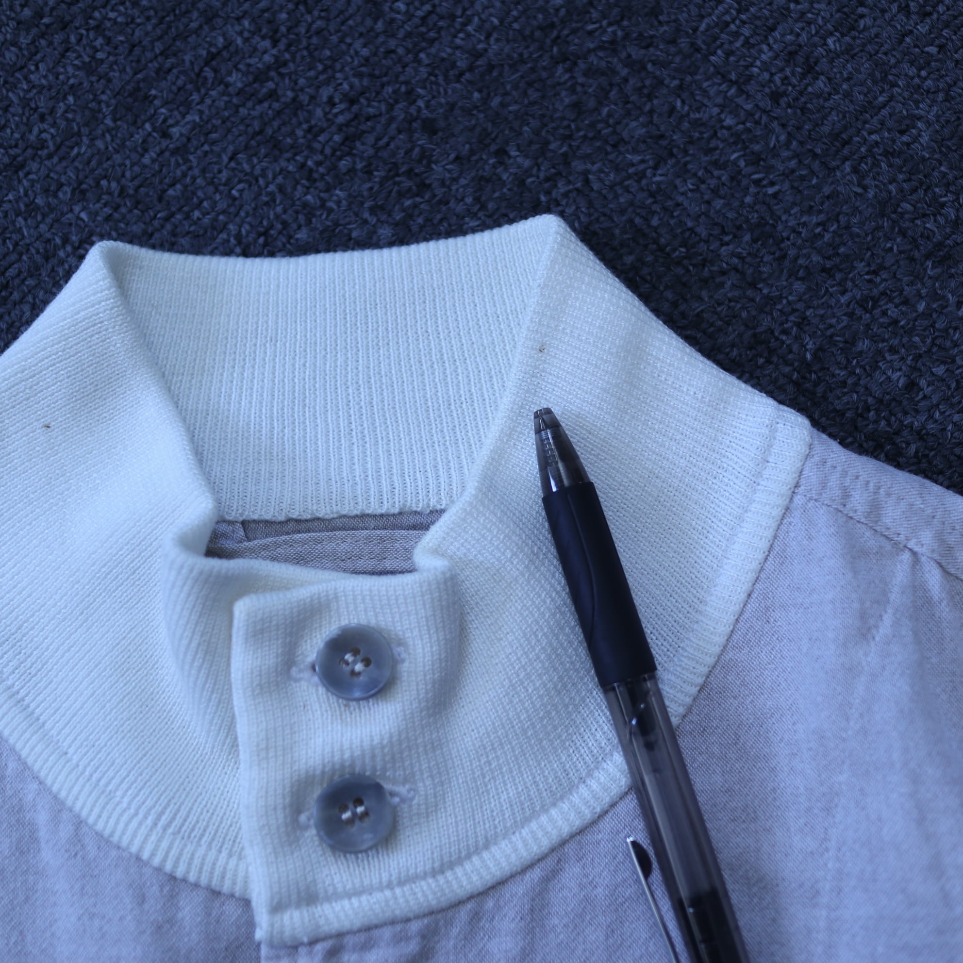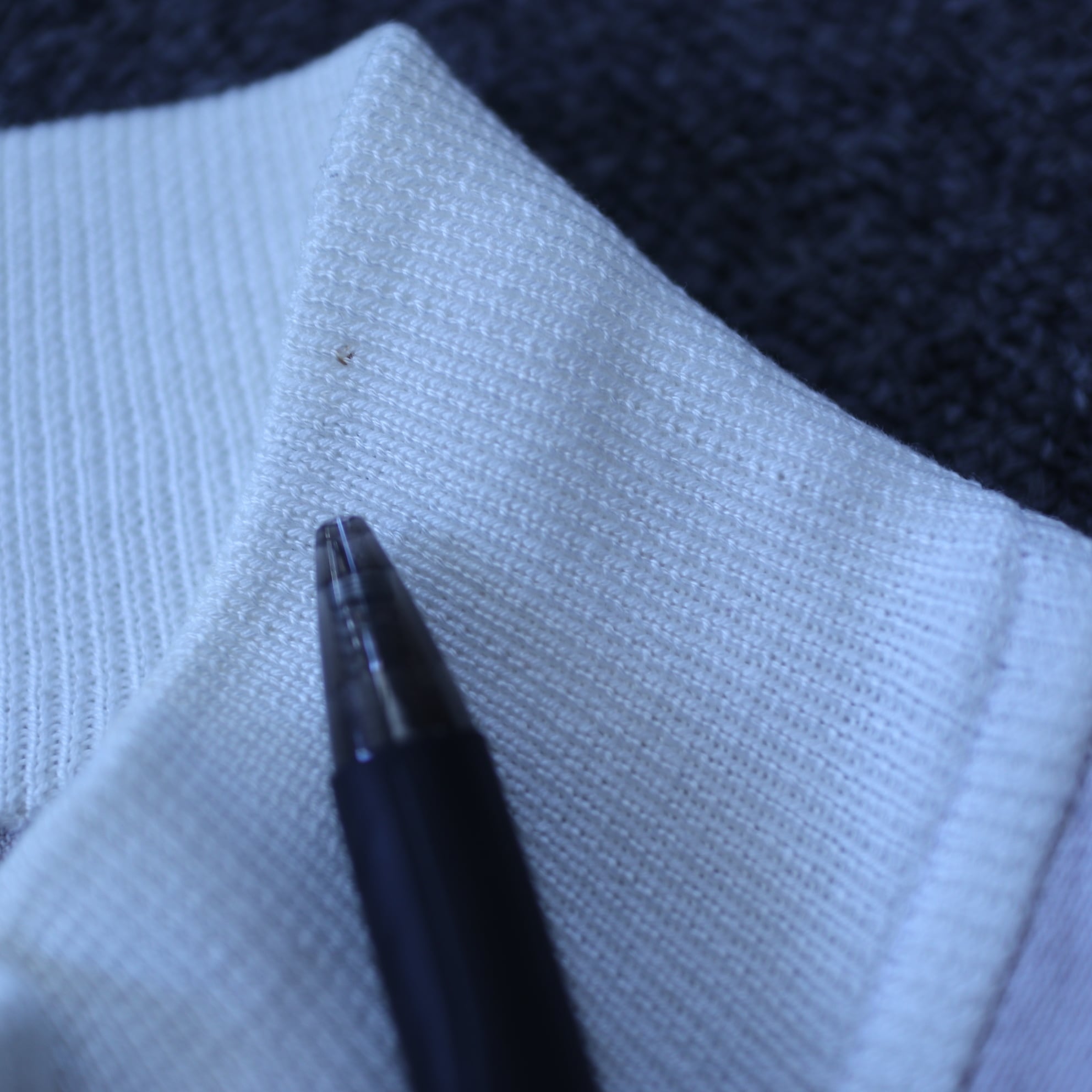 襟に小さな汚れがあります。