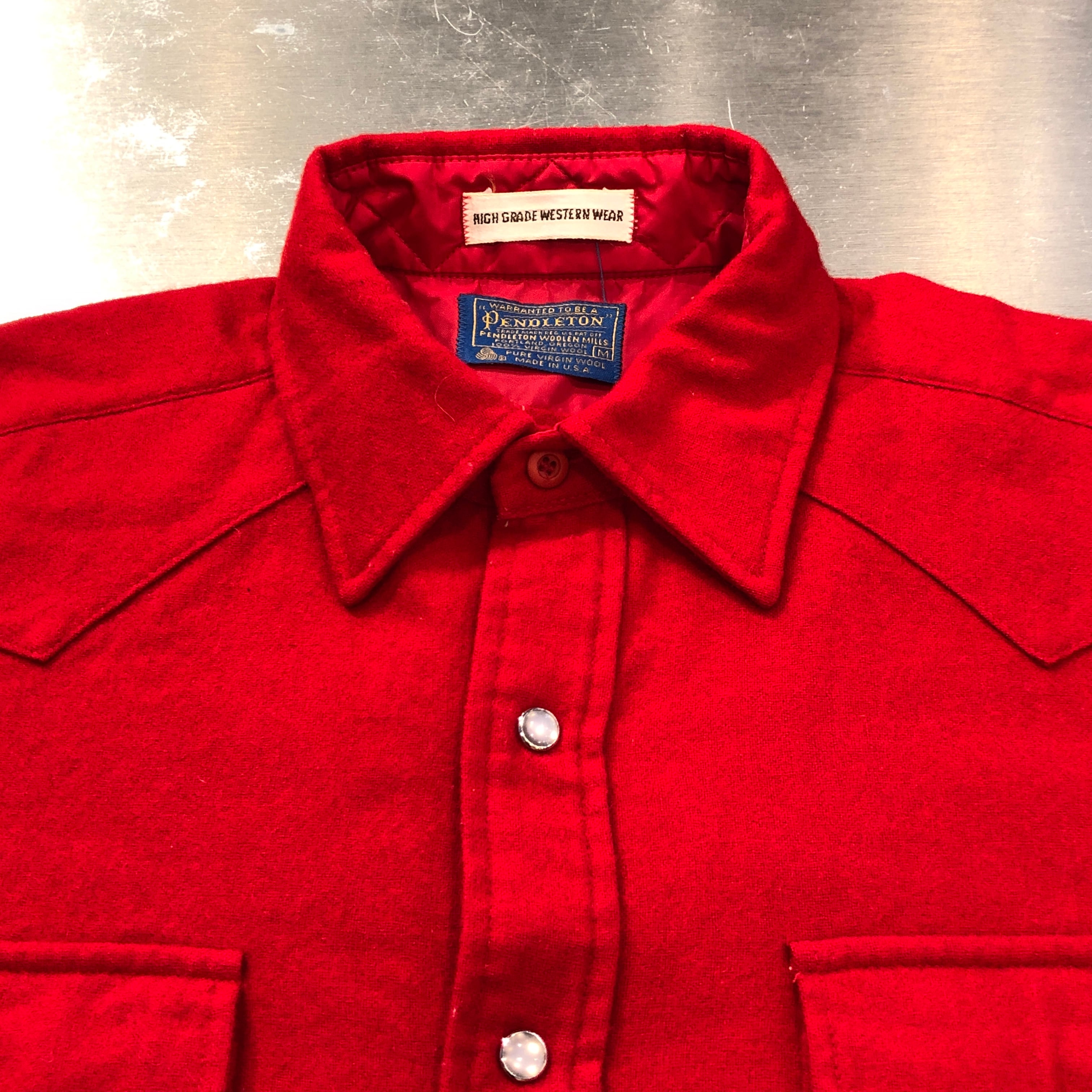 ⊕1970s PENDLETON WOOL WESTERN SHIRT RED M